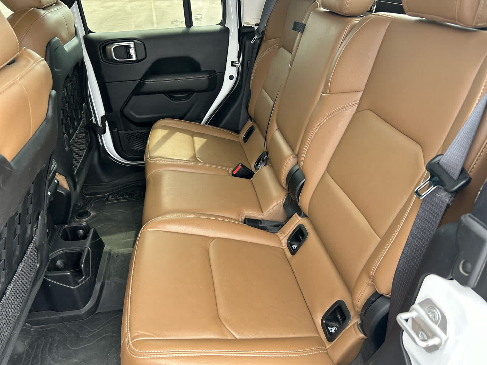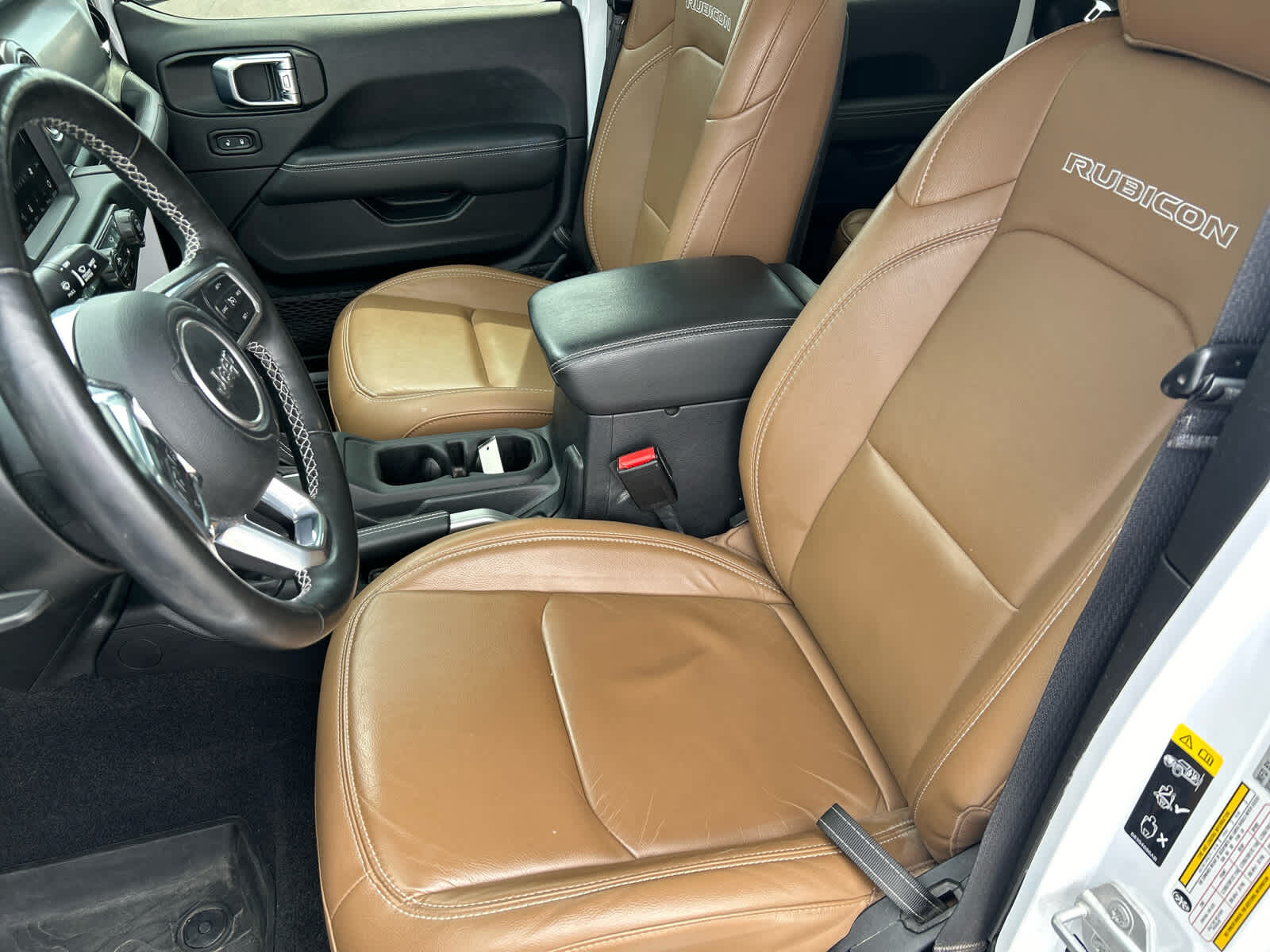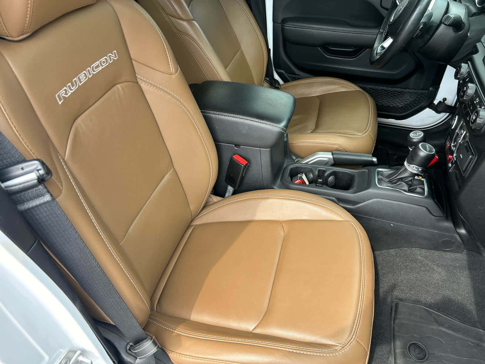 Child Safety Locks, Rollover Protection System, Electronic Stability Control, Brake Assist, 4-Wheel ABS, Tire Pressure Monitoring System, 4-Wheel Disc Brakes Jeep Rubicon with Bright White Clearcoat exterior and Dark Saddle/Black interior features a V6 Cylinder Engine with 285 HP at 6400 RPM*.