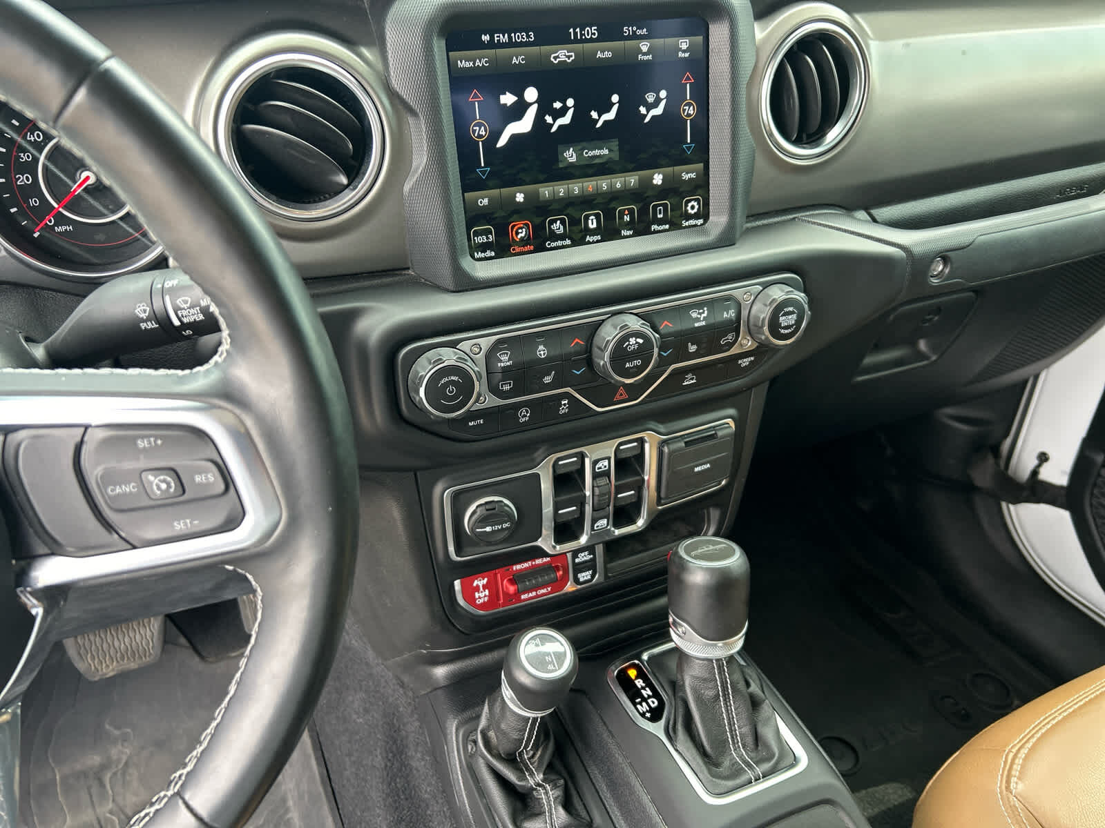 TRANSMISSION: 8-SPEED AUTOMATIC (850RE) Tip Start, Transmission Skid Plate, Selec-Speed Control, 8.4 RADIO & PREMIUM AUDIO GROUP SiriusXM Traffic Plus, Alpine Premium Audio System, HD Radio, Radio: Uconnect 4C Nav w/8.4 Display, Rear View Auto Dim Mirror, For Details, Visit DriveUconnect.com, 1-Year SiriusXM Guardian Trial, GPS Navigation, SiriusXM Travel Link, Emergency/Assistance Call, 8.4 Touchscreen Display, DARK SADDLE/BLACK, LEATHER TRIMMED BUCKET SEATS Full Length Floor Console Premium Armrest, Leather Wrapped Park Brake Handle, Leather Wrapped Shift Knob, Premium Door Trim Panel, Rear Armrest w/Cupholder Seat, BLACK 3-PIECE HARD TOP Freedom Panel Storage Bag, Rear Window Defroster, Rear Sliding Window, LED LIGHTING GROUP Daytime Running Lamps LED Accents, LED Park Turn Lamps, Front LED Fog Lamps, LED Premium Reflector Headlamps, LED Taillamps, COLD WEATHER GROUP Heated Steering Wheel, Heated Front Seats, REMOTE PROXIMITY KEYLESS ENTRY, MOPAR SOFT TRI-FOLD TONNEAU COVER, TRAILER TOW PACKAGE Trailer Hitch Zoom, Class IV Hitch Receiver, Heavy Duty Engine Cooling, 240 Amp Alternator, REMOTE START SYSTEM, ENGINE: 3.6L V6 24V VVT UPG I W/ESS (STD).