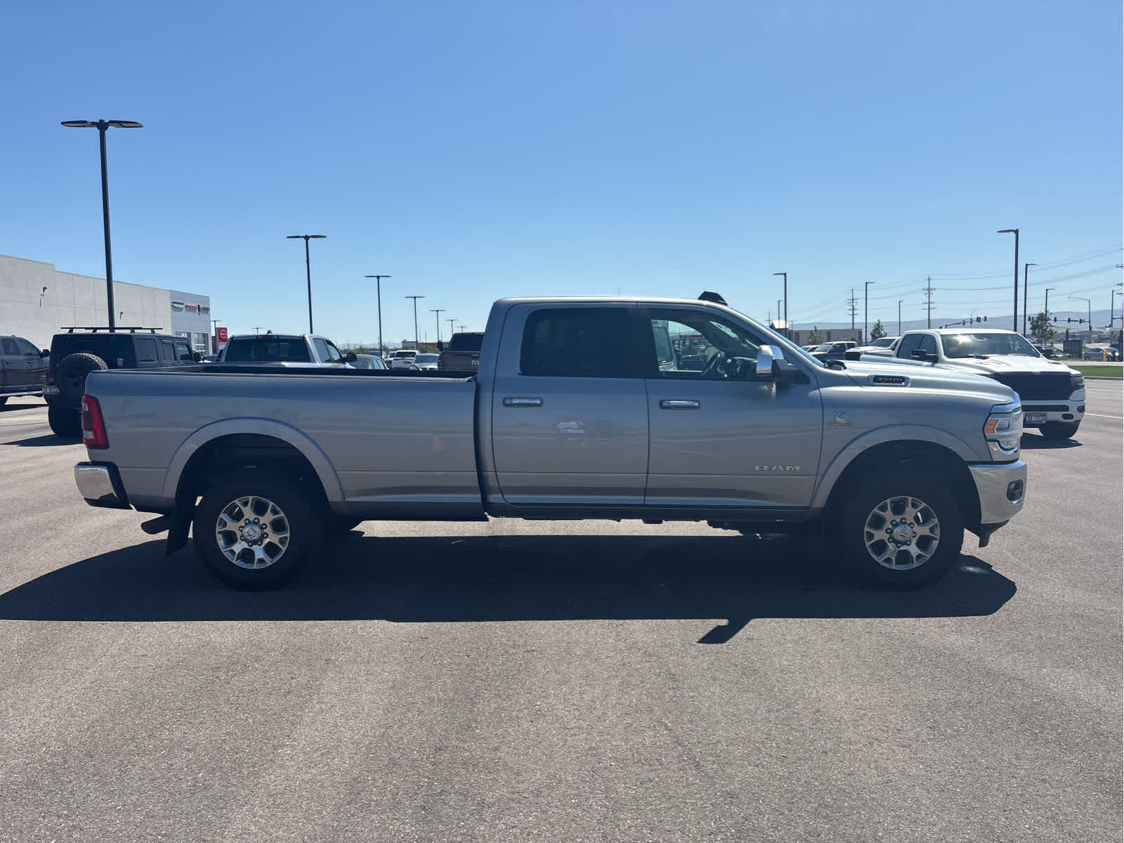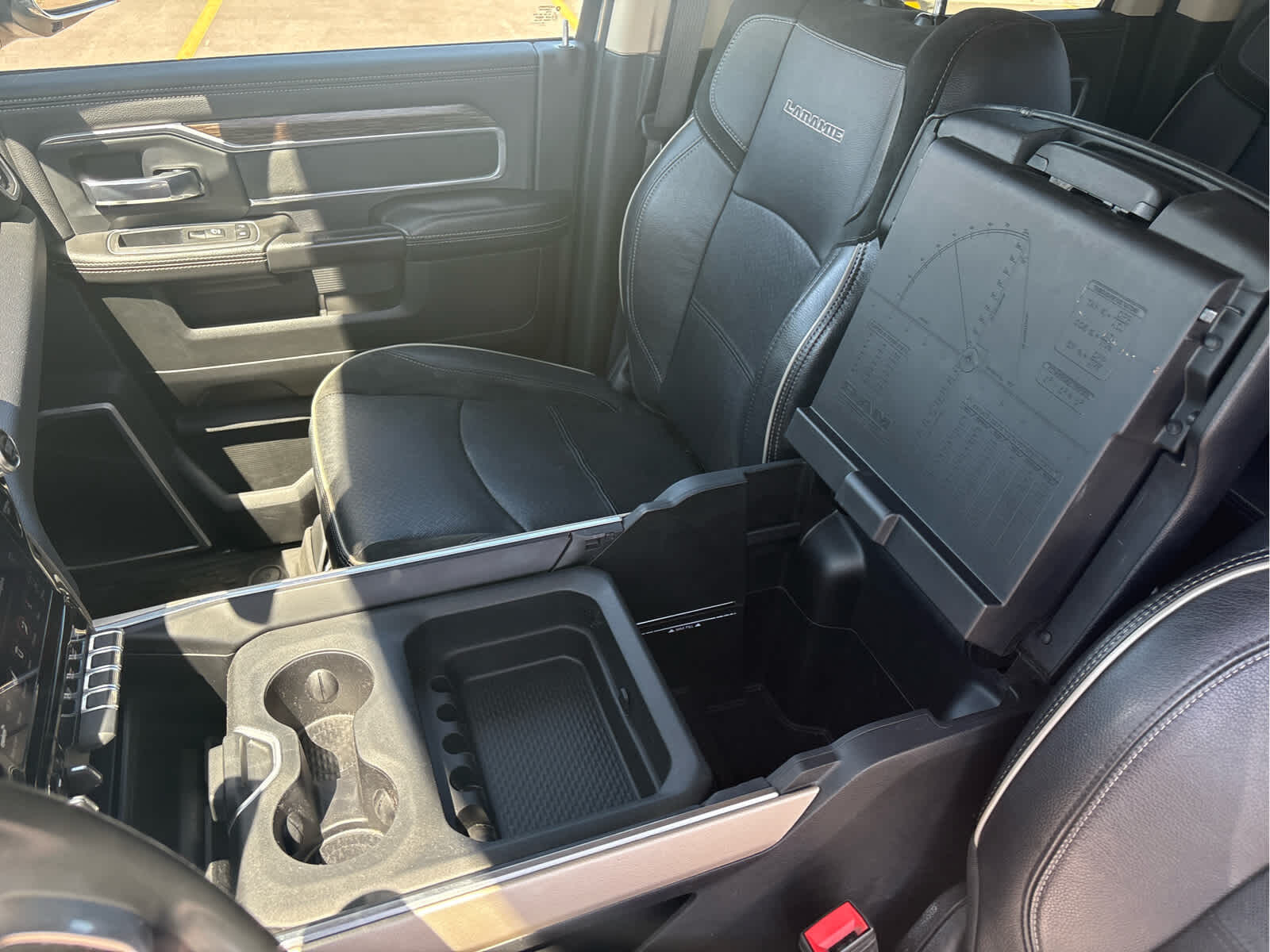 ENGINE: 6.7L I6 CUMMINS TURBO DIESEL Selective Catalytic Reduction (Urea), Dual 730 Amp Maintenance Free Batteries, Cummins Turbo Diesel Badge, Heavy Duty Engine Cooling, Supplemental Heater, 220 Amp Alternator, GVWR: 12,300 lbs, Current Generation Engine Controller, Diesel Exhaust Brake, Capless Fuel Fill w/o Discriminator, RADIO: UCONNECT 12.0 W/NAVIGATION 12 Touchscreen Display, SiriusXM w/360L, LARAMIE LEVEL 1 EQUIPMENT GROUP Remote Tailgate Release, Auto High Beam Headlamp Control, Blind Spot & Cross Path Detection, Power Chrome Tow Mirrors w/Convex Spotter & Memory, Mirror-Mounted Aux Reverse Lamps, Exterior Mirrors w/Memory, Power Adjustable Convex Aux Mirrors, Rain Sensitive Windshield Wipers, Power Adjustable Pedals w/Memory, Foam Bottle Insert (Door Trim Panel), 2nd Row In Floor Storage Bins, Radio/Driver Seat/Mirrors/Pedals Memory, Ventilated Front Seats, TOWING TECHNOLOGY GROUP CTR Stop Lamp w/Cargo View Camera, Mirror-Mounted Aux Reverse Lamps, Surround View Camera System, Exterior Mirrors w/Memory, Power Chrome Tow Mirrors w/Convex Spotter & Memory, Trailer Reverse Guidance, Power Adjustable Convex Aux Mirrors, SPRAY IN BEDLINER, BLACK, LEATHER TRIMMED BUCKET SEATS Bucket Seats, Power 2-Way Passenger Lumbar Adjust, Power 2-Way Driver Lumbar Adjust, Full Length Upgraded Floor Console, TRANSMISSION: 6-SPEED AUTOMATIC 68RFE Chrome Accent Shift Control.