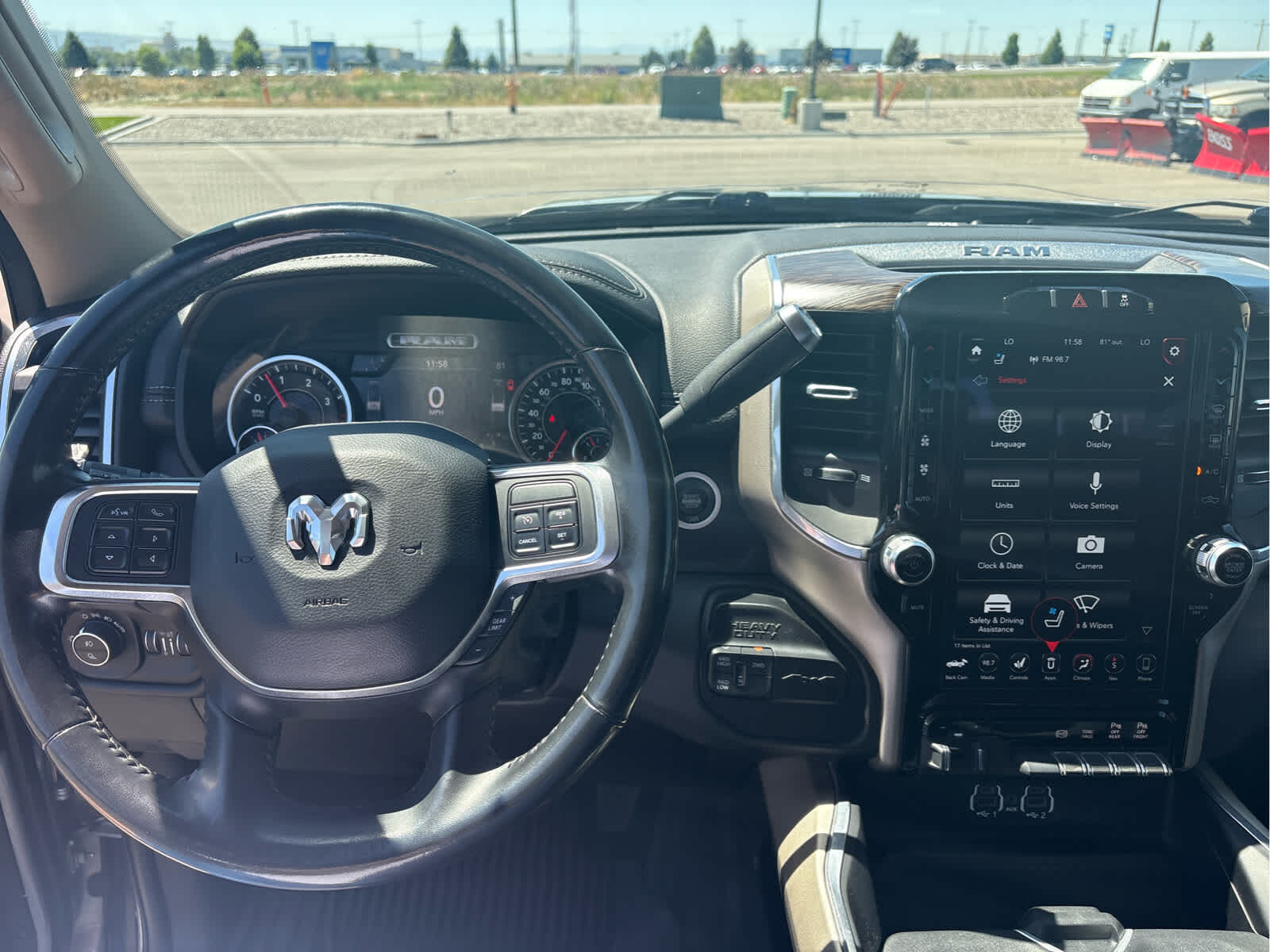 Child Safety Locks, Electronic Stability Control, Adjustable Pedals, Brake Assist, 4-Wheel ABS, 4-Wheel Disc Brakes, Tire Pressure Monitoring System Ram Laramie with Billet Silver Metallic Clearcoat exterior and Black interior features a Straight 6 Cylinder Engine with 370 HP at 2800 RPM*.