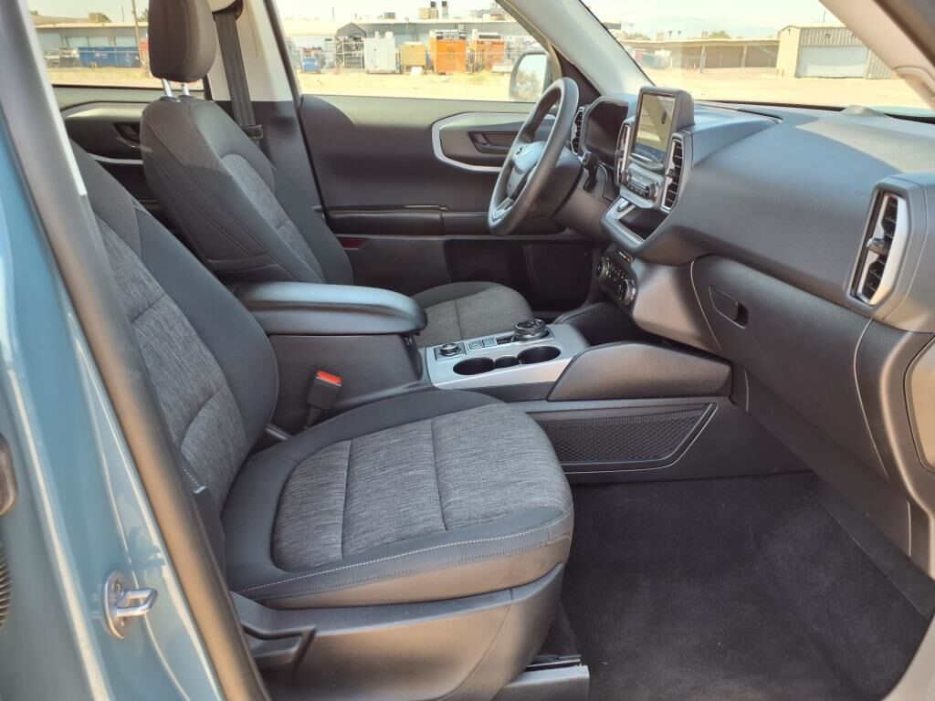 Discover the perfect blend of rugged capability and modern comfort with the 2023 Ford Bronco Sport Big Bend, available at AutoSavvy Las Vegas. This certified pre-owned SUV, with 40,632 miles, is engineered for adventure and everyday practicality. Powered by a robust EcoBoost 1.5L I-3 engine that delivers 181 horsepower, paired with an 8-speed automatic transmission, the Bronco Sport ensures a thrilling drive. Its four-wheel-drive system and Terrain Management System with G.O.A.T. Modes offer exceptional handling on any terrain. The eye-catching Light Blue exterior complements the Ebony interior, featuring premium cloth upholstery for a refined yet durable cabin experience. Stay connected with advanced technology like Apple CarPlay, Android Auto, and a SYNC 3 infotainment system, all accessible via an 8-inch touchscreen. Safety is paramount with features such as a blind spot monitor, lane departure warning, and automatic emergency braking, providing peace of mind on every journey. The current status of the title is branded. At AutoSavvy Las Vegas, we prioritize transparency and quality assurance, ensuring each vehicle undergoes rigorous safety and performance evaluations. This 2023 Ford Bronco Sport Big Bend is part of our certified pre-owned program, offering you confidence and peace of mind in your purchase. Visit AutoSavvy Las Vegas today to explore this exceptional SUV, where innovative technology meets robust performance, promising a versatile and enjoyable driving experience tailored to your lifestyle. Whether you're navigating city streets or venturing off the beaten path, the Bronco Sport is ready to elevate your adventures.