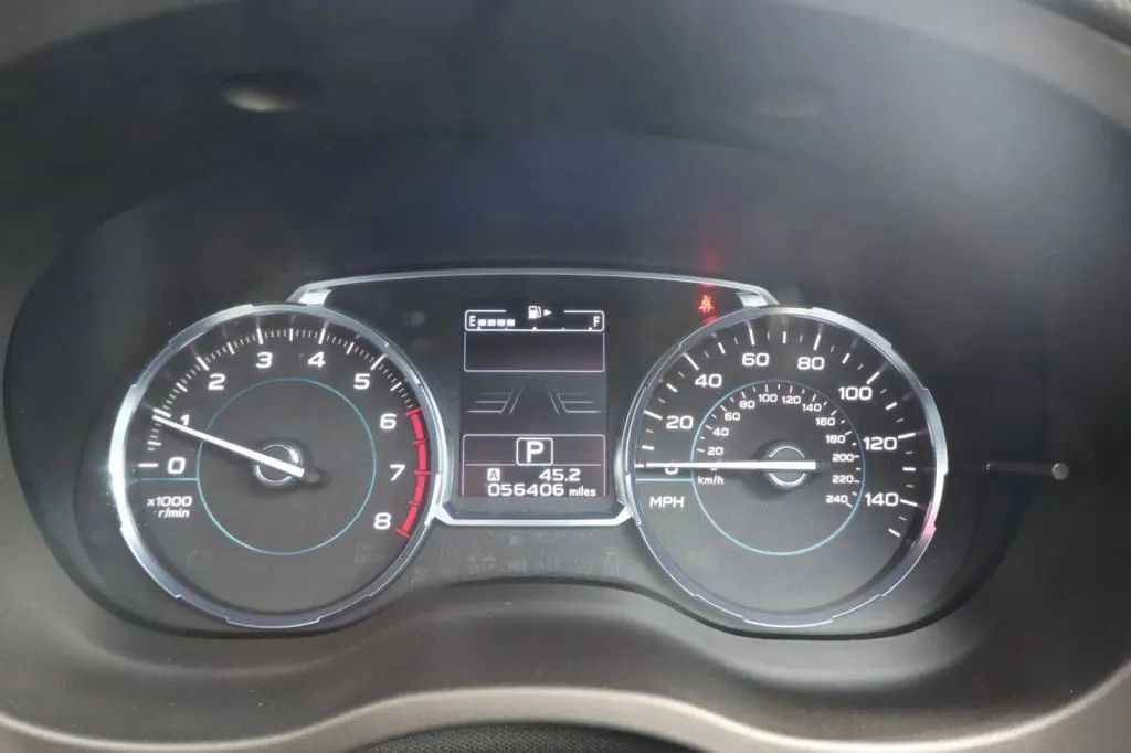 Additional features include Power Door Locks and Windows, a Power Driver Seat, a Power Sunroof, Heated Front Seats, Heated Steering Wheel, Leather Seats, EyeSight Driver Assist Technology, advanced adaptive Cruise Control, Lane Departure and Sway Warning, Pre-Collision Braking, Pre-Collision Throttle Management, a Backup Camera, Navigation, a CD player, a USB/AUX Connection, and SiriusXM Satellite Radio.