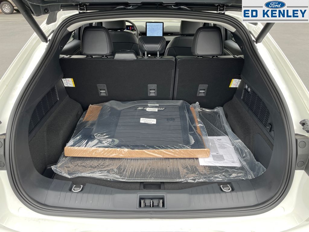 Interior Protection Package: Cargo Floor Liner; Cargo Area Cover; 1st and 2nd Row Floor Liners Without Carpet Mats,Equipment Group 300A Standard Package: Single Speed Transmission; Dual Motor (front/rear) (eAWD); 225/55R19 XL 103H A/S Tires; Heated and Ventilated Perforated ActiveX Bucket Seats; B&O Sound System by Bang and Olufsen; 19" Bright Machined-Face Aluminum Wheels,Panoramic Fixed-Glass Roof,Star White Metallic TC,Apple CarPlay/Android Auto smart device wireless mirroring,Pre-Collision Assist with Pedestrian Detection,Predictive Speed Assist Automatic curve slowdown cruise control,Unresponsive driver assist,FordPass Connect mobile hotspot internet access,Rear mounted camera,Lane Keeping Alert,Reverse Brake Assist collision mitigation,Adaptive Cruise Control,Brake assist system,Cruise control with steering wheel mounted controls,Power liftgate rear cargo door,Ventilated driver and front passenger seats,Connected Navigation integrated navigation system with voice activation,Heated steering wheel,Heated driver and front passenger seats,ActiveX leatherette front seat upholstery,Primary monitor touchscreen,First and second-row fixed glass sunroof,Driver seat power reclining, lumbar support, cushion tilt, fore/aft control and height adjustable control,Automatic full-time AWD,Front wireless smart device charging,SYNC 4A with Enhanced Voice Recognition (Alexa-Built-In) built-in virtual assistant,PCA with AEB and Intersection Assist forward collision mitigation with left turn assist,Evasive Steering Assist evasion assist system,SecuriCode external keypad door lock control,Smart key with hands-free access and push button start,Keyfob window control,360 Degree Camera aerial view camera,Front windshield solar coating,SAE CCS DC fast charge connector,Automatic brake hold,Plug and charge,Bluetooth wireless audio streaming,Power rear child safety door locks,Remote-activated interior climate preconditioning,Phone As A Key smart device-as-key proximity door locks,Gauge cluster display size: 10.20,Front mounted camera,Right side camera,Left side camera,BLIS (Blind Spot Information System),Traffic sign recognition with automatic speed limit assist,Dual-zone front climate control,SYNC 4A with Enhanced Voice Recognition (Alexa-Built-In) voice-activated climate control,Vapor Injection Heat Pump heat pump,Full gauge cluster screen,Auto high-beam headlights,150.000 kW,32.300 minutes
