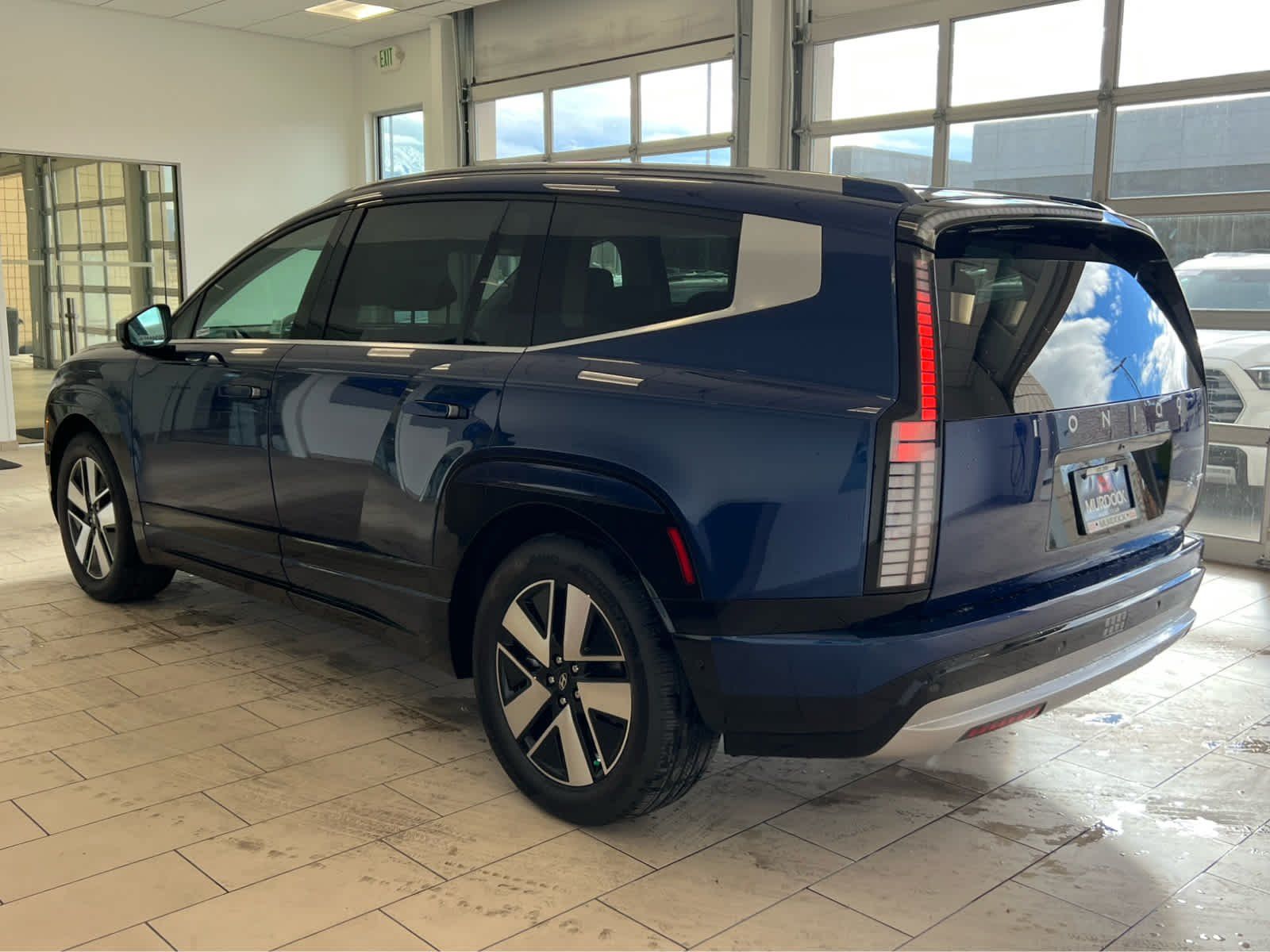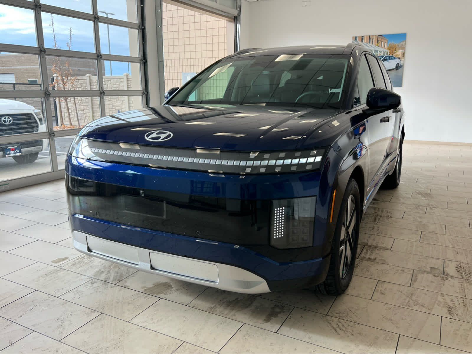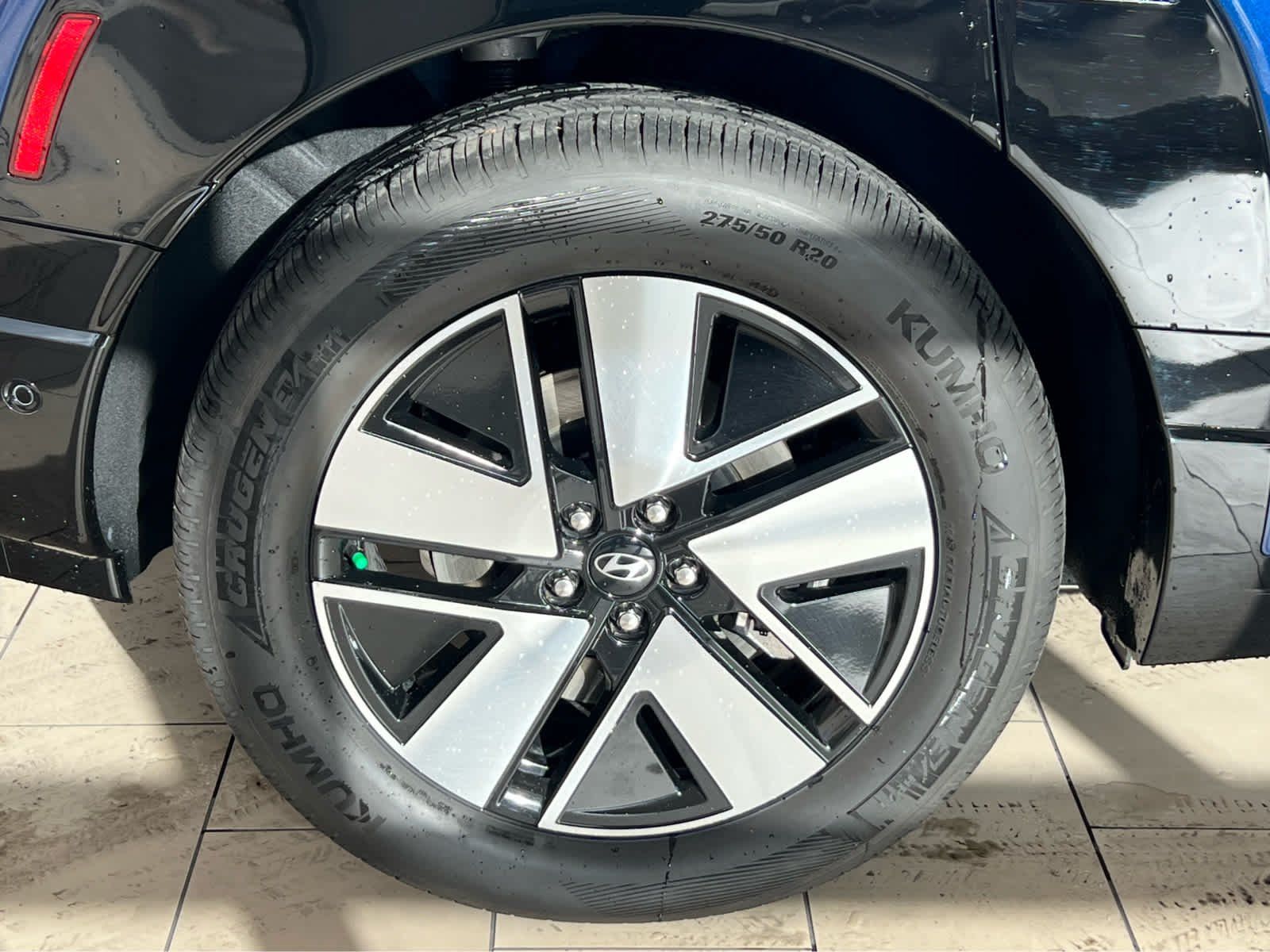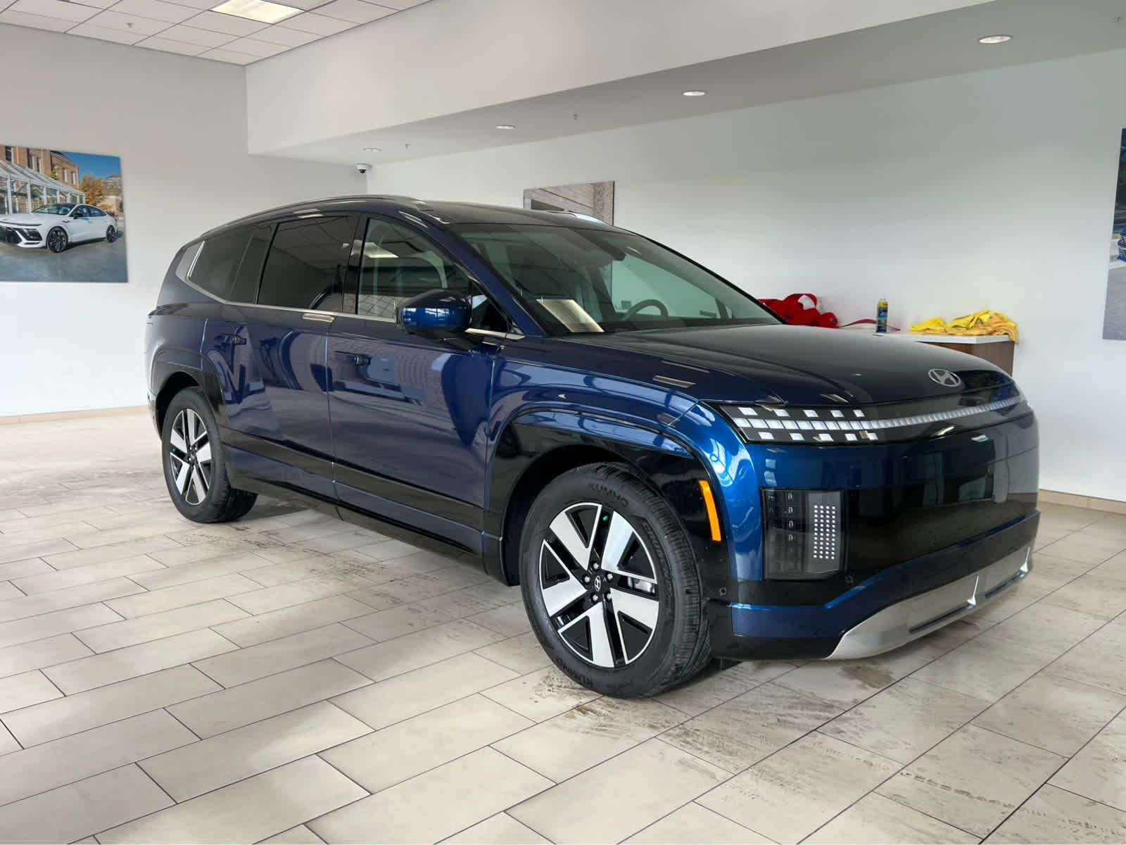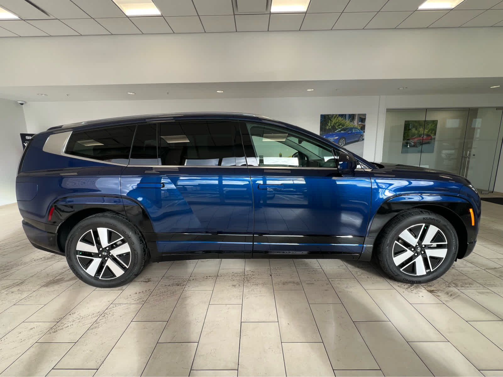 Third Row Seat, Navigation, All Wheel Drive, Power Liftgate, Rear Air, Heated Driver Seat, Heated Rear Seat, Cooled Driver Seat Rear Spoiler, MP3 Player, Privacy Glass, Remote Trunk Release. Hyundai SEL with Cosmic Blue exterior and Gray interior features a Electric Motor.