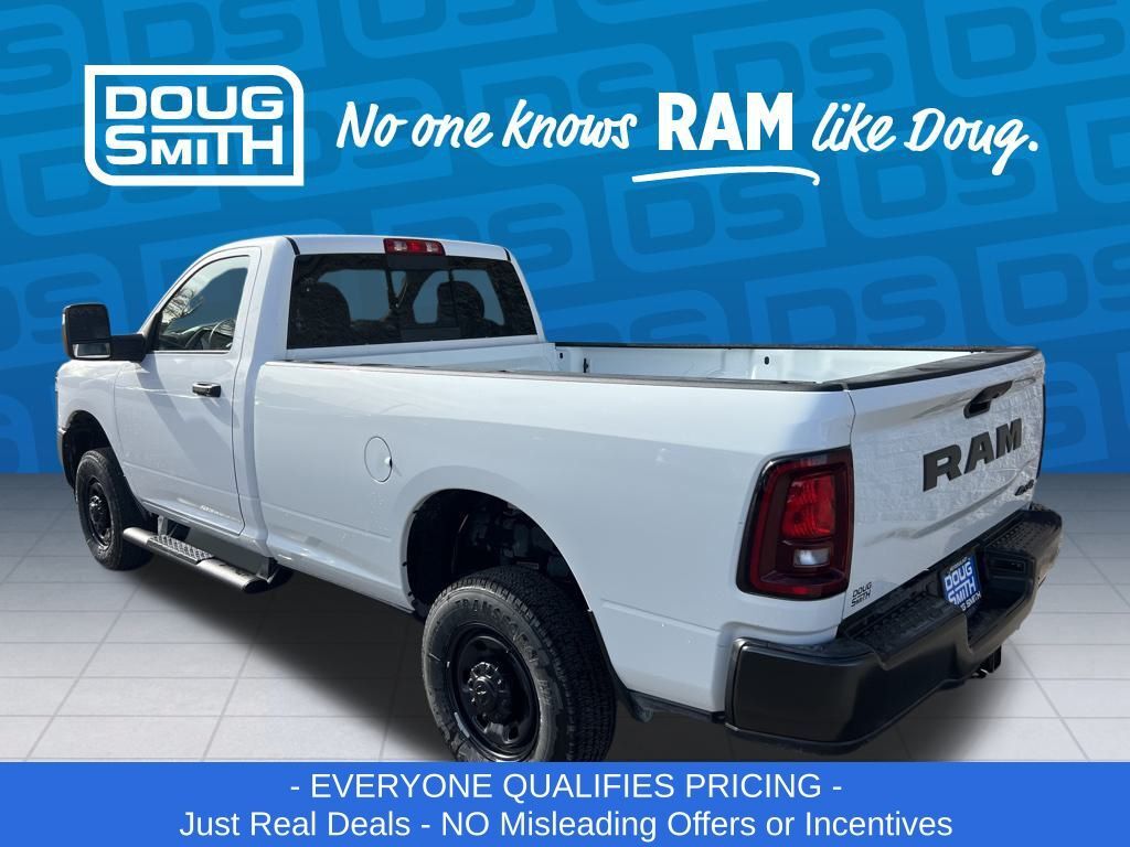 Bright White Clearcoat 2025 Ram 2500 Tradesman 4WD 8-Speed Automatic 6.4L V8 Price includes: $2000 - 2025 National Bonus Cash . Exp. 03/02/2026 - Advertised Price reflects a $1,500 Financing Discount. To qualify for this discount, customer must secure credit approval and finance with a dealership lender. Cash purchases or outside financing will void the discount, increasing the final price by $1,500. Exp. 02/28/2026 - See Doug Smith CDJR for full details. - Sale Price Includes: $1,500 Trade-In Allowance Incentive Program for customers that trade in a 2015 or newer passenger vehicle with 100,000 miles or less. - Offer Exp. 02/28/2026 - See Doug Smith CDJR for full details.