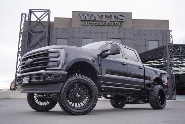 This 2025 Ford SUPER DUTY F-350 4dr PLATINUM features a 6.7L HO POWERSTROKE 8cyl Diesel engine. It is equipped with a 10 Speed Automatic transmission. The vehicle is Black with a BLACK Full Leather interior. It is offered with the remaining factory warranty. - WATTS CUSTOM PACKAGE INCLUDED ON THIS BUILD 37X13/50R24 TOYO M/T'S 24 KG1 FORGED JAVELIN LEGEND SERIES $8892 6 ELEVATE LIFT FOX SHOCKS DUAL STABLIZER $10,000 FULL PAINT MATCH PAINTED HEADLIGHTS TINTED TAILLIGHTS RECON MIRROR LIGHTS TINT BEDLINER BANKS EXHAUST $6900 - Cruise Control, Power Steering, Power Mirrors, Power Passenger Seat, Clock, Tachometer, Telescoping Steering Wheel, Steering Wheel Radio Controls, Driver Airbag, Passenger Airbag, Side Airbags, Security System, Intermittent Wipers, AM/FM, Anti-Theft, Premium Sound System, 24 inch Full Leather Interior Surface, Four Wheel Drive, Aux. Audio Input, Child Proof Door Locks, Daytime Running Lights, Heated Mirrors, Reverse Camera, Roll Stability Control, Side Curtain Airbags, Tire Pressure Monitor, Tow Hooks, Vanity Mirrors - Contact Watts Automotive at 801-763-0900 or 7952189@ebizdealers.com for more information. -