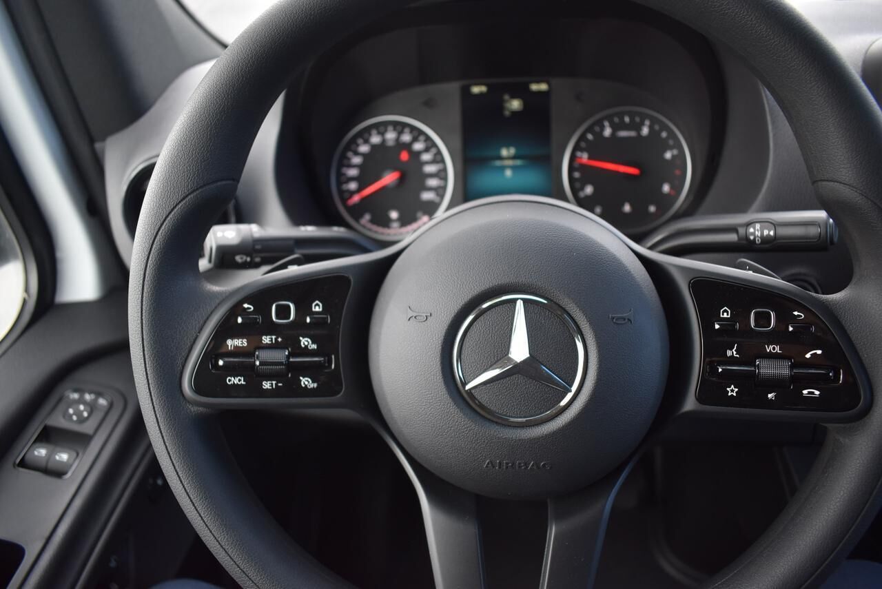 Acoustic Package,Driver Convenience Package,Parking Package w/360 Degree Camera,Premium Package,High Roof,5 Speakers,AM/FM radio,Radio: MBUX Multimedia System w/7 Touchscreen,Radio: Standard,Air Conditioning,Driver Seat Base 12V Power Outlet,Power steering,Power windows,Remote keyless entry,Steering wheel mounted audio controls,Traction control,2 Additional Master Keys,4-Wheel Disc Brakes,ABS brakes,Dual front impact airbags,Dual front side impact airbags,Emergency communication system,Front anti-roll bar,Front wheel independent suspension,Low tire pressure warning,Overhead airbag,Rear anti-roll bar,Active Lane Keeping Assist,Brake assist,Electronic Stability Control,Exterior Parking Camera Rear,Fully automatic headlights,Driver's Seat Occupancy Sensor,Speed control,Bodyside moldings,Electrically Folding Exterior Mirrors,Heated door mirrors,Power door mirrors,Assist Handle w/Partition,ATTENTION ASSIST®,Driver door bin,Hinged Lid for Left & Right Storage Compartments,Illuminated entry,Instrument Cluster w/Color Display,Outside temperature display,Overhead console,Passenger seat mounted armrest,Storage Compartment Hinged Lid,Tachometer,Tilt steering wheel,Wood Floor w/6 D-Rings,Armrest For Driver's Seat,Armrest For Front Passenger's Seat,Driver's Seat Mounted Armrest,Front Bucket Seats,Heated Driver's Seat,Heated front seats,Maturin Fabric Upholstery,Standard Driver Seat,Standard Front Passenger Seat,Diesel Misfueling Prevention,Passenger door bin,5000 lbs Trailer Hitch,Trailer Hitch Rear Half-Sided Step,6.5J x 16 Steel Wheels,Wet Wiper System,Rain Sensor