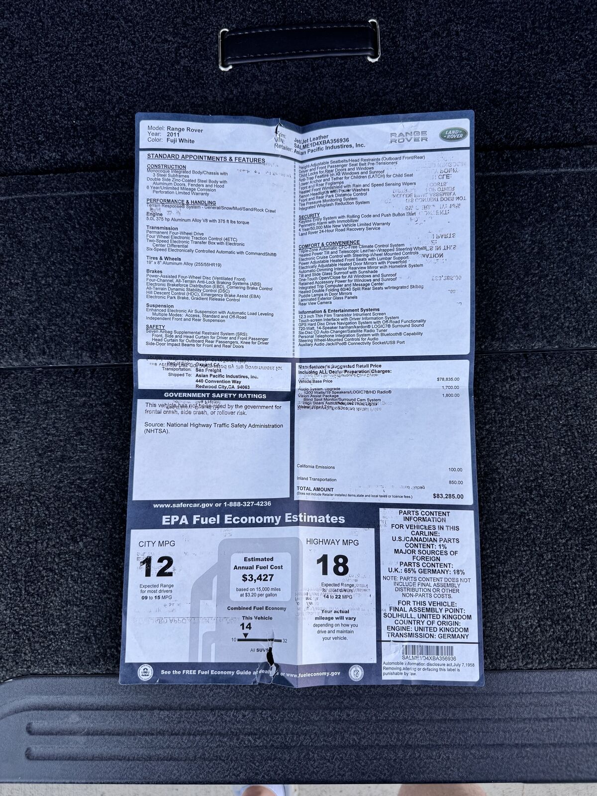 Make/Model: Land Rover Range Rover HSE