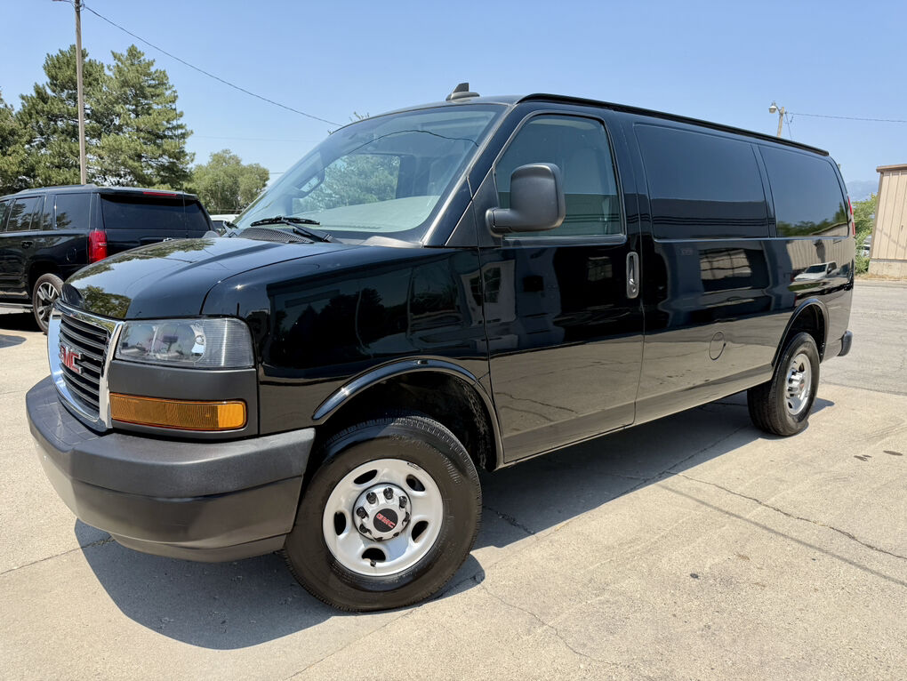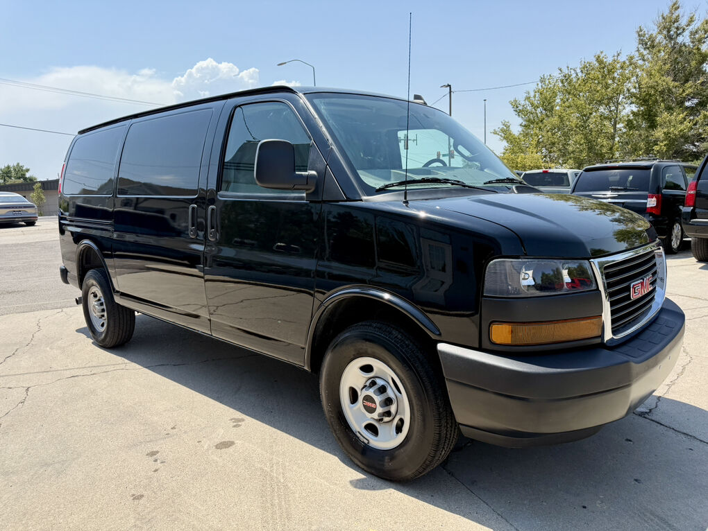 TAX Deduction sale! 23 GMC Savana 2500 Cargo van, Rebuilt title, Front end damage, 18k miles, power windows, mirrors and locks, Back up camera, cab divider, Black color rare to find, RWD