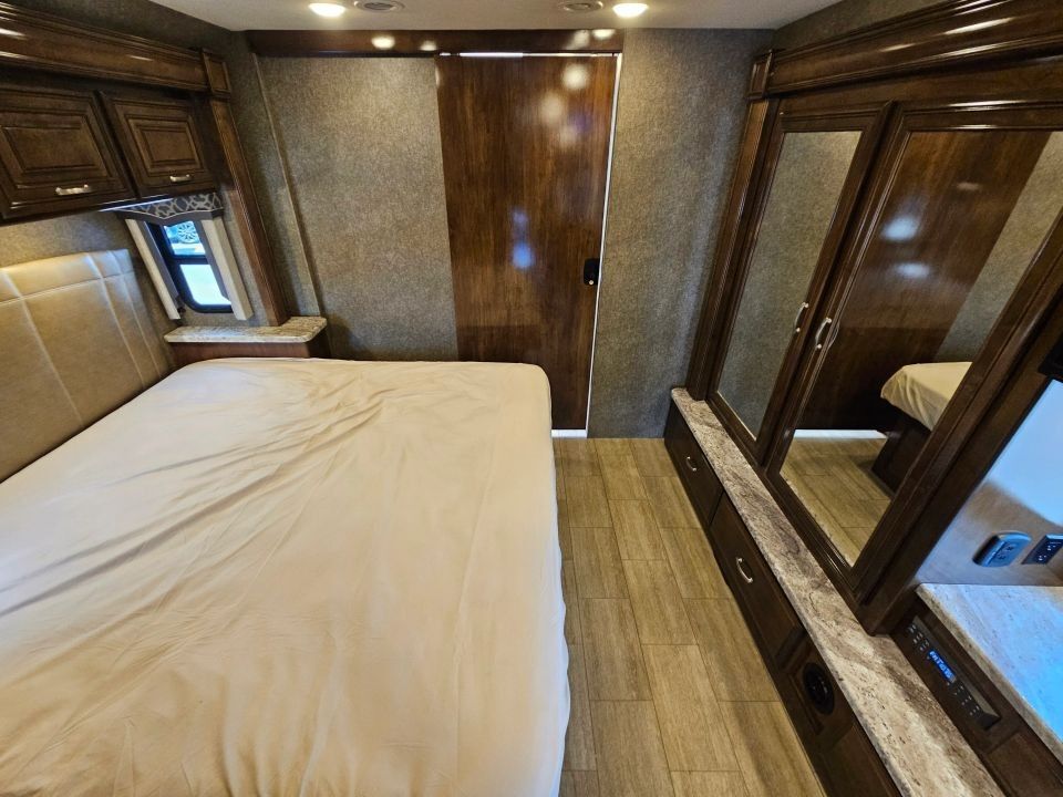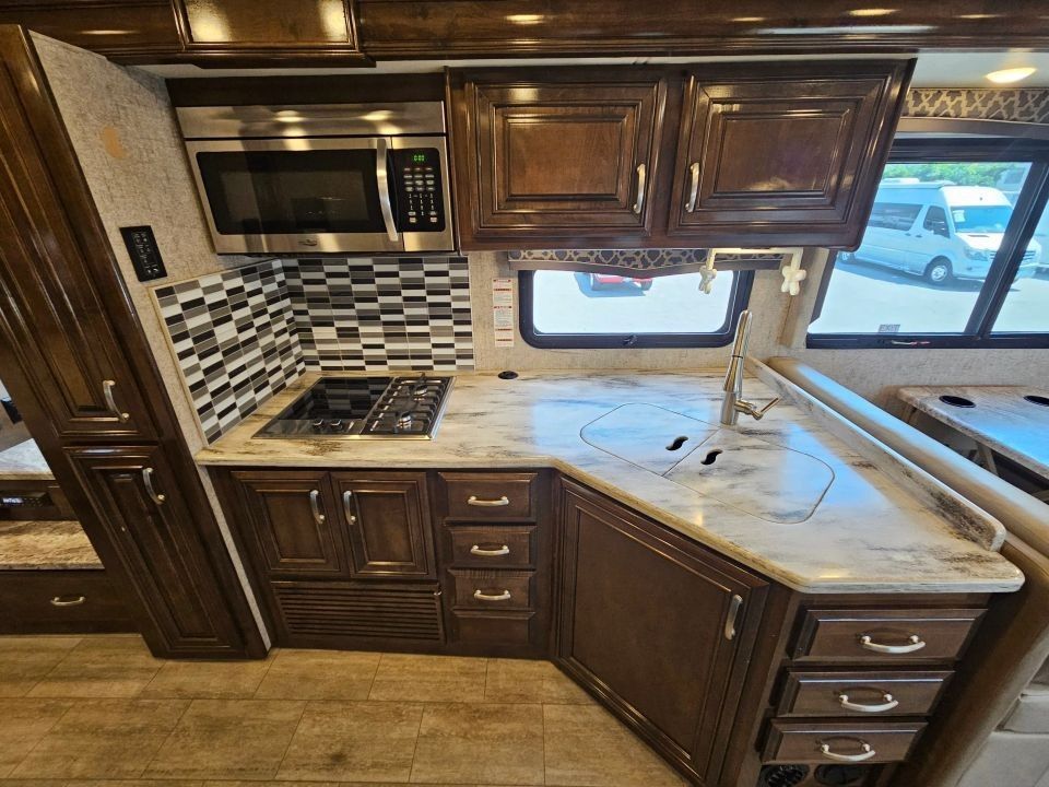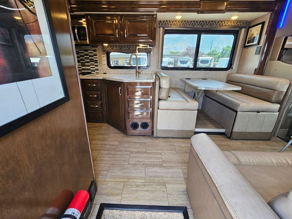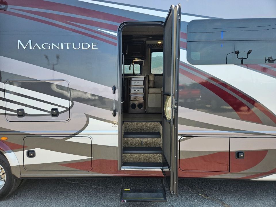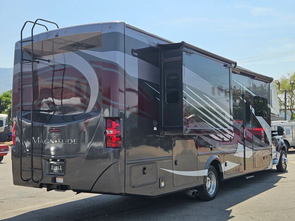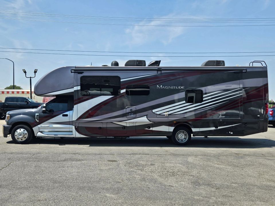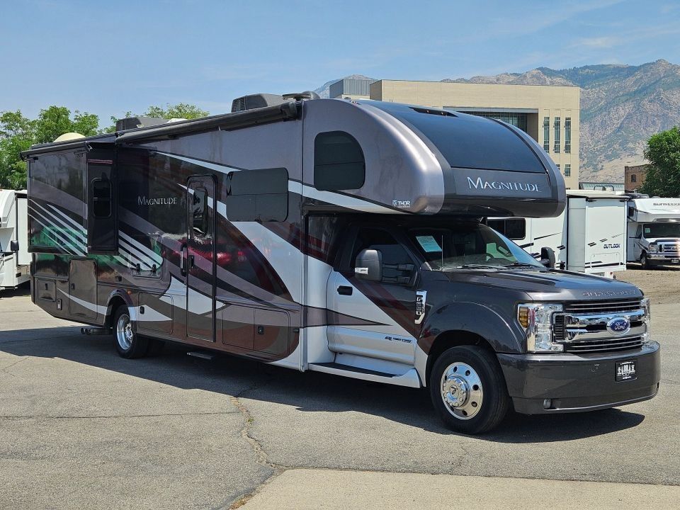 The 2019 Thor Magnitude BH35 is a luxurious and rugged 4x2 Super C motorhome built on the robust Ford F-550 chassis, powered by a 6.7L Power Stroke V8 Turbo Diesel engine. Ideal for families or adventurous couples, it features a full-wall slide-out that maximizes interior space, a private king bedroom suite, bunk beds, and a cab-over bunk for added sleeping capacity. With residential amenities like a full kitchen, dual-entry bath, and ample storage inside and out, this coach delivers true comfort on or off the beaten path.