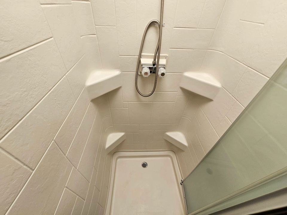 Bathroom: Dual-entry with glass shower door