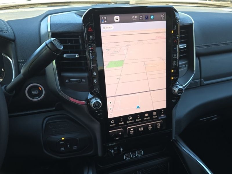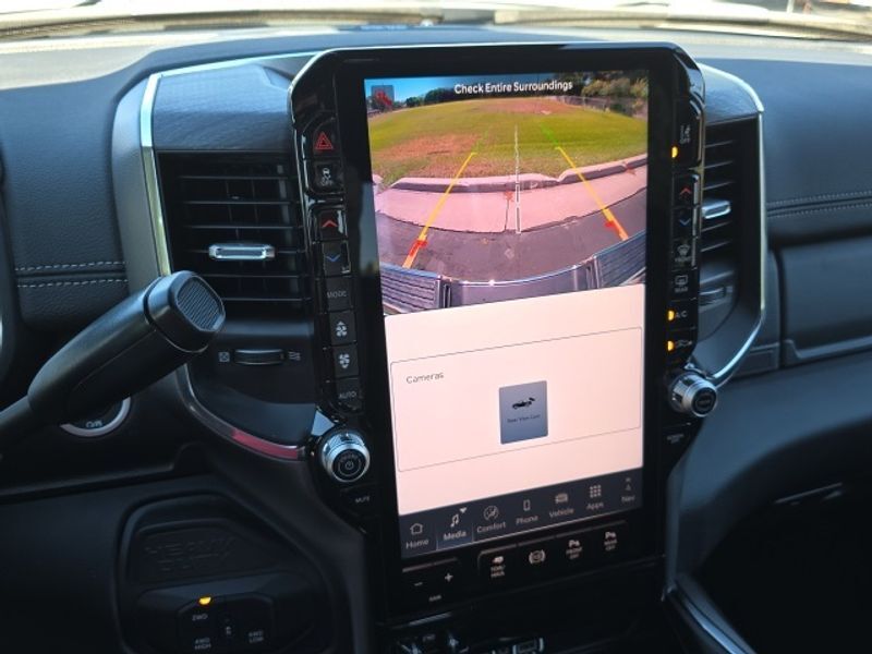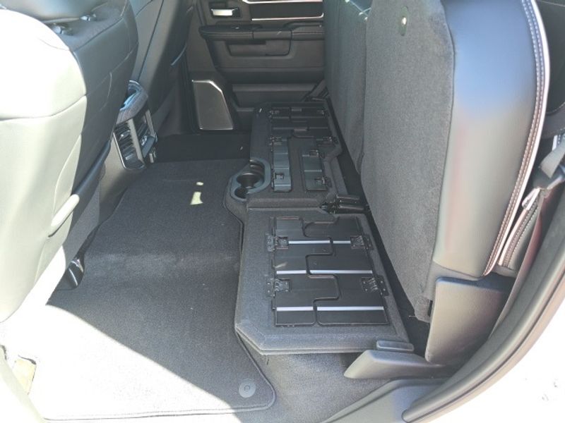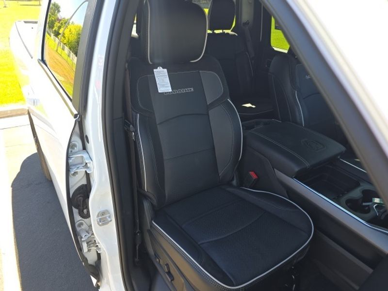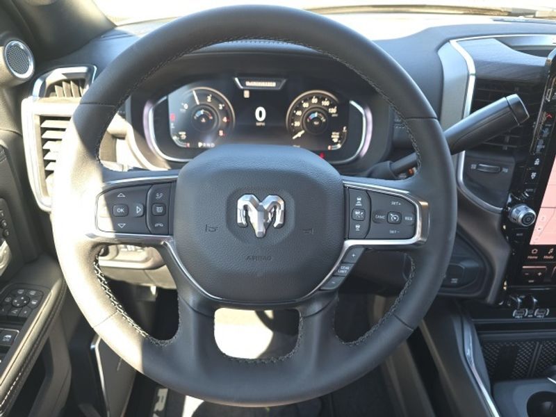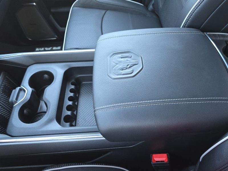 Laramie Level 2 Equipment Group: Google Android Auto; SiriusXM Radio Service; Rain Sensitive Windshield Wipers; Power Adjustable Pedals with Memory; Integrated Voice Command with Bluetooth; Connectivity - US/Canada; Emergency Vehicle Alert System (EVAS); Auto Power-Folding Mirrors; GPS Navigation; 4G LTE Wi-Fi Hot Spot; GPS Antenna Input; Exterior Mirrors with Heating Element; Auto Dim Exterior Mirror; SiriusXM with 360L; Anti-Spin Differential Rear Axle; Global Telematics Box Module; Connected Travel and Traffic Services; Mirror Running Lights; Foam Bottle Insert (door Trim Panel); Alexa Built-In; Apple CarPlay; Power Adjustable Convex Aux Mirrors; Off-Road Info Pages; Forward and Reverse Utility Lights; Selectable Tire Fill Alert; Trailer Tow Pages; Disassociated Touchscreen Display; Leather Trimmed Bucket Seats; HD Radio; 14.4" Touchscreen Display; Power Heated Fold Telescopic Mirrors with Memory; Exterior Mirrors with Supplemental Signals; Exterior Mirrors Courtesy Lamps; Uconnect 5 Nav with 14.4" Display; Remote Tailgate Release; 17 Speaker Harman/kardon Premium Sound; Auto High Beam Headlamp Control; Chrome Exterior Mirrors; Exterior Mirrors with Memory; Power Adjust Mirrors; 2nd Row in Floor Storage Bins; Power Telescoping Mirrors; Auto Dim Exterior Passenger Mirror; Auto Adjust in Reverse Exterior Mirrors. Quick Order Package 24H Laramie. Safety Group: Active Lane Management System; Auto High Beam Headlamp Control; Rain Sensitive Windshield Wipers; Drowsy Driver Detection; Traffic Sign Recognition; Adaptive Steering System. Chrome Bumper Package: Bright Rear Bumper; Bright Front Bumper. Leather Trimmed Bucket Seats. Equipment listed is based on original vehicle build and subject to change. Please confirm the accuracy of the included equipment by calling the dealer prior to purchase.