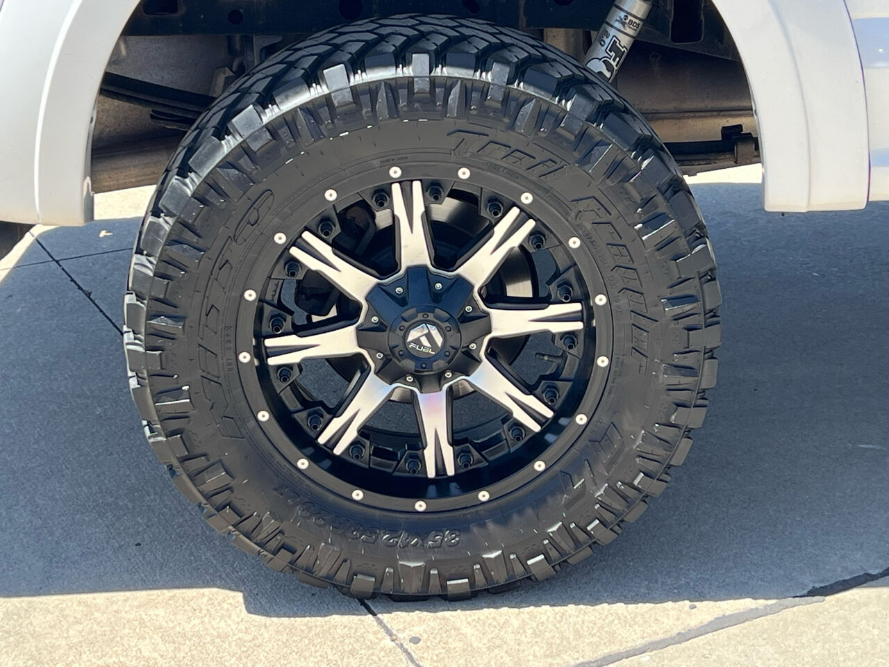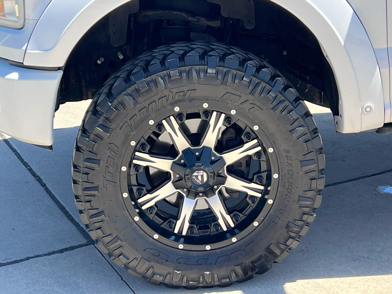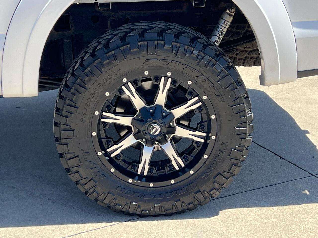 This F-150 stands out with a 4-inch BDS suspension lift kit and upgraded Fox shocks, giving it an aggressive stance and enhanced off-road capability. It rides on 20-inch Fuel Nutz deep lip aluminum wheels wrapped in 35x12.50R20 Nitto Trail Grappler M/T tires, delivering both rugged performance and bold visual appeal. The FX4 Off-Road Package further enhances its trail-ready capability.