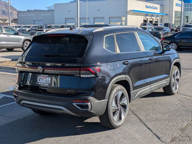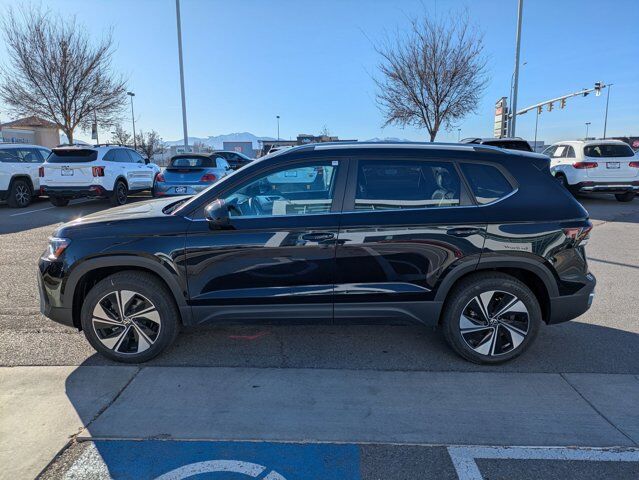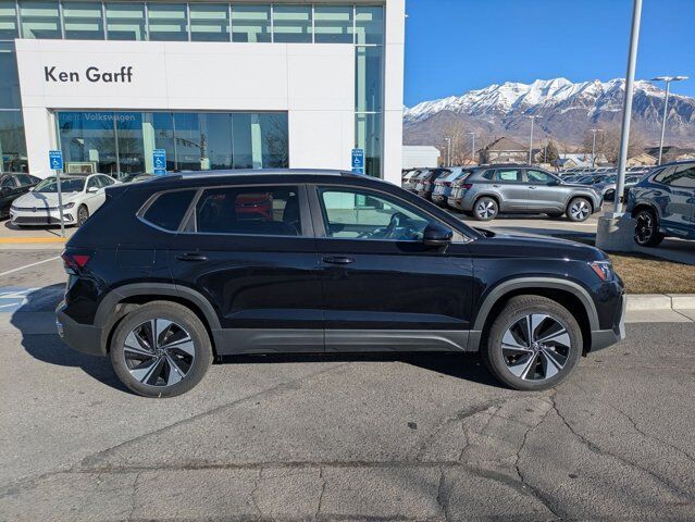 Deep Black Pearl 2025 Volkswagen Taos 1.5T SE AWD 8-Speed Automatic with Tiptronic 1.5L I4 Turbocharged DOHC 16V LEV3-SULEV30 174hp Panoramic Sunroof Package, Retractable Privacy Cover for Cargo Area Blocks, Roadside Assistance Kit, VW Care, 4-Wheel Disc Brakes, 6 Speakers, ABS brakes, Active Blind Spot Monitor, Air Conditioning, Alloy wheels, AM/FM radio: SiriusXM with 360L, Auto High-beam Headlights, Automatic temperature control, Brake assist, Bumpers: body-color, CloudTex & Cloth Seating Surfaces, Compass, Delay-off headlights, Driver door bin, Driver vanity mirror, Dual front impact airbags, Dual front side impact airbags, Electronic Stability Control, Emergency communication system: VW Car-Net Safe & Secure 5-year, Exterior Parking Camera Rear, First Aid Kit, Four wheel independent suspension, Front anti-roll bar, Front Bucket Seats, Front Center Armrest, Front dual zone A/C, Front reading lights, Front Strut Rear Multi-Link Suspension, Fully automatic headlights, Heated door mirrors, Heated Front Bucket Seats, Heated front seats, Heated steering wheel, Illuminated entry, Leather Shift Knob, Low tire pressure warning, Occupant sensing airbag, Outside temperature display, Overhead airbag, Overhead console, Panic alarm, Passenger door bin, Passenger vanity mirror, Power door mirrors, Power driver seat, Power steering, Power windows, Radio data system, Radio: MIB3 Composition Media AM/FM/HD, Rain sensing wipers, Rear anti-roll bar, Rear seat center armrest, Rear window defroster, Rear window wiper, Remote keyless entry, Security system, Speed control, Speed-sensing steering, Split folding rear seat, Spoiler, Steering wheel mounted audio controls, Tachometer, Telescoping steering wheel, Tilt steering wheel, Traction control, Trip computer, Variably intermittent wipers, Wheels: 18 2-Tone Machined Alloy, IQ.DRIVE, Monster Mats (set of 4) & Heavy Duty Trunk Liner w/ VW CarGo Blocks, Panoramic Sunroof Package, Retractable Privacy Cover for Cargo Area Blocks, Roadside Assistance Kit, VW Care.Recent Arrival! 25/33 City/Highway MPG $1,500 Financing Discount Included in all Discounts. Must allow Ken Garff VW to arrange financing. Must finance a minimum of 90% of MSRP. Not Valid with 0% or other subvented interest rates. Remaining Discounts are a Combination of Ken Garff Discounts and Remaining Manufacturer Rebates and Incentives. See dealer for complete details and limitations. $3500 - Customer Bonus. Exp. 03/02/2026