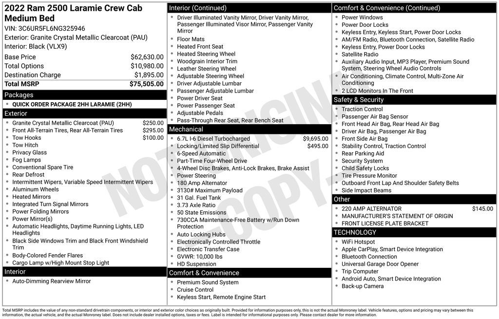 This 2022 Ram 2500 Laramie is a true workhorse, packed with an impressive array of features that will elevate your driving experience. Let's explore what makes this truck a standout in its class: