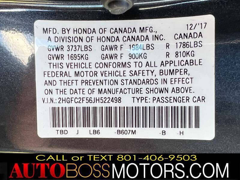 PLEASE TEXT BLAKE @ 801-406-9503******** INTERNET SPECIAL! **** ONLY $13,495! FOR SALE 2018 HONDA CIVIC LX Engine: 2.0L 4CYL, BRANDED TITLE, ONLY 39K MILES! BLACK UP CAMERA, AUTO TRANSMISSION, KEYLESS ENTRY, MUSIC LINK, KEYLESS, ALARM, Air Conditioning; Power Windows; Power Locks; Power Steering; Tilt Wheel; AM/FM CD/MP3; Satellite; Immobilizer; Keyless Entry; Alarm; Daytime Running Lights; Dual Front Airbags; Side Airbags; Head Airbags; Rear Head Airbags; Active Seatbelts; All Wheel ABS; RUNS AND DRIVES GREAT, LIKE NEW, COMPLETE SAFETY AND EMISSIONS INSPECTION, CAR IS LOCATED AT 2476 S 1250 W WOODS CROSS UTAH 84087 ***TEXT BLAKE @ 801-406-9503 *** FOR APPOINTMENT *