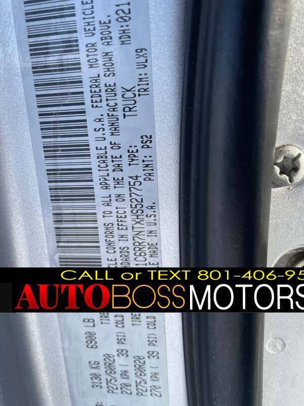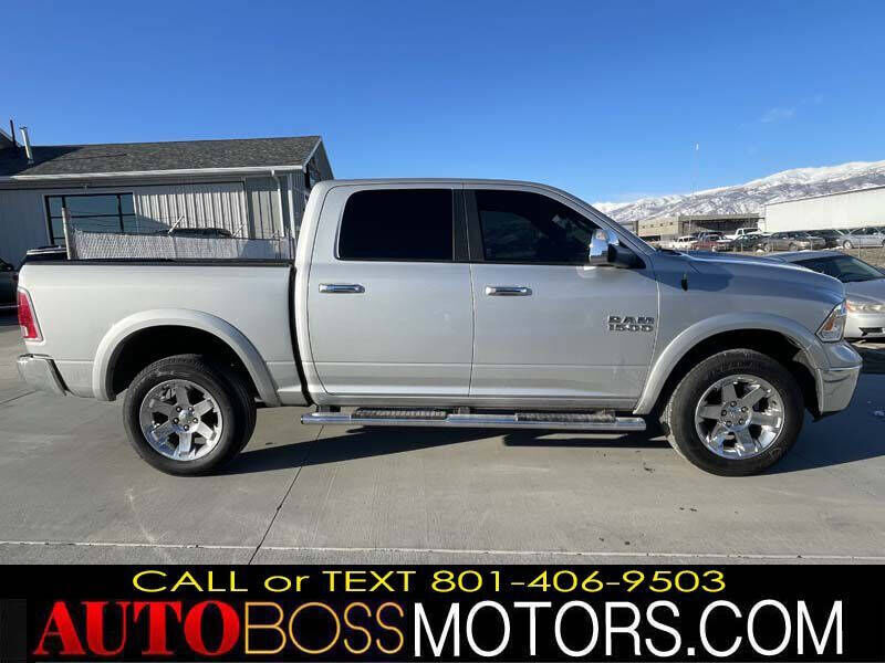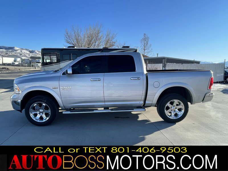 BY APPOINTMENT ONLY!! WE TAKE TRADE-INS!! TEXT BLAKE (801) 406-9503 FOR MORE DETAILS!! INTERNET SPECIAL!! ONLY $19,995!! 2017 RAM 1500 LARAMIE 5.7L V8 4X4!! BRANDED TITLE WITH ONLY 76K MILES!! FULLY LOADED WITH HEATED/COOLED LEATHER SEATS, HEATED STEERING WHEEL, 6-PASSENGER SEATING, LARGE TOUCHSCREEN WITH APPLE CARPLAY, BACKUP CAMERA, BED LINER, SIDE STEPS, AND MORE!! FEATURES INCLUDE AIR CONDITIONING, POWER WINDOWS, POWER LOCKS, POWER STEERING, TILT WHEEL, AM/FM CD/MP3, SATELLITE RADIO, ACTIVE KEYLESS ENTRY, DAYTIME RUNNING LIGHTS, DUAL AIRBAGS, ACTIVE SEATBELTS, AND PASSENGER AIRBAG SENSOR!! CREW CAB, SHORT BED, ALL-WHEEL ABS!! NICE AND CLEAN, COMPLETE SAFETY AND EMISSION INSPECTION!! LOCATED AT 2476 S 1250 W, WOODS CROSS, UT 84087!! BY APPOINTMENT ONLY!! TEXT BLAKE (801) 406-9503 TO SCHEDULE A TEST DRIVE TODAY!!