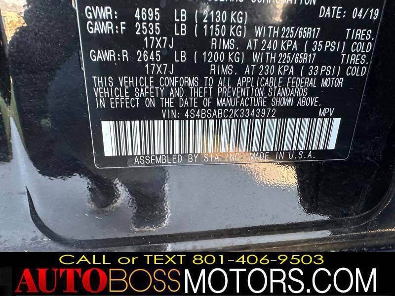 PLEASE TEXT BLAKE @ 801-406-9503*** INTERNET SPECIAL! **** ONLY $16,490! FOR SALE 2019 SUBARU OUTBACK 2.5i PREMIUM ALL WHEEL DRIVE, AUTOMATIC, ONLY 57K MILES!, BRANDED TITLE! GREAT CONDITION! EYE-SIGHT TECH PACKAGE WITH CRASH DETECTION AND LANE ASSIST, ADAPTIVE CRUISE CONTROL, BLIND SPOT DETECTION, POWER, POWER LOCKS, POWER WINDOWS, CRUISE, AC, CD PLAYER, BACKUP CAMERA, , BLUETOOTH HANDS FREE PHONE AND MUSIC LINK, ALLOY WHEELS, SKI RACK, ASK ABOUT OUT CARGO BASKET (SOLD SEPARATELY) WINDOW TINT, KEYLESS, ALARM, NICE AND CLEAN! RUNS GREAT! COMPLETE SAFETY AND EMISSIONS INSPECTION, CAR LOCATED AT 2476 S 1250 W WOODS CROSS UTAH 84087 ***TEXT BLAKE @ 801-406-9503 *** FOR APPOINTMENT **