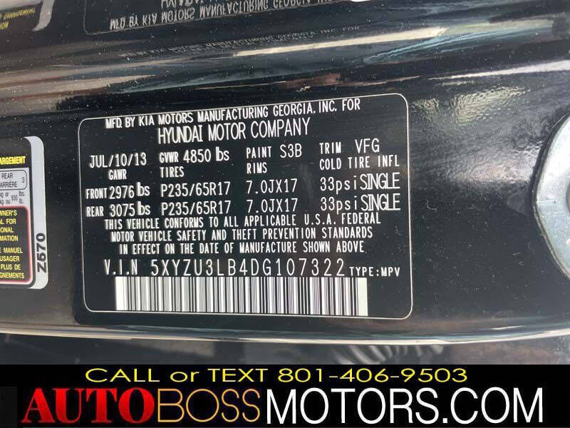 PLEASE TEXT BLAKE 801-406-9503 FOR APPOINTMENT* INTERNET SPECIAL! **** ONLY $11,495! FOR SALE 2013 HYUNDAI SANTA FE SPORT FWD, BRANDED TITLE, 65K MILES!! ALLOY WHEELS, BLUETOOTH XM RADIO, HEATED SEATS, POWER SEAT, Air Conditioning; Power Windows; Power Locks; Power Steering; Tilt Wheel; AM/FM CD/MP3; Satellite; Keyless Entry; Alarm; Daytime Running Lights; Dual Front Airbags; Side Airbags; Head Airbags; Rear Head Airbags; Active Seatbelts; All Wheel ABS NICE AND CLEAN! COMPLETE SAFETY AND EMISSION INSPECTION, GREAT TIRES, RUNS AND DRIVES GREAT, CAR IS LOCATED AT 2476 S 1250 W WOODS CROSS UTAH 84087 ***TEXT BLAKE @ 801-406-9503 *** FOR APPOINTMEN