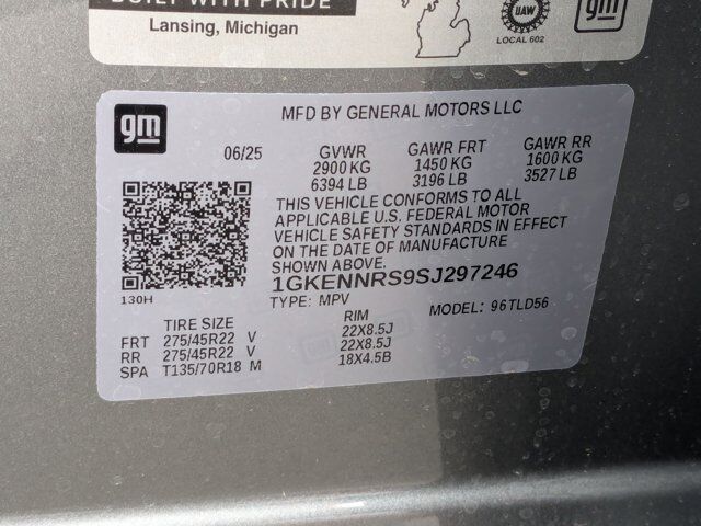 Preferred Equipment Group 4SD,18 inch x 7.5 inch Aluminum Wheels,8-Way Power Driver Seat Adjuster,4-Way Manual Front Passenger Seat Adjuster,8-Passenger Seating (2-3-3 Seating Configuration),2-Way Driver Power Lumbar Seat Adjuster,Performance Suspension,3.49 Final Drive Axle Ratio,Radio: 15 inch Diagonal Premium GMC Infotainment System,Heated Driver and Front Passenger Seats,Wheels: 22 inch x 8.5 inch Gloss Black Aluminum,Cloth Seat Trim,SiriusXM with 360L,Bose Premium 12-Speaker System with Sub-Woofer,Gloss Black Roof Rails,Black Edition,12 Speakers,Emergency communication system: OnStar Services capable,Apple CarPlay/Android Auto,AM/FM radio: SiriusXM with 360L,Auto High-beam Headlights,Exterior Parking Camera Rear,Compass,Auto-dimming Rear-View mirror,Front beverage holders,Variably intermittent wipers,Turn signal indicator mirrors,Trip computer,Traction control,Tilt steering wheel,Telescoping steering wheel,Steering wheel mounted audio controls,Sport steering wheel,Split folding rear seat,Speed-sensing steering,Speed control,Security system,Remote keyless entry,Rear window wiper,Rear window defroster,Rear side impact airbag,Rear seat center armrest,Rear reading lights,Rear anti-roll bar,Rear air conditioning,Radio data system,Power windows,Power steering,Power driver seat,Power door mirrors,Passenger vanity mirror,Passenger door bin,Panic alarm,Overhead console,Overhead airbag,Outside temperature display,Occupant sensing airbag,Low tire pressure warning,Leather steering wheel,Illuminated entry,Heated steering wheel,Heated front seats,Heated door mirrors,Fully automatic headlights,Front reading lights,Front fog lights,Front dual zone A/C,Front anti-roll bar,Four wheel independent suspension,Dual front side impact airbags,Dual front impact airbags,Driver vanity mirror,Driver door bin,Delay-off headlights,Bumpers: body-color,Brake assist,Bodyside moldings,Automatic temperature control,Alloy wheels,ABS brakes,3rd row seats: split-bench,Voltmeter,Tachometer,Spoiler,Power Liftgate,Navigation System,Front Center Armrest,Front Bucket Seats,Electronic Stability Control,Air Conditioning,4-Wheel Disc Brakes,ELEVATION PREFERRED EQUIPMENT GROUP includes standard equipment,TRANSMISSION 8-SPEED AUTOMATIC (STD),WHEELS 22 X 8.5 (55.9 CM X 21.6 CM) GLOSS BLACK ALUMINUM,SUSPENSION PERFORMANCE,SEATING 8-PASSENGER,ROOF RAILS GLOSS BLACK,TIRES P275/45R22 ALL-SEASON BLACKWALL,AFTER DARK CLOTH SEAT TRIM,SEATS FRONT BUCKET (STD),BLACK EDITION includes Black grille Black badging Black exterior accents (V5R) Gloss Black roof rails and (RVH) 22 Gloss Black aluminum wheels,ENGINE 2.5L TURBO DOHC SIDI with Variable Valve Timing (VVT) (328 hp [244 kW] @ 5500 rpm 326 lb-ft of torque [442 N-m]) @ 3500 rpm) (STD),STERLING METALLIC,Back-Up Camera,Lane Departure Warning,Lane Keeping Assist,Aerial View Display System,Front Collision Mitigation,Front Collision Warning,Tow Hitch,Power Driver Seat,Heated Front Seat(s),Driver Adjustable Lumbar,Remote Trunk Release,Remote Engine Start,Power Liftgate,Heated Steering Wheel,Turbocharged,All Wheel Drive,ABS,4-Wheel Disc Brakes,Aluminum Wheels,Tires - Front All-Season,Tires - Rear All-Season,Temporary Spare Tire,Automatic Highbeams,Privacy Glass,Heated Mirrors,Power Mirror(s),Integrated Turn Signal Mirrors,Privacy Glass,Intermittent Wipers,Intermittent Wipers,Remote Trunk Release,Power Liftgate,Hands-Free Liftgate,MP3 Capability,Bluetooth Connection,Auxiliary Audio Input,Smart Device Integration,Premium Sound System,Satellite Radio,Requires Subscription,WiFi Hotspot,Bucket Seats,3rd Row Seat,Cloth Seats,Power Driver Seat,Driver Adjustable Lumbar,Heated Front Seat(s),Floor Mats,Floor Mats,Adjustable Steering Wheel,Heated Steering Wheel,Power Windows,Power Door Locks,Keyless Entry,Power Door Locks,Remote Engine Start,Keyless Entry,Power Door Locks,Keyless Start,Cruise Control,Adaptive Cruise Control,MP3 Capability,Auxiliary Audio Input,Climate Control,Multi-Zone A/C,A/C,Rear A/C,A/C,Rear A/C,Rear Defrost,Front Reading Lamps,Rear Reading Lamps,Navigation System,Telematics,Requires Subscription,Front Collision Mitigation,Front Collision Warning,Cross-Traffic Alert,Rear Collision Mitigation,Front Collision Warning,Traction Control,Stability Control,Front Collision Mitigation,Front Collision Warning,Passenger Air Bag Sensor,Driver Air Bag,Passenger Air Bag,Front Side Air Bag,Rear Side Air Bag,Front Head Air Bag,Rear Head Air Bag,Passenger Air Bag Sensor,Telematics,Requires Subscription,Back-Up Camera,Aerial View Display System,Rear Parking Aid,Blind Spot Monitor,Evasion Assist,Front Collision Warning,Lane Departure Warning,Lane Keeping Assist,Front Collision Mitigation,Front Collision Warning,Driver Restriction Features,Tire Pressure Monitor