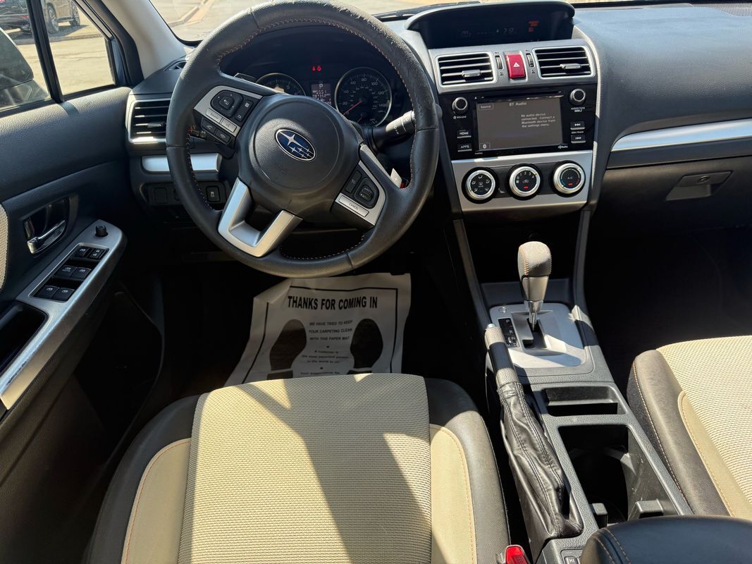 Heated Seats,Bluetooth,Backup Camera,Roof rails: black,Driver seat: heated,Driver seat manual adjustments: height lumbar, reclining, 6,Front headrests: adjustable 2,Front seat type: bucket,Passenger seat: heated,Passenger seat manual adjustments: reclining 4,Rear headrests: adjustable 3,Rear seat folding: split,Rear seat type: 60-40 split bench,Upholstery: cloth,Upholstery accents: contrast stitching,ABS: 4-wheel,Braking assist: ,Electronic brakeforce distribution: ,Front brake diameter: 11.6,Front brake type: ventilated disc,Power brakes: ,Rear brake diameter: 10.8,Rear brake type: disc,Alternator: 130 amps,Battery saver: ,Daytime running lights: ,Front fog lights: ,Headlights: auto off halogen,Camera system: rearview,Child safety door locks: ,Child seat anchors: LATCH system,Crumple zones: front rear,Impact absorbing seats: dual front,Impact sensor: fuel cut-off,Rearview monitor: in dash,Safety brake pedal system: ,Airbag deactivation: occupant sensing passenger,Front airbags: dual,Knee airbags: driver,Side airbags: front,Side curtain airbags: front rear,Side mirror adjustments: manual folding power,Side mirrors: heated,Front wipers: variable intermittent,Heated windshield wiper rests: ,Liftgate window: fixed,Power windows: ,Rear privacy glass: ,Rear wiper: auto-on in reverse intermittent, with washer,Window defogger: rear,Anti-theft system: alarm vehicle immobilizer,Power door locks: anti-lockout,Steering ratio: 14.0,Turns lock-to-lock: 2.8,Emergency locking retractors: driver rear,Front seatbelts: 3-point,Rear seatbelts: 3-point,Seatbelt force limiters: front,Seatbelt pretensioners: front,Seatbelt warning sensor: front,4WD type: full time,Axle ratio: 3.70,Front shock type: gas,Front spring type: coil,Front stabilizer bar: ,Front struts: MacPherson,Front suspension classification: independent,Front suspension type: lower control arms,Rear shock type: gas,Rear spring type: coil,Rear stabilizer bar: diameter 16 mm,Rear suspension classification: independent,Rear suspension type: double wishbone,Electronic messaging assistance: voice operated with read function,Satellite communications: voice guided directions,Smart device app compatibility: MySubaru,Smart device app function: horn/light operation lock operation, maintenance scheduling, maintenance status, vehicle location,Wireless data link: Bluetooth,Antenna type: mast,Auxiliary audio input: Bluetooth USB, iPod/iPhone, jack,In-Dash CD: MP3 Playback single disc,Internet radio app: AHA Pandora, Stitcher, iHeartRadio,Radio: AM/FM HD radio, touch screen display,Radio data system: ,Total speakers: 6,Spare tire mount location: inside,Spare tire size: temporary,Spare wheel type: steel,Tire Pressure Monitoring System: ,Tire type: all season,Wheels: aluminum alloy,Clock: ,Digital odometer: ,External temperature display: ,Fuel economy display: MPG range,Gauge: tachometer,Multi-function display: ,Trip odometer: ,Warnings and reminders: coolant temperature warning lamp failure, low fuel level, low oil pressure, low washer fluid,Air filtration: ,Front air conditioning: ,Front air conditioning zones: single,Cargo area floor mat: rubber/vinyl,Dash trim: metallic,Door trim: cloth,Floor mat material: carpet,Floor material: carpet,Floor mats: front rear,Interior accents: metallic-tone,Shift knob trim: leather,Steering wheel trim: leather,Door handle color: body-color,Exhaust tip color: stainless steel,Fender lip moldings: black,Front bumper color: body-color,Grille color: black with chrome accents,Headlight bezel color: black,Mirror color: body-color,Rear bumper color: body-color,Rear spoiler: roofline,Rear spoiler color: body-color,Rear trunk/liftgate: liftgate,Rocker panel color: black,Window trim: black,Assist handle: front rear,Cargo area light: ,Cargo cover: retractable,Center console: front console with armrest and storage illuminated, organizer tray,Cruise control: ,Cupholders: front rear,Multi-function remote: keyless entry panic alarm, trunk release,One-touch windows: 1,Overhead console: front,Power outlet(s): two 12V front,Power steering: variable/speed-proportional,Power windows: lockout button,Reading lights: front rear,Rearview mirror: manual day/night,Steering wheel: tilt and telescopic,Steering wheel mounted controls: audio cruise control, multi-function, paddle shifter, phone,Storage: accessory hook cargo tie-down anchors and hooks, door pockets, front seatback, grocery bag holder,Vanity mirrors: dual,Infotainment: STARLINK,Infotainment screen size: 6.2 in.,Hill holder control: ,Stability control: ,Traction control: