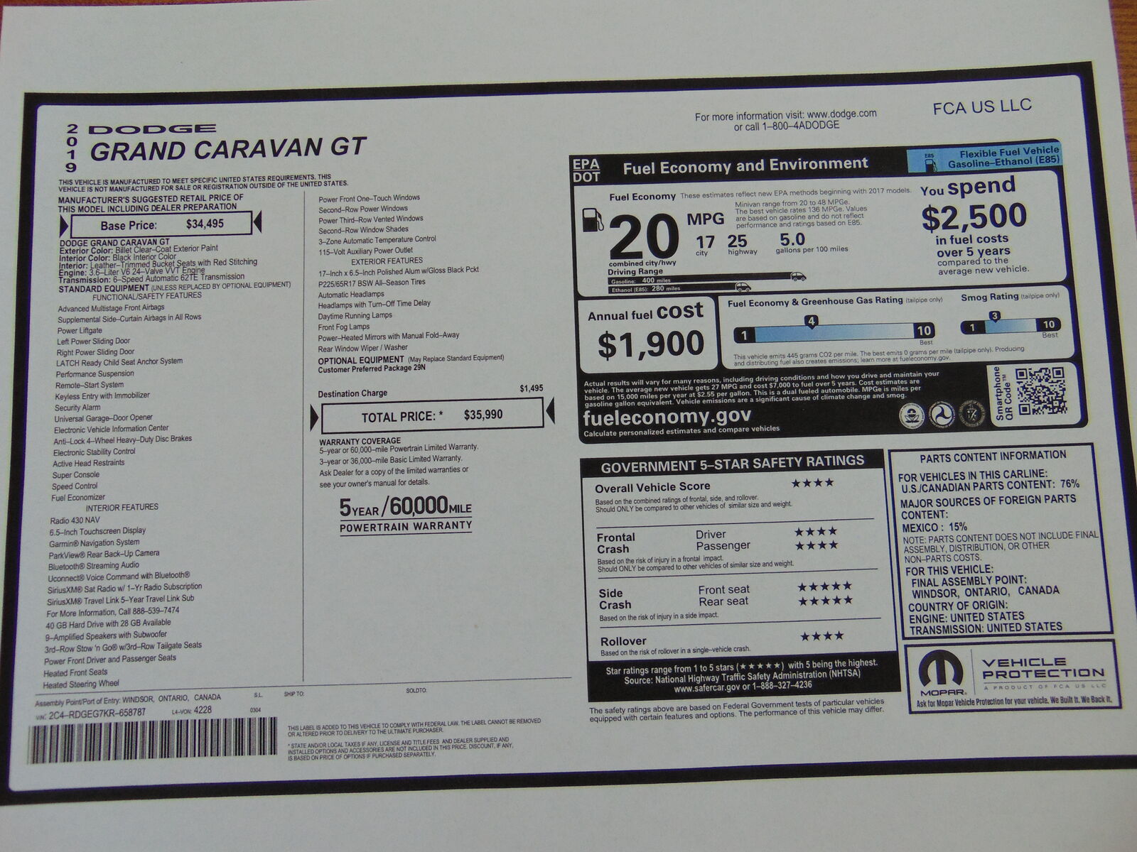 2019 DODGE GRAND CARAVAN, GT, 3.6L V6, AUTOMATIC, 111,061 MILES, BLACK LEATHER INTERIOR, 7 PASSENGER SEATING, DUAL POWER SLIDING DOORS, POEWR REAR HATCH, TRI CLIMATE CONTROL, 6.5 INCH TOUCHSCREEN NAVIGATION, BACKUP CAMERA, BLUETOOTH, XM RADIO, DUAL POWER FRONT SEATS, HEATED FRONT SEATS, DRIVERS SIDE LUMBAR SUPPORT, POWER WINDOWS, LOCKS, AND MIRRORS, TILT, CRUISE, HEATED STEERING WHEEL, REMOTE START, NEW TIRES, 17 INCH FACTORY ALLOY WHEELS, FOG LIGHTS. CLEAN TITLE AND ACTUAL MILES. THIS CARAVAN IS IN EXCELLENT CONDITION!
