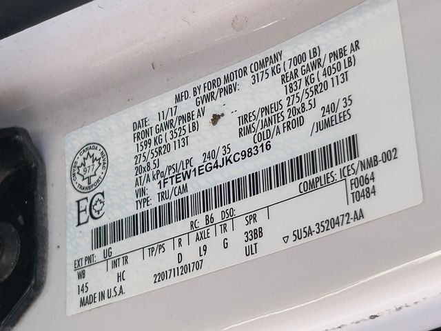 White 2018 Ford F-150 Lariat 4WD 10-Speed Automatic 3.5L V6 EcoBoost 4WD, ABS brakes, Alloy wheels, Compass, Electronic Stability Control, Front dual zone A/C, Heated door mirrors, Heated front seats, Illuminated entry, Low tire pressure warning, Remote keyless entry, Traction control.