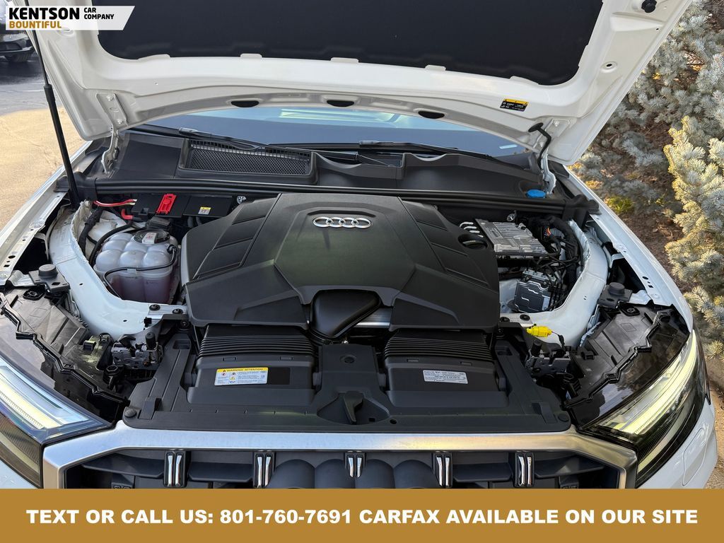 10 Speakers, 3rd row seats: bench, 4-Wheel Disc Brakes, ABS brakes, Air Conditioning, Alloy wheels, Auto High-beam Headlights, Auto-dimming door mirrors, Auto-dimming Rear-View mirror, Automatic temperature control, Brake assist, Bumpers: body-color, Compass, Delay-off headlights, Driver door bin, Driver vanity mirror, Dual front impact airbags, Dual front side impact airbags, Electronic Stability Control, Emergency communication system: Audi connect CARE, Exterior Parking Camera Rear, Four wheel independent suspension, Front anti-roll bar, Front Bucket Seats, Front Center Armrest, Front dual zone A/C, Front fog lights, Front reading lights, Fully automatic headlights, Garage door transmitter: HomeLink, Genuine wood door panel insert, Heated door mirrors, Heated Front Bucket Seats, Heated front seats, Illuminated entry, Leather Seating Surfaces, Leather Shift Knob, Leather steering wheel, Low tire pressure warning, Memory seat, Navigation system: Audi MMI Navigation plus with Touch Response, Occupant sensing airbag, Outside temperature display, Overhead airbag, Overhead console, Panic alarm, Passenger door bin, Passenger vanity mirror, Power door mirrors, Power driver seat, Power Liftgate, Power moonroof: Panoramic, Power passenger seat, Power steering, Power windows, Radio data system, Radio: Audi Sound System, Rain sensing wipers, Rear air conditioning, Rear anti-roll bar, Rear fog lights, Rear reading lights, Rear seat center armrest, Rear side impact airbag, Rear window defroster, Rear window wiper, Reclining 3rd row seat, Remote keyless entry, Security system, Speed control, Speed-sensing steering, Split folding rear seat, Spoiler, Steering wheel memory, Steering wheel mounted audio controls, Tachometer, Telescoping steering wheel, Tilt steering wheel, Traction control, Trip computer, Turn signal indicator mirrors, Variably intermittent wipers, and Wheels: 19'' 5-Arm-Star Design.