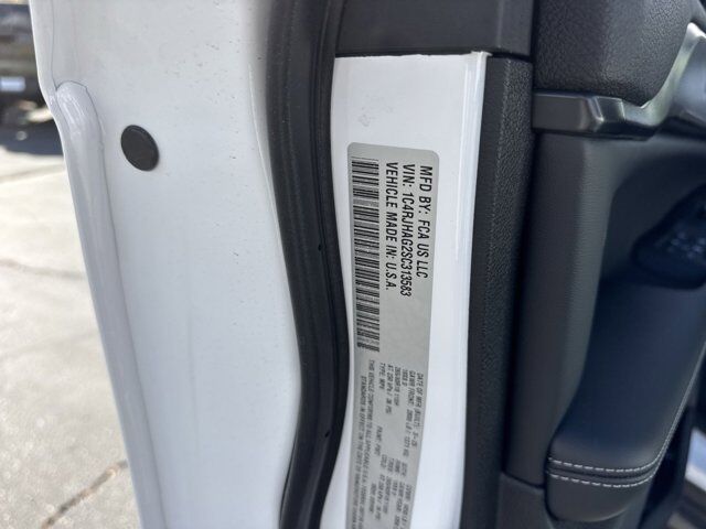 Quick Order Package 23D Laredo X,Model Year Tracking,Trailer Tow Package,Laredo X,Cloth Seats,180 Amp Alternator,Power Sunroof,Automatic Headlamp Levelling System,Front License Plate Bracket,Heavy-Duty Engine Cooling,Normal Duty Suspension,Rear Load Levelling Suspension,Radio: Uconnect 5 with 8.4 Display,Wheels: 18 x 8 Fully Painted Aluminum,Wheels: 17 x 6.5 Fully Painted Aluminum,7 and 4-Pin Wiring Harness,Class IV Receiver Hitch,Trailer Hitch Zoom,4-Wheel Disc Brakes,AM/FM radio: SiriusXM,Front Center Armrest w/Storage,Compass,Speed-Sensitive Wipers,Variably intermittent wipers,Trip computer,Traction control,Tilt steering wheel,Telescoping steering wheel,Steering wheel mounted audio controls,Split folding rear seat,Speed control,Security system,Remote keyless entry,Rear window wiper,Rear window defroster,Rear reading lights,Rear anti-roll bar,Radio data system,Power windows,Power steering,Power driver seat,Power door mirrors,Passenger vanity mirror,Passenger door bin,Panic alarm,Overhead console,Overhead airbag,Outside temperature display,Occupant sensing airbag,Low tire pressure warning,Knee airbag,Illuminated entry,Heated door mirrors,Fully automatic headlights,Front reading lights,Front dual zone A/C,Front anti-roll bar,Four wheel independent suspension,Emergency communication system,Dual front side impact airbags,Dual front impact airbags,Driver vanity mirror,Driver door bin,Delay-off headlights,Bumpers: body-color,Brake assist,Automatic temperature control,Anti-whiplash front head restraints,Alloy wheels,Adjustable head restraints: driver and passenger w/tilt,ABS brakes,Voltmeter,Tachometer,Spoiler,ParkView Rear Back-Up Camera,Front Bucket Seats,Electronic Stability Control,Air Conditioning,6 Speakers,BRIGHT WHITE CLEARCOAT,ENGINE: 3.6L V6 24V VVT UPG I W/ESS (STD),QUICK ORDER PACKAGE 23D LAREDO X -inc: Engine: 3.6L V6 24V VVT UPG I w/ESS Transmission: 8-Speed Automatic 8HP50 Laredo X Power Sunroof,TRAILER TOW PACKAGE -inc: Rear Load Levelling Suspension Full-Size Spare Tire 180 Amp Alternator 7 & 4-Pin Wiring Harness Heavy-Duty Engine Cooling 18 Full-Size Steel Spare Wheel Automatic Headlamp Levelling System Trailer Hitch Zoom Class IV Receiver Hitch,MODEL YEAR TRACKING,GLOBAL BLACK CLOTH SEATS,TRANSMISSION: 8-SPEED AUTOMATIC 8HP50 (STD),FRONT LICENSE PLATE BRACKET,Four Wheel Drive,Power Steering,ABS,4-Wheel Disc Brakes,Brake Assist,Brake Actuated Limited Slip Differential,Aluminum Wheels,Tires - Front All-Season,Tires - Rear All-Season,Temporary Spare Tire,Heated Mirrors,Power Mirror(s),Rear Defrost,Privacy Glass,Intermittent Wipers,Variable Speed Intermittent Wipers,Rear Spoiler,Power Door Locks,Daytime Running Lights,Automatic Headlights,LED Headlights,AM/FM Stereo,Satellite Radio,Bluetooth Connection,Requires Subscription,MP3 Capability,Steering Wheel Audio Controls,Auxiliary Audio Input,Bluetooth Connection,Power Driver Seat,Driver Adjustable Lumbar,Power Driver Seat,Driver Adjustable Lumbar,Pass-Through Rear Seat,Rear Bench Seat,Adjustable Steering Wheel,Trip Computer,Power Windows,WiFi Hotspot,Keyless Entry,Power Door Locks,Keyless Start,Keyless Entry,Power Door Locks,Cruise Control,Adaptive Cruise Control,Climate Control,Multi-Zone A/C,A/C,Cloth Seats,Bucket Seats,Driver Vanity Mirror,Passenger Vanity Mirror,Driver Illuminated Vanity Mirror,Passenger Illuminated Visor Mirror,Floor Mats,Smart Device Integration,Keyless Start,Power Windows,Power Door Locks,Trip Computer,Security System,Immobilizer,Traction Control,Stability Control,Traction Control,Front Side Air Bag,Telematics,Requires Subscription,Rear Parking Aid,Blind Spot Monitor,Cross-Traffic Alert,Rear Collision Mitigation,Lane Departure Warning,Lane Keeping Assist,Lane Departure Warning,Front Collision Mitigation,Tire Pressure Monitor,Driver Air Bag,Passenger Air Bag,Front Head Air Bag,Rear Head Air Bag,Passenger Air Bag Sensor,Knee Air Bag,Child Safety Locks,Back-Up Camera