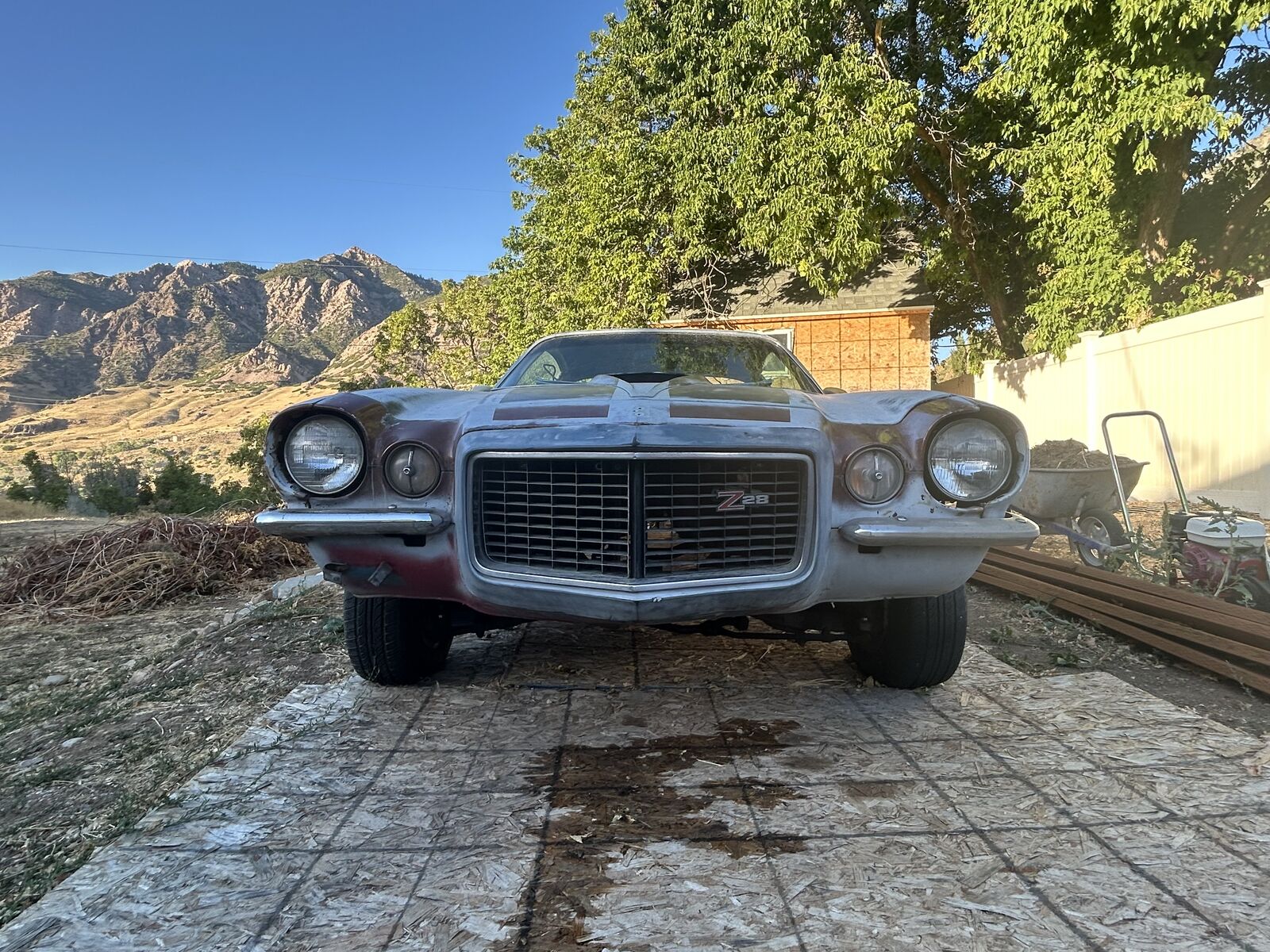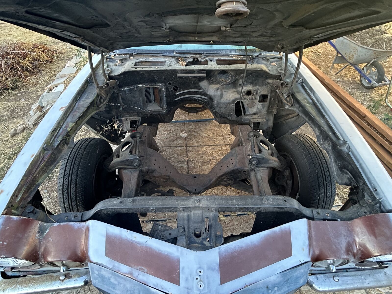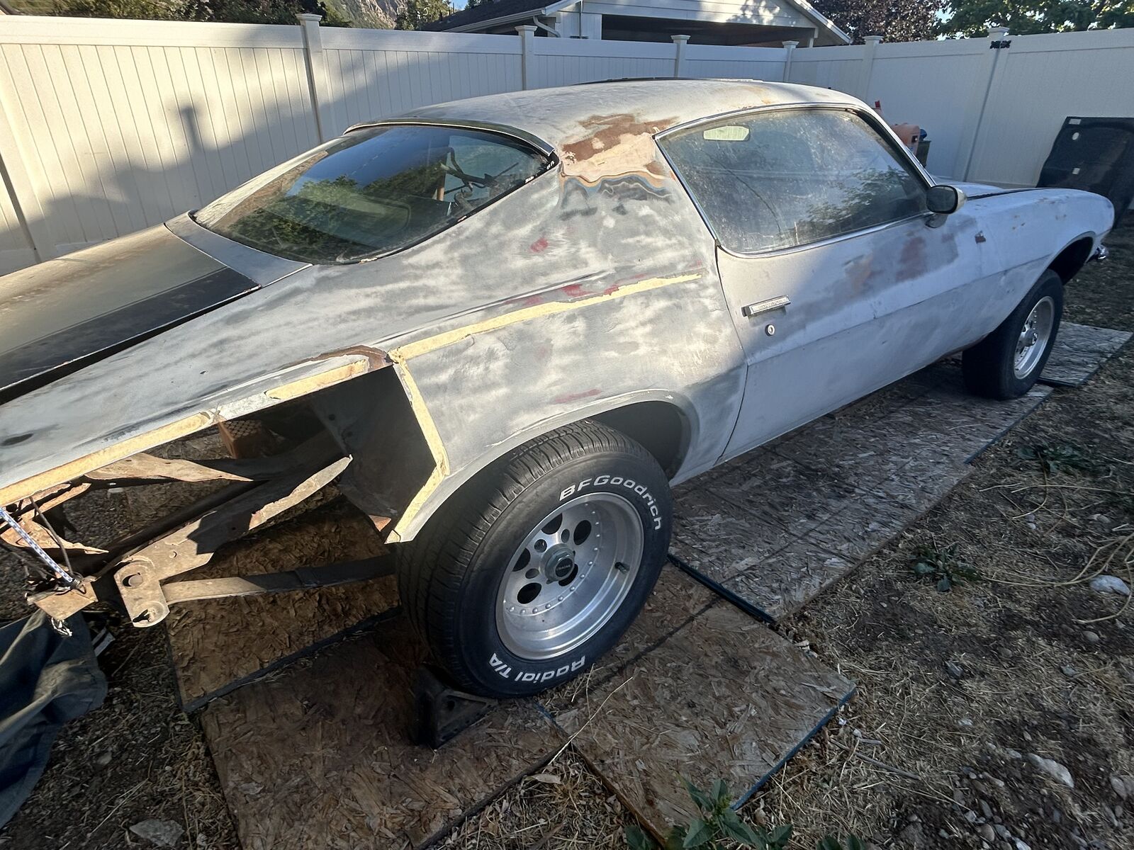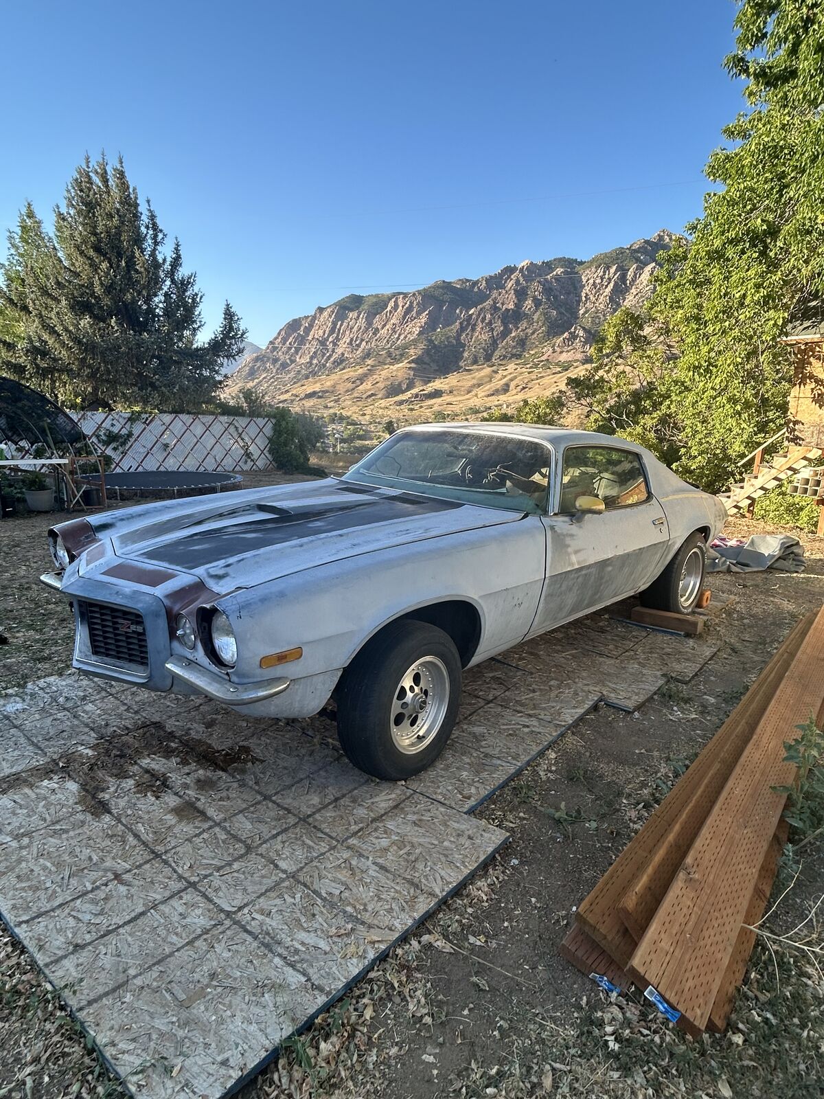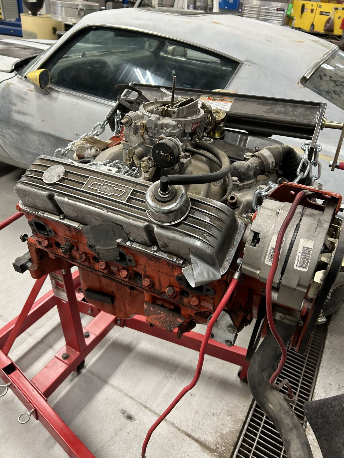 The Camaro is in my back yard covered ready to roll out with motor, trans, and boxes of parts ready to go.