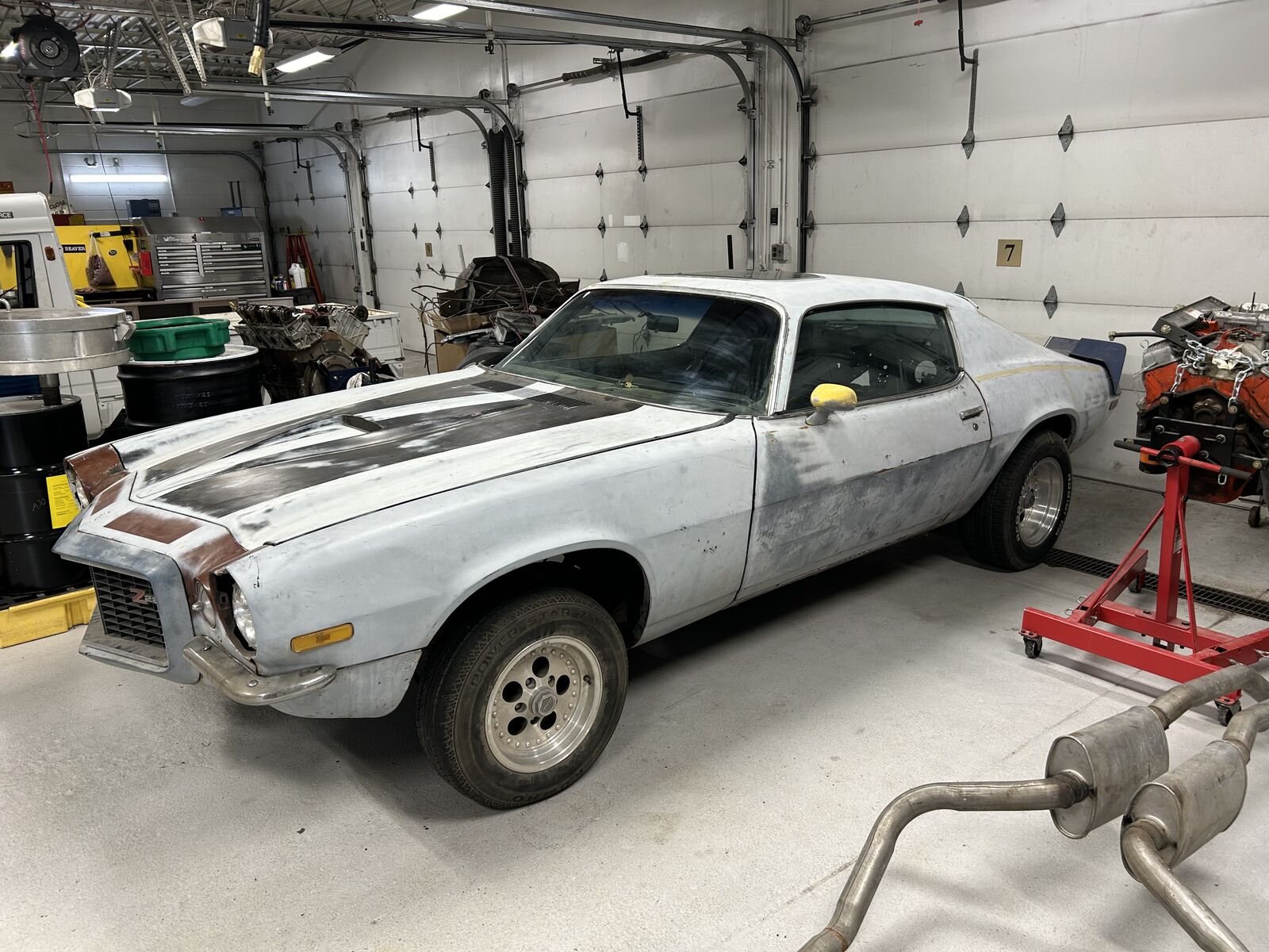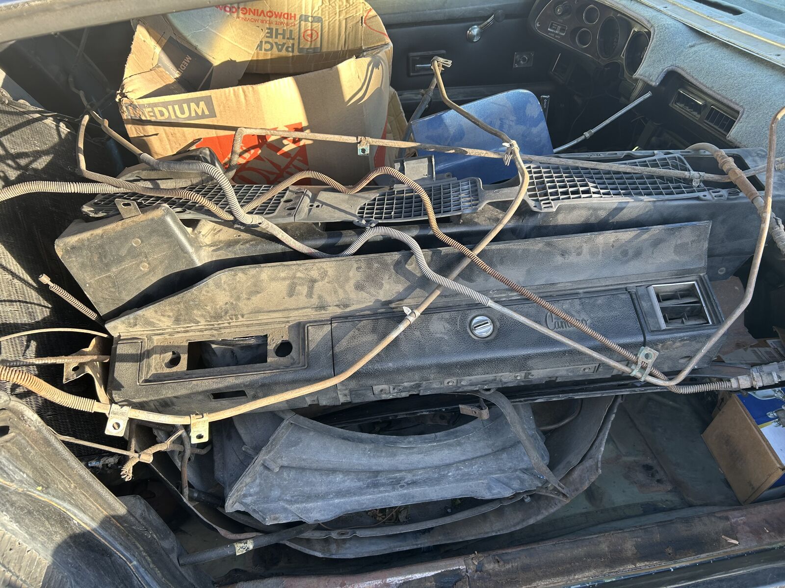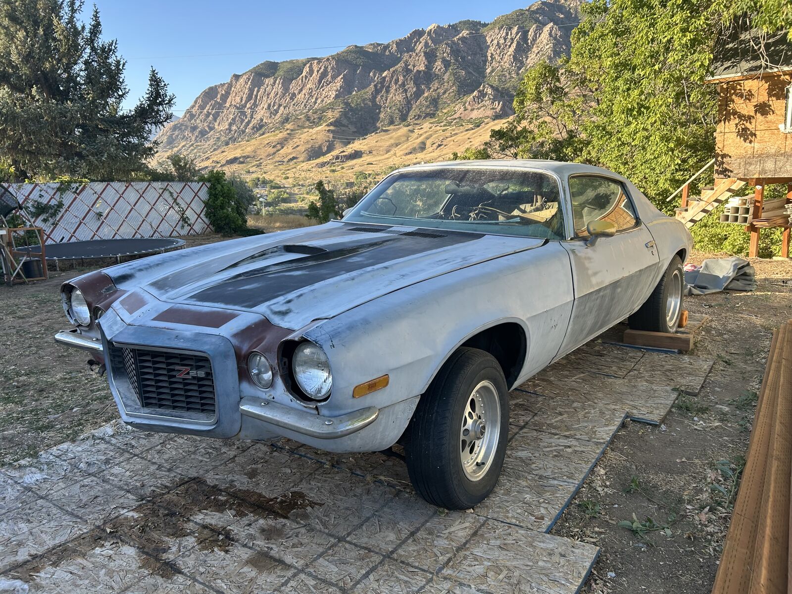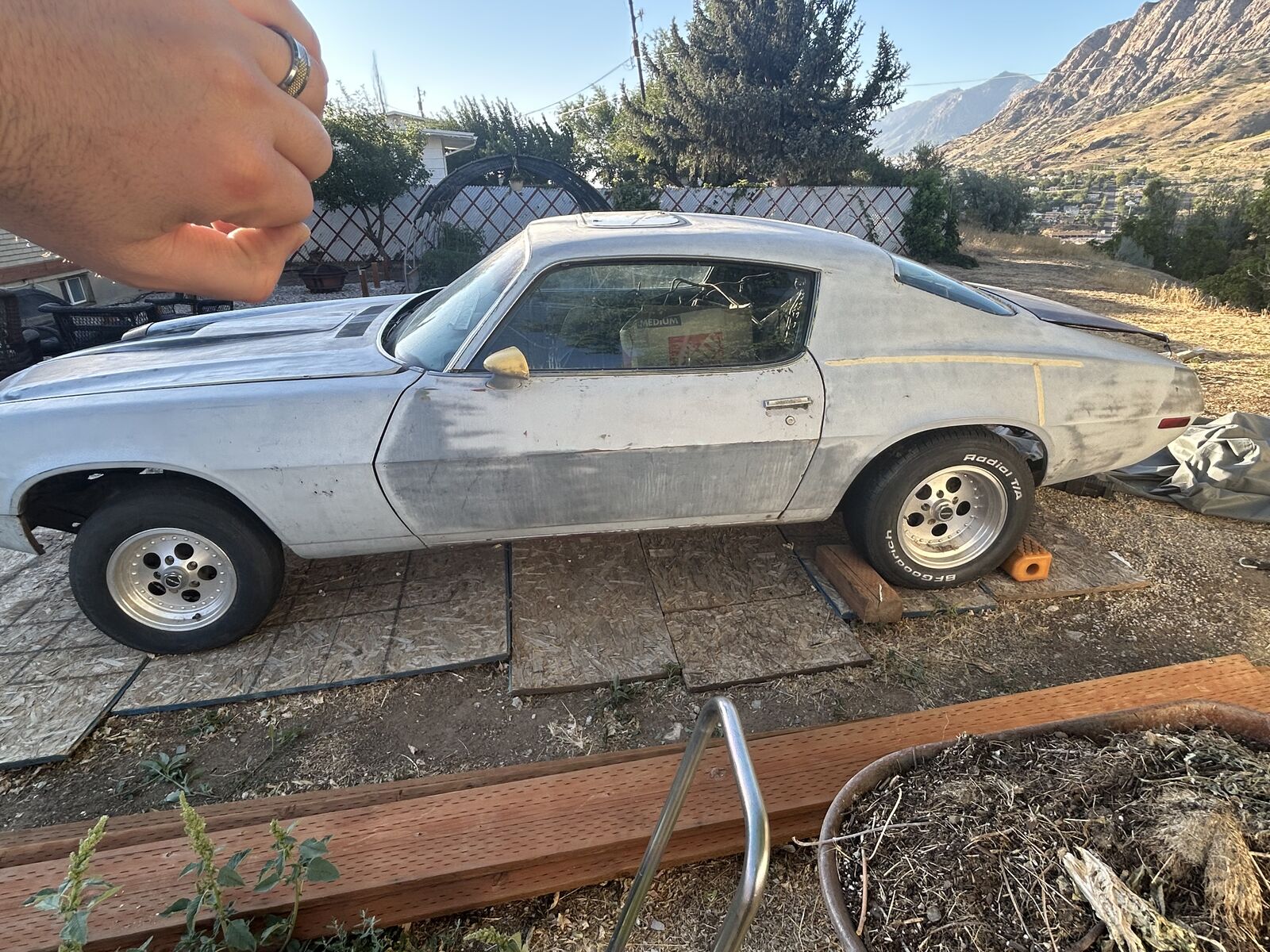 The Camaro is in my back yard covered ready to roll out with motor, trans, and boxes of parts ready to go.