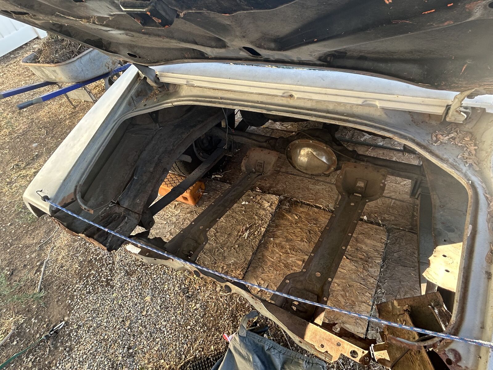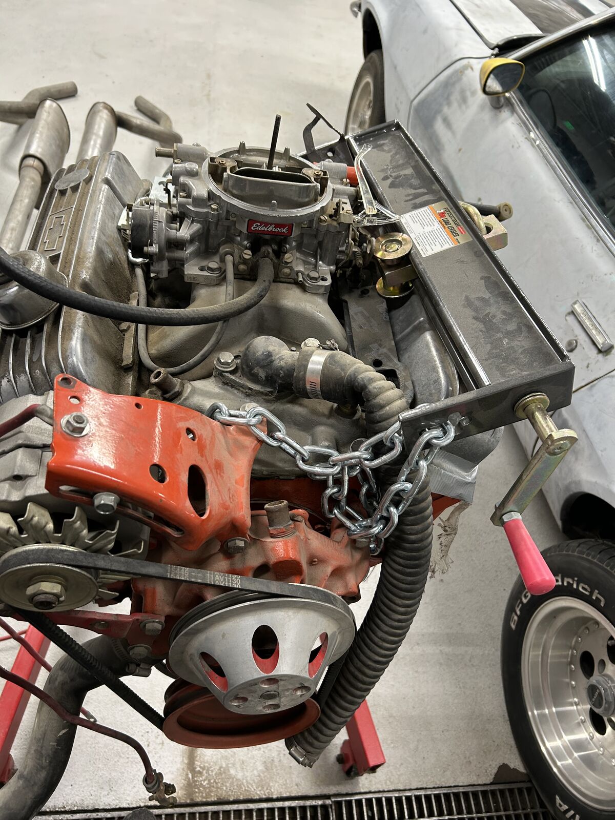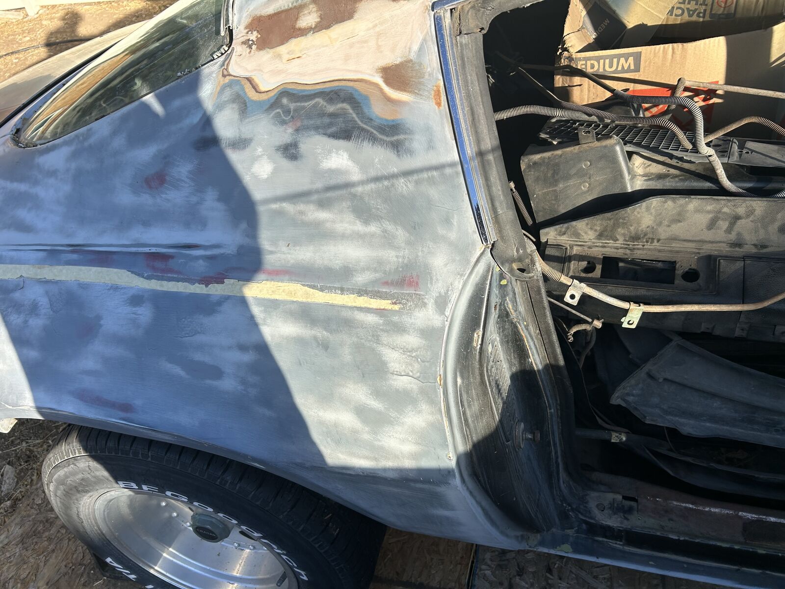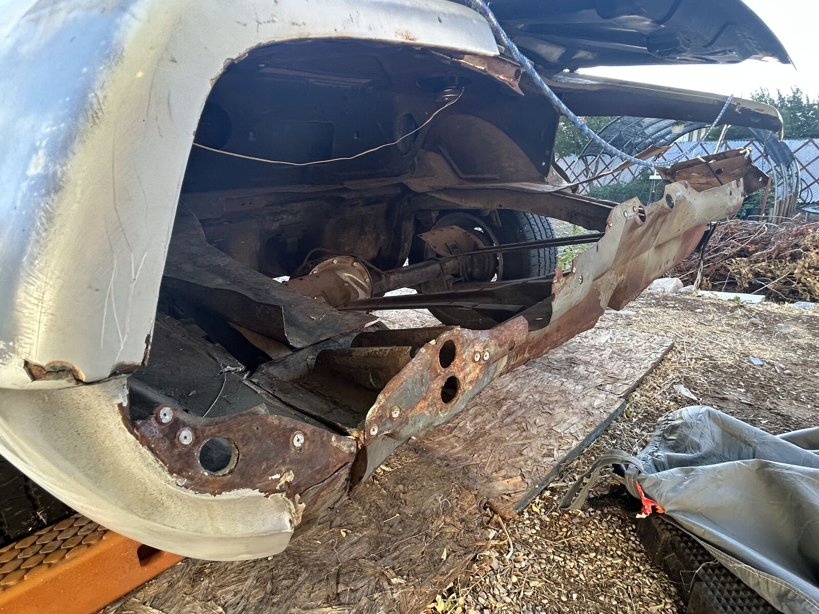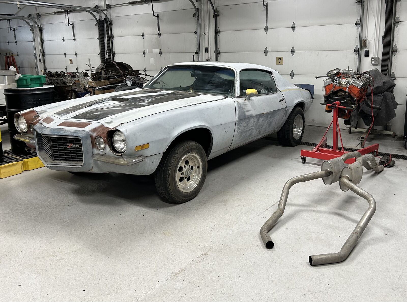 The Camaro is in my back yard covered ready to roll out with motor, trans, and boxes of parts ready to go.