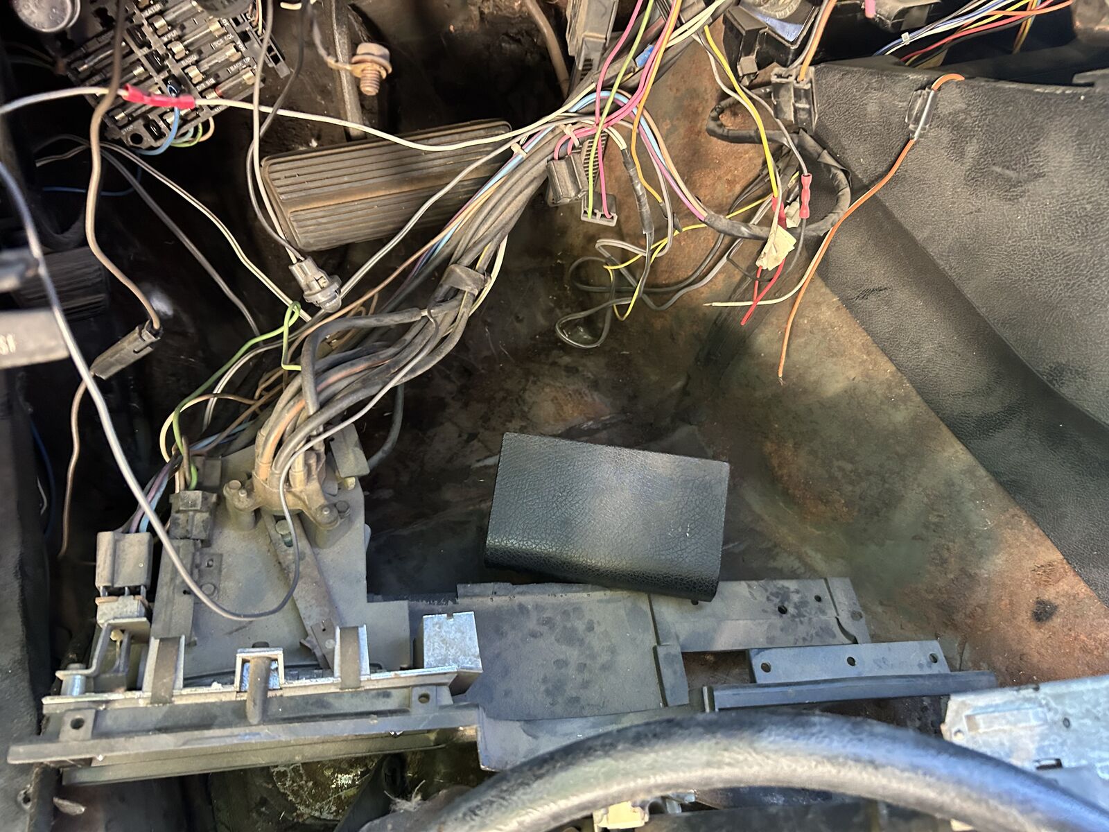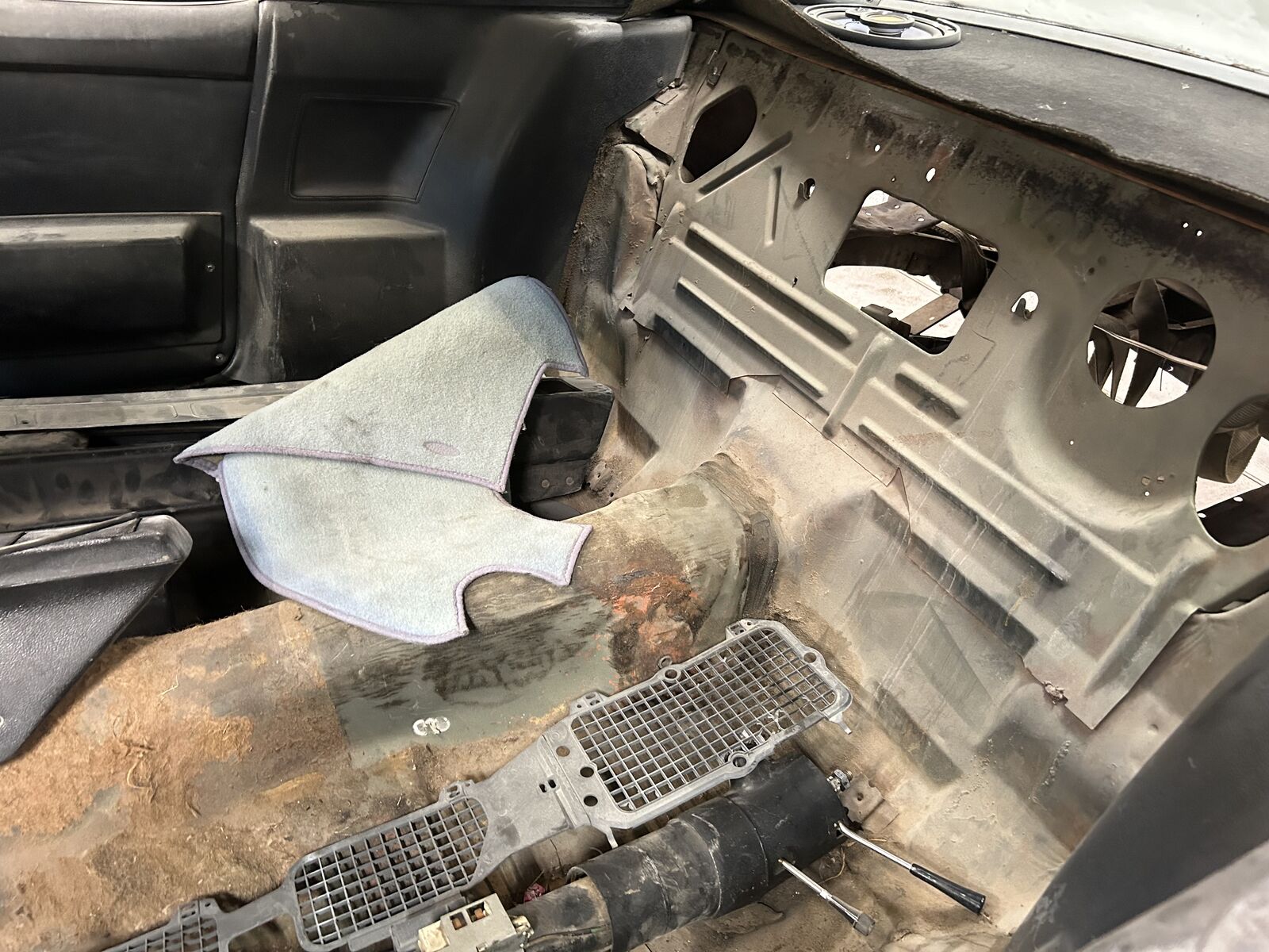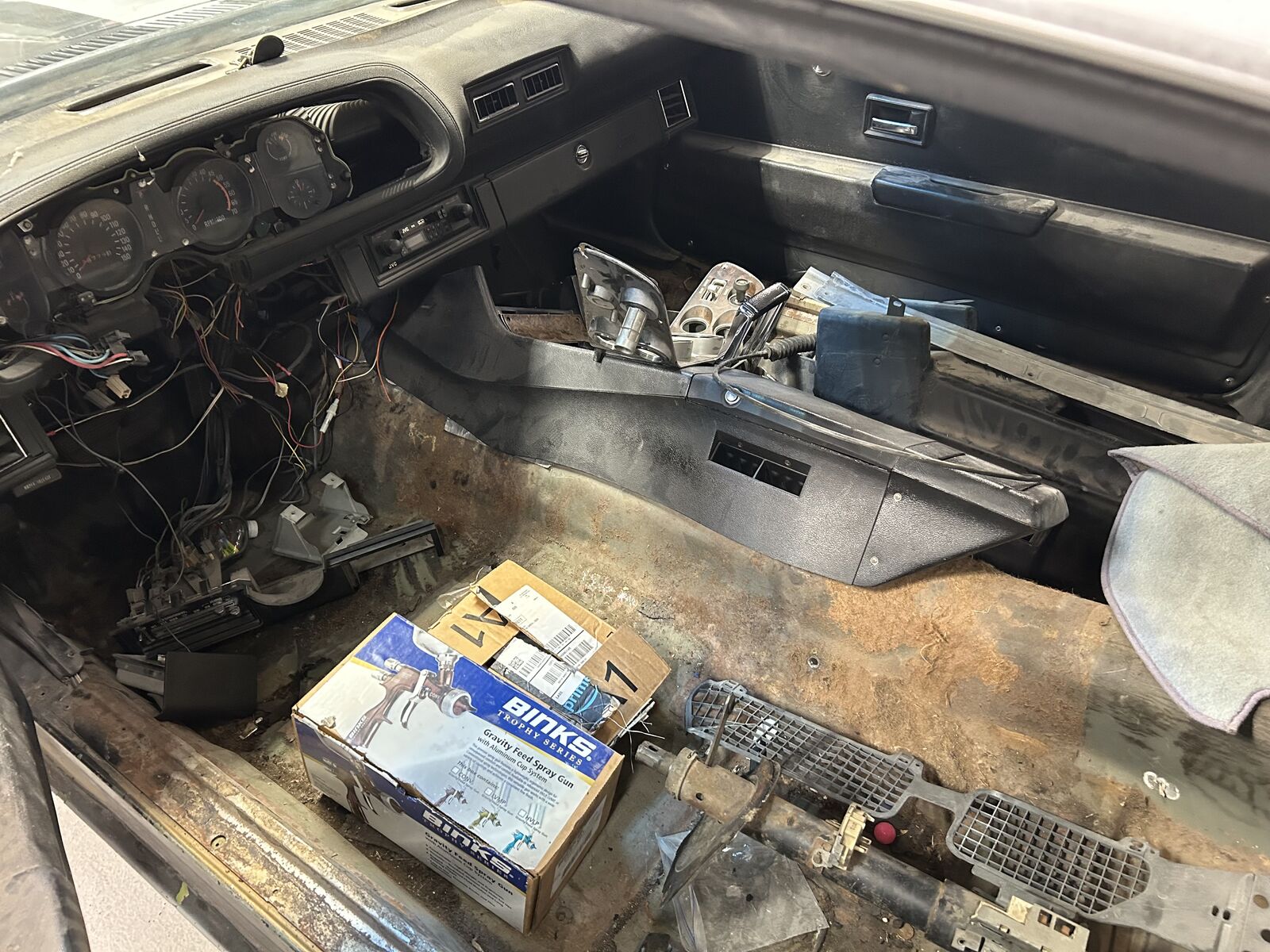 This Camaro was originally citrus green with a black vinyl top, deluxe black interior woodgrain gauges, 350 motor and a four speed transmission. The 4 speed auto transmission is original but the motor is not, I believe is a 73 high nickel cast motor. I can share stamp numbers if you need. This is a true California manufactured car and was built before the strike as a true first year second GEN Camaro. The motor and trans is currently out, everything stripped down to a roller and all the parts are boxed and bagged up. The floor pan is in one of the best shapes I’ve seen, but the trunk pan and rear pass quarter as pictured was chopped out by the prior owner for I don’t know what reason this car has no real rust issue. He threw away the seats as well and not sure why but everything else seems to be there when I bought it and boxed things up.