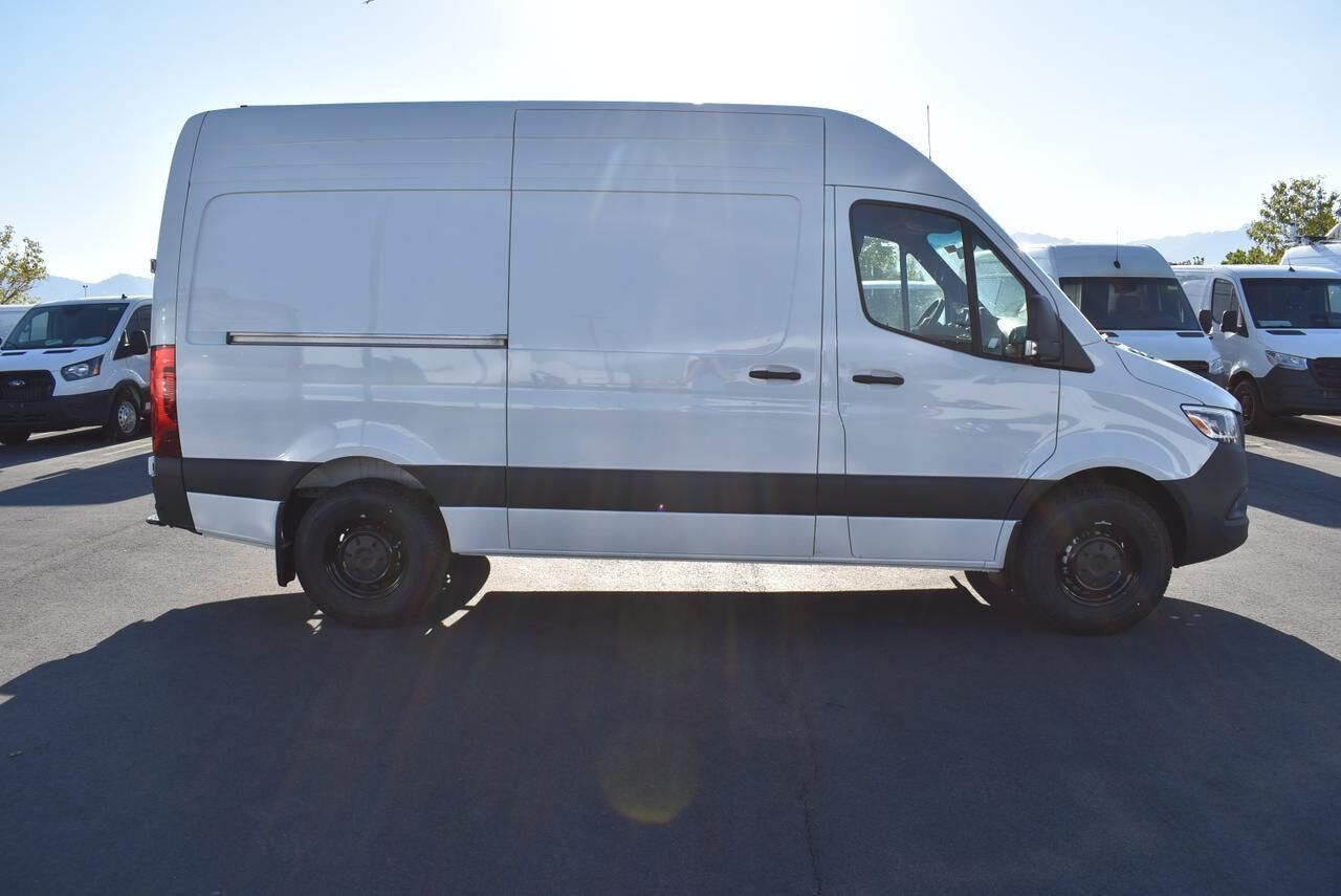 Acoustic Package,Driver Convenience Package,Exterior Lighting Package,MBUX Package,Smartphone Integration Package,High Roof,5 Speakers,AM/FM radio,Radio: MBUX Multimedia System w/10.25 Touchscreen,Radio: Standard,Air Conditioning,Driver Seat Base 12V Power Outlet,Instrument Panel Front-to-Rear Outlet,Power steering,Power windows,Remote keyless entry,Steering wheel mounted audio controls,Traction control,2 Additional Master Keys,4-Wheel Disc Brakes,ABS brakes,Dual front impact airbags,Dual front side impact airbags,Emergency communication system,Front anti-roll bar,Front wheel independent suspension,Low tire pressure warning,Overhead airbag,Rear anti-roll bar,Brake assist,Electronic Stability Control,Exterior Parking Camera Rear,Fully automatic headlights,Co-Driver Thorax-Pelvis Sidebag,Driver's Seat Occupancy Sensor,Front Passenger Airbag,Active Distance Assist DISTRONIC®,Speed control,Bodyside moldings,Electrically Folding Exterior Mirrors,Fog Lamp w/Cornering Light Function,Heated door mirrors,High Beam Assist,LED High Performance Headlamps,Partial LED Tail Lights,Power door mirrors,ATTENTION ASSIST®,Digital Rearview Mirror,Driver door bin,Hinged Lid for Left & Right Storage Compartments,Illuminated entry,Leather Steering Wheel,No Factory Installed Flooring,Outside temperature display,Overhead console,Passenger seat mounted armrest,Pre-Installation for Navigation,Tachometer,Tilt steering wheel,Wood Floor w/6 D-Rings,Armrest for Driver's Seat,Armrest for Front Passenger's Seat,Driver's Seat Mounted Armrest,Front Bucket Seats,Heated Driver's Seat,Heated front seats,Maturin Fabric Upholstery,Standard Driver Seat,Standard Front Passenger Seat,Hinged Lid for Storage Compartment,Passenger door bin,Trailer Hitch,16 x 6.5J Steel Wheels,Rain sensing wipers,Variably intermittent wipers,3.923 Axle Ratio