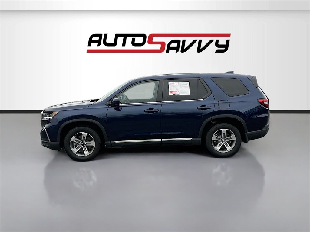 Discover the 2025 Honda Pilot EX-L AWD, now available at AutoSavvy Woods Cross. This stunning Dark Blue SUV is powered by a robust 3.5L V-6 engine with 285 horsepower, offering an efficient drive with 25 MPG on the highway. With only 10,906 miles, this vehicle delivers a nearly new driving experience. The Pilot is packed with premium features, including leather front seat upholstery, a power liftgate, and a 10-speed automatic transmission for smooth handling. Stay connected and entertained with Apple CarPlay, Android Auto, and a 9-speaker sound system. Safety is paramount with advanced features like Adaptive Cruise Control, Blind Spot Monitor, and Lane Departure Warning, ensuring peace of mind on every journey. The current status of the title is branded, reflecting AutoSavvy's dedication to transparency and quality. This Honda Pilot is Savvy Certified, having passed a meticulous inspection to meet high safety and performance standards. As a certified vehicle, it comes with a 4-month/4,500-mile warranty, providing added peace of mind with your purchase. Visit AutoSavvy Woods Cross today to explore the exceptional features and value of the 2025 Honda Pilot EX-L AWD. Join our community of satisfied customers who trust AutoSavvy for high-quality vehicles that combine outstanding features with reliability. Discover why this Pilot is the ideal choice for those seeking a stylish, dependable, and technologically advanced SUV.