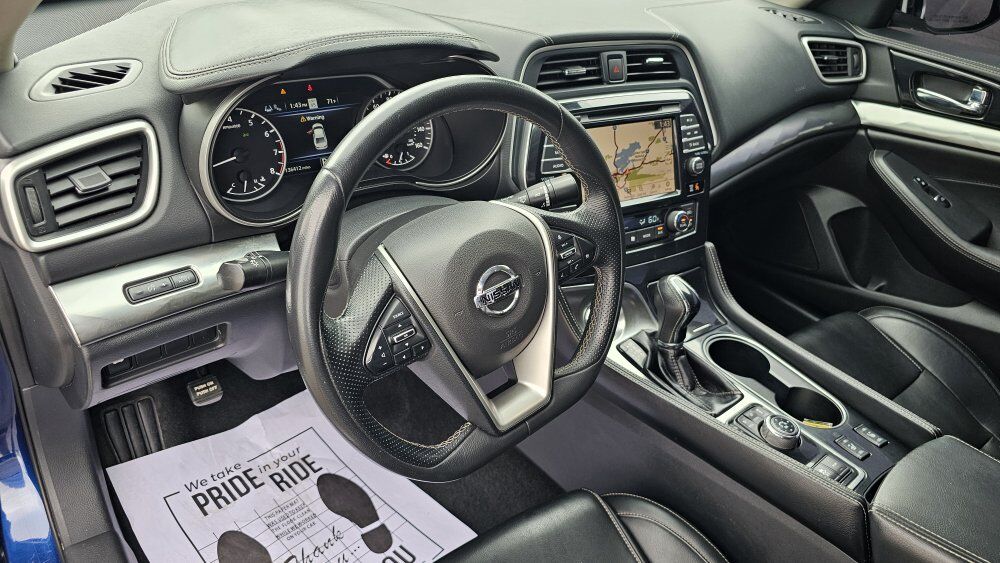 2020 MAXIMA SV. Clean CARFAX with No Accidents or Damages Reported. Royal Metallic Blue, Black Leather Interior. 3.5L DOHC V6 Engine (300HP), Xtronic Transmission with Manual Shift Mode. Keyless Entry, Push Button Start, Remote EngineStart with Intelligent Climate Control, Heated Front Seats, Intelligent Cruise Control with Traffic Sign Recognition, 8'' Color Display, Apple Carply/Android Auto, Streaming Audio, Hand Free Text Messaging Assist, Nissan Door to Door Navigation, SiriusXM, Dual Zone Automatic Climate Control, Blind Spot Monitor, Lane Departure Warning, Intelligent Forward Collision & Rear Cross Warning, LED Auto Headlights, Vehicle Dynamic Control, Nissan Immobilizer System, Rear Parking Sensors, Rear Camera, 18'' Aluminum Wheels. Serviced & Ready to Serve. Stop by or apply online. You will not be disappointed.