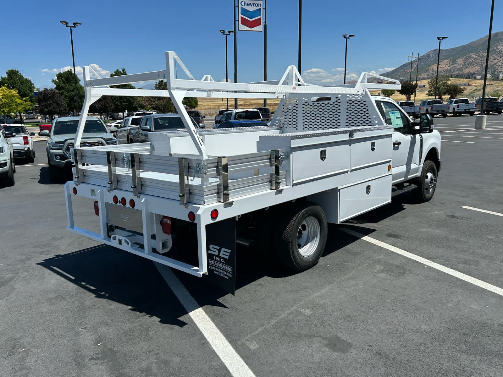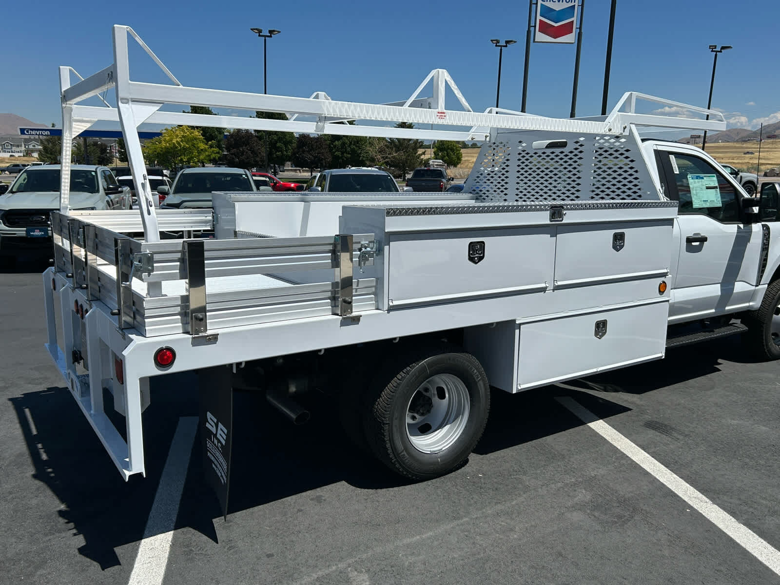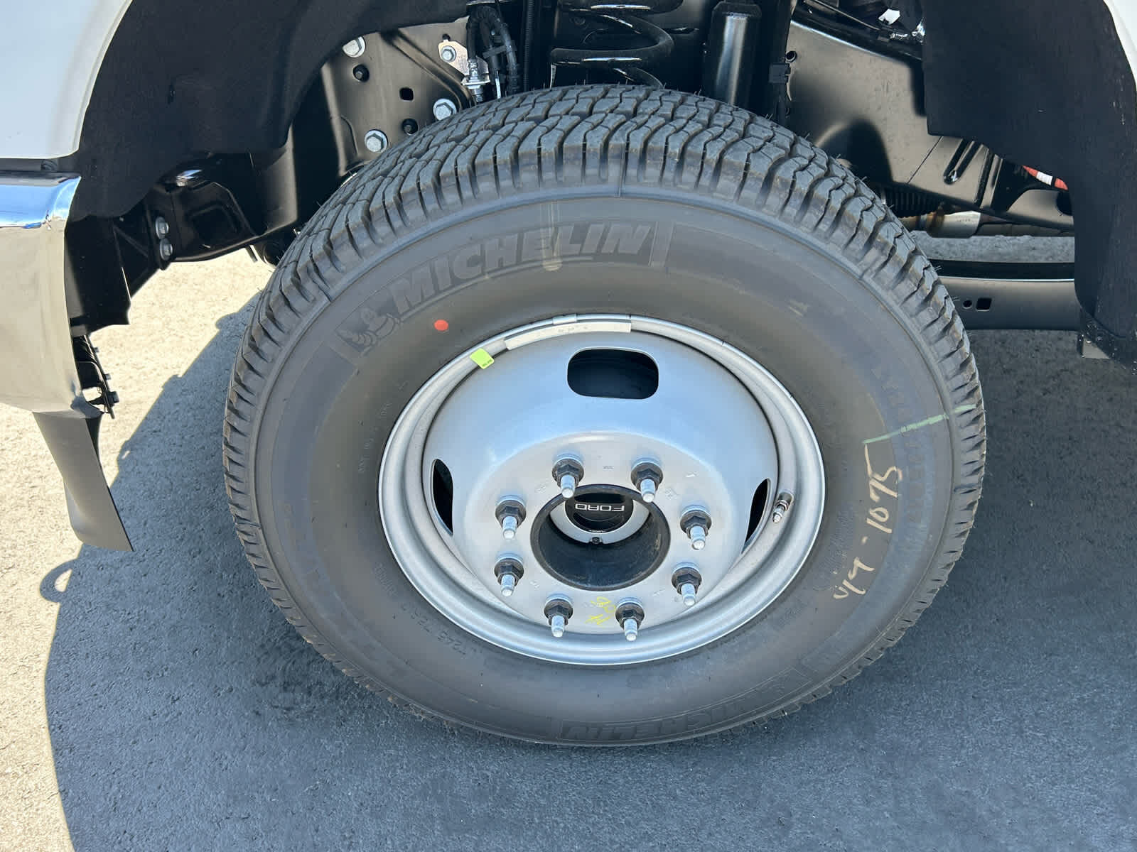 4-Wheel Disc Brakes,8 Cylinder Engine,A/C,ABS,Adjustable Steering Wheel,AM/FM Stereo,Automatic Headlights,Auxiliary Audio Input,Bluetooth,Brake Assist,Cloth Seats,Cruise Control,Daytime Running Lights,Driver Adjustable Lumbar,Driver Air Bag,Driver Vanity Mirror,Dual Rear Wheels,Engine Immobilizer,Floor Mats,Fog Lamps,Four Wheel Drive,Front Head Air Bag,Front Side Air Bag,Gasoline Fuel,Heated Mirrors,Integrated Turn Signal Mirrors,Intermittent Wipers,Keyless Entry,MP3 Player,Passenger Air Bag,Passenger Air Bag On/Off Switch,Passenger Vanity Mirror,Power Door Locks,Power Mirror(s),Power Steering,Power Windows,Privacy Glass,Security System,Smart Device Integration,Split Bench Seat,Steel Wheels,Steering Wheel Audio Controls,Telematics,Tire Pressure Monitor,Tires - Front All-Season,Tires - Rear All-Season,Tow Hooks,Traction Control,Transmission w/Dual Shift Mode,Trip Computer,Variable Speed Intermittent Wipers,WiFi Hotspot