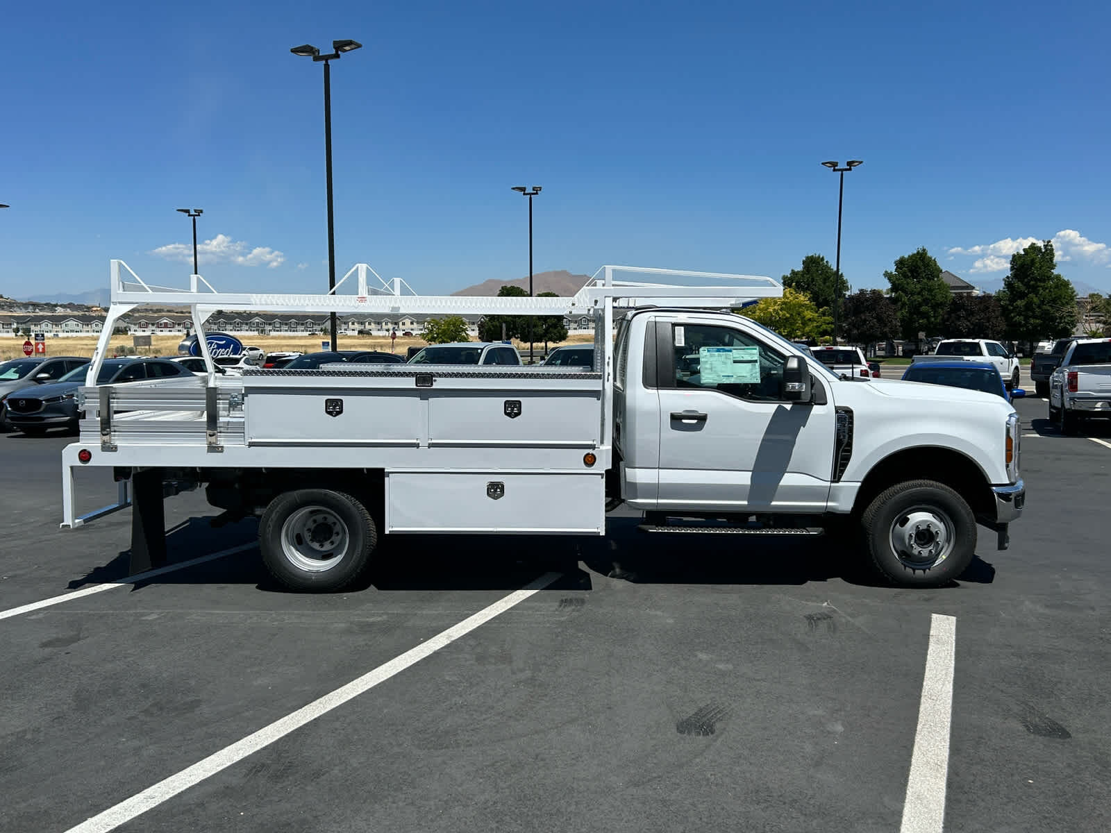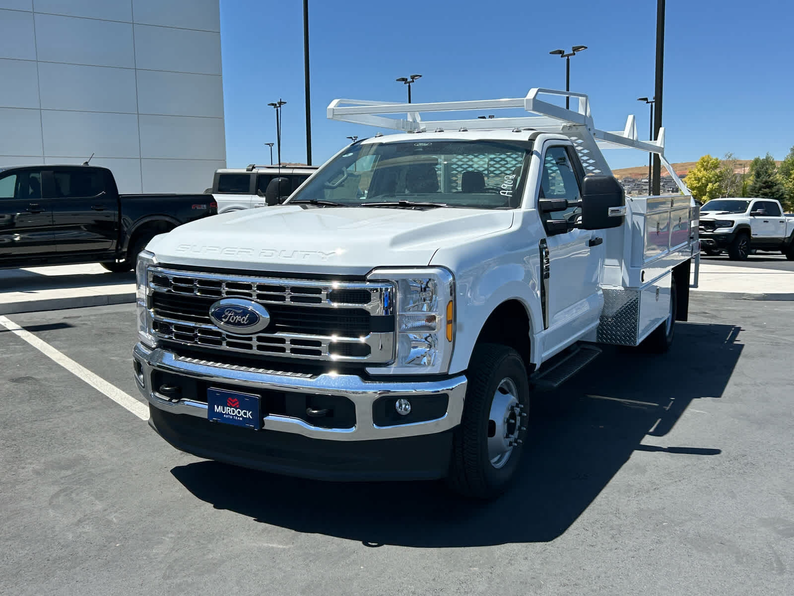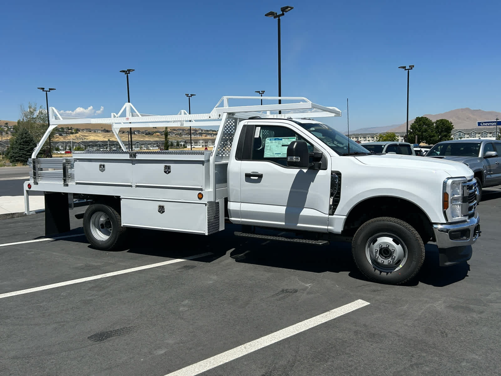 4-Wheel Disc Brakes,8 Cylinder Engine,A/C,ABS,Adjustable Steering Wheel,AM/FM Stereo,Automatic Headlights,Auxiliary Audio Input,Bluetooth,Brake Assist,Cloth Seats,Cruise Control,Daytime Running Lights,Driver Adjustable Lumbar,Driver Air Bag,Driver Vanity Mirror,Dual Rear Wheels,Engine Immobilizer,Floor Mats,Fog Lamps,Four Wheel Drive,Front Head Air Bag,Front Side Air Bag,Gasoline Fuel,Heated Mirrors,Integrated Turn Signal Mirrors,Intermittent Wipers,Keyless Entry,MP3 Player,Passenger Air Bag,Passenger Air Bag On/Off Switch,Passenger Vanity Mirror,Power Door Locks,Power Mirror(s),Power Steering,Power Windows,Privacy Glass,Security System,Smart Device Integration,Split Bench Seat,Steel Wheels,Steering Wheel Audio Controls,Telematics,Tire Pressure Monitor,Tires - Front All-Season,Tires - Rear All-Season,Tow Hooks,Traction Control,Transmission w/Dual Shift Mode,Trip Computer,Variable Speed Intermittent Wipers,WiFi Hotspot