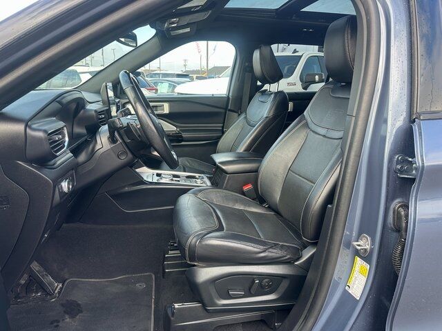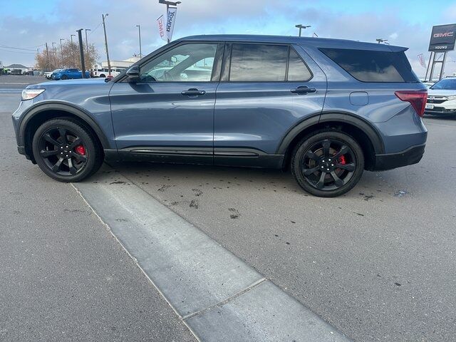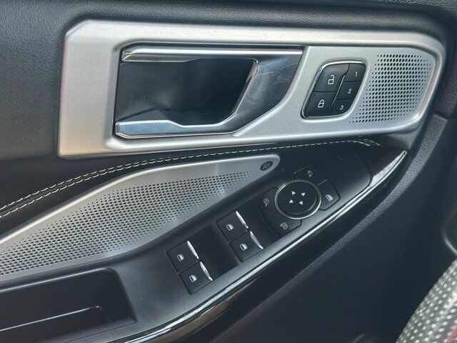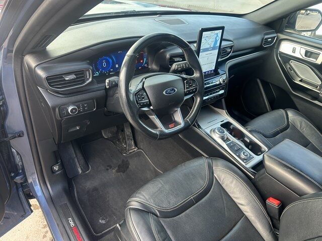 BLUETOOTH, BACK UP CAMERA, APPLE CARPLAY/ANDROID AUTO, NAVIGATION, MOONROOF/SUNROOF, 4WD, 10.1'' LCD Capacitive Portrait Touchscreen, 110V/150W AC Power Outlet, 2 Additional Speakers, 20'' Machined Aluminum w/Painted Pockets Wheels, 3.58 Non-Limited-Slip Rear Axle Ratio, 360-Degree Camera w/Split View, 3rd row seats: bench, 4-Wheel Disc Brakes, 6 Speakers, ABS brakes, Active Park Assist 2.0, Air Conditioning, Alloy wheels, AM/FM radio: SiriusXM, AM/FM Stereo, Auto High-beam Headlights, Auto-Dimming Rearview Mirror (Interior), Automatic temperature control, Brake assist, Bumpers: body-color, Compass, Delay-off headlights, Driver door bin, Driver vanity mirror, Dual front impact airbags, Dual front side impact airbags, Electronic Stability Control, Emergency communication system: SYNC 3 911 Assist, Equipment Group 401A, Evasive Steering Assist, Exterior Parking Camera Rear, Ford Co-Pilot360 Assist , FordPass Connect, Forward Sensing System, Four wheel independent suspension, Front anti-roll bar, Front Bucket Seats, Front Center Armrest, Front dual zone A/C, Front fog lights, Front Rain-Sensing Wipers, Front reading lights, Fully automatic headlights, Hands-Free Foot-Activated Liftgate, Heated door mirrors, Heated front seats, Heated steering wheel, Illuminated entry, Intelligent Adaptive Cruise Control, Knee airbag, Leather Htd/Ventilated Sport Captain's Chairs, Leather steering wheel, Low tire pressure warning, Memory Driver's Seat, Occupant sensing airbag, Outside temperature display, Overhead airbag, Overhead console, Panic alarm, Passenger door bin, Passenger vanity mirror, Performance Front & Rear Brakes, Power door mirrors, Power driver seat, Power Liftgate, Power passenger seat, Power steering, Power Tilt/Telescoping Steering Column, Power windows, Premium Technology Package, Radio: B&O Sound System by Bang & Olufsen, Rear air conditioning, Rear anti-roll bar, Rear reading lights, Rear window defroster, Rear window wiper, Remote keyless entry, Reverse Brake Assist, Second Row Heated Seats, Security system, SelectShift Capability w/Paddle Shifters, Sideview Mirrors w/Gloss Black Caps, Speed control, Speed Sign Recognition, Speed-sensing steering, Speed-Sensitive Wipers, Split folding rear seat, Spoiler, Sport steering wheel, ST High Package, ST Street Pack, Steering wheel mounted audio controls, SYNC 3 Communications & Entertainment System, SYNC 3/Apple CarPlay/Android Auto, Tachometer, Telescoping steering wheel, Third Row PowerFold (Folds Flat), Tilt steering wheel, Traction control, Trip computer, Twin Panel Moonroof, Universal Garage Door Opener (UGDO), Variably intermittent wipers, Voice-Activated Touchscreen Navigation System, Wheels: 21'' Aluminum, Wireless Charging Pad. Blue 3.0L EcoBoost V6 10-Speed Automatic 4WD