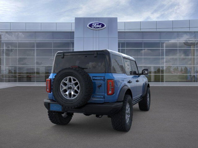 153 334A 43J 44T 51E 8 8V 99P E7 TTP,TRANSMISSION: 10-SPEED AUTOMATIC -inc: remote start system trail control trail turn assist and trail one-pedal driving 4.46 Axle Ratio Rear HVAC,SHADOW BLACK PAINTED HARD TOP -inc: Hard Top Sound Deadening Headliner Rear-Window Defroster & Washer,ENGINE: 2.7L ECOBOOST V6 -inc: GVWR: 6 180 lbs,FRONT LICENSE PLATE BRACKET -inc: Standard in states requiring 2 license plates and optional to all others,EQUIPMENT GROUP 334A LUX PACKAGE -inc: Heated Steering Wheel Rear Parking Sensors Power Outlet - Back Side of Center Floor Console Dr & Pass Illuminated Sliding Visor Vanity Mirrors Evasive Steering Assist Information on Demand Panel Dual-Zone Electronic Automatic Temperature Control air conditioning Ford Co-Pilot360 Enables compatibility w/FordPass performance app w/off-road navigation Auto High-Beam Headlamps Pre-Collision Assist w/Automatic Emergency Braking pedestrian detection forward collision warning and dynamic brake support Blind Spot Information System (BLIS) Cross-Traffic Alert Rear View Camera backup assist grid lines Lane-Keeping System Lane-Keeping Alert Lane-Keeping Aid and Driver Alert Ambient Footwell Lighting 2-Door Intelligent Access w/Lock/Unlock Intelligent Access will also lock/unlock the swing gate Dual Smart Charging USB Ports Front Row Heated Seats Adaptive Cruise Control Radio: B&O Sound System by Bang & Olufsen 12 speakers includi,BLACK ONYX LEATHER-TRIMMED/VINYL BUCKET SEATS -inc: 10-way power driver seat 8-way front passenger seat second row armrest w/2 beverage holders and front driver/passenger seat back MOLLE strap system Carpet flooring replaces the standard rubberized flooring,VELOCITY BLUE METALLIC,BLACK APPEARANCE PACKAGE -inc: black appearance graphics package Black-Painted Molded-In-Color Grille white BRONCO lettering Black Molded-In-Color Door Handles Black Molded-In-Color Fender Flares Black Molded-In-Color Sideview Mirror Caps,Turbocharged,Four Wheel Drive,Locking/Limited Slip Differential,Locking/Limited Slip Differential,Power Steering,ABS,4-Wheel Disc Brakes,Brake Assist,Aluminum Wheels,Tires - Front All-Terrain,Tires - Rear All-Terrain,Conventional Spare Tire,Tire Pressure Monitor,Conventional Spare Tire,Tow Hooks,Tow Hooks,Heated Mirrors,Power Mirror(s),Intermittent Wipers,Variable Speed Intermittent Wipers,Privacy Glass,Rollover Protection Bars,Convertible Soft Top,Power Door Locks,Daytime Running Lights,Automatic Headlights,LED Headlights,Automatic Highbeams,Fog Lamps,AM/FM Stereo,MP3 Capability,Steering Wheel Audio Controls,Satellite Radio,Requires Subscription,MP3 Capability,Bluetooth Connection,Telematics,Auxiliary Audio Input,WiFi Hotspot,Smart Device Integration,Requires Subscription,Bluetooth Connection,Pass-Through Rear Seat,Rear Bench Seat,Adjustable Steering Wheel,Trip Computer,Power Windows,WiFi Hotspot,Leather Steering Wheel,Keyless Entry,Power Door Locks,Keyless Entry,Power Door Locks,Keyless Start,Cruise Control,A/C,Bucket Seats,Heated Front Seat(s),Driver Vanity Mirror,Passenger Vanity Mirror,Auto-Dimming Rearview Mirror,Floor Mats,Smart Device Integration,Requires Subscription,Smart Device Integration,Power Windows,Power Door Locks,Trip Computer,Security System,Immobilizer,Traction Control,Stability Control,Traction Control,Front Side Air Bag,Telematics,Requires Subscription,Front Collision Mitigation,Tire Pressure Monitor,Driver Air Bag,Passenger Air Bag,Front Head Air Bag,Rear Head Air Bag,Passenger Air Bag Sensor,Driver Restriction Features,Child Safety Locks,Back-Up Camera