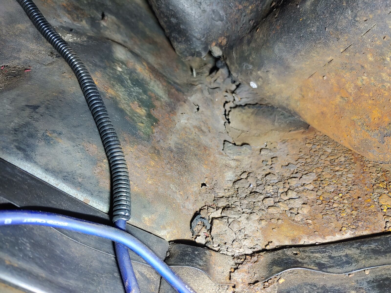 Both floorboards up front have rust holes
