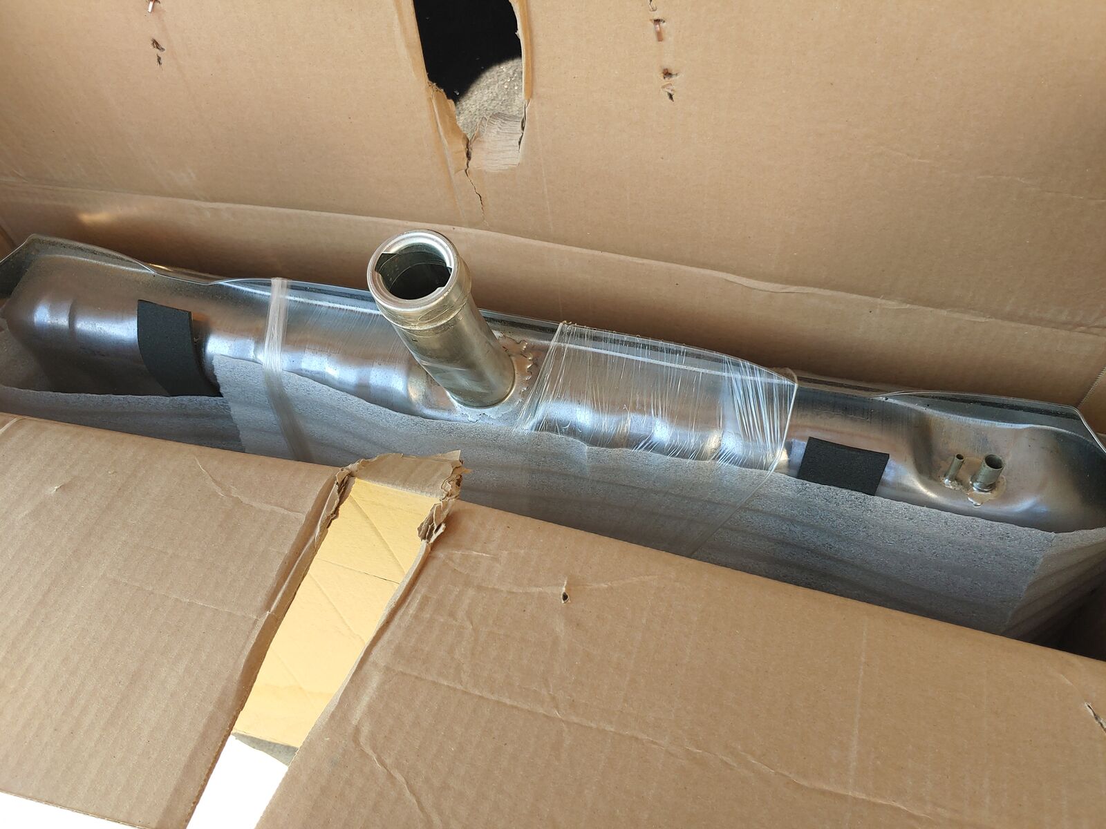 Two gas tanks- one for carbureted engines, one for fuel injection engines. Both are new in box