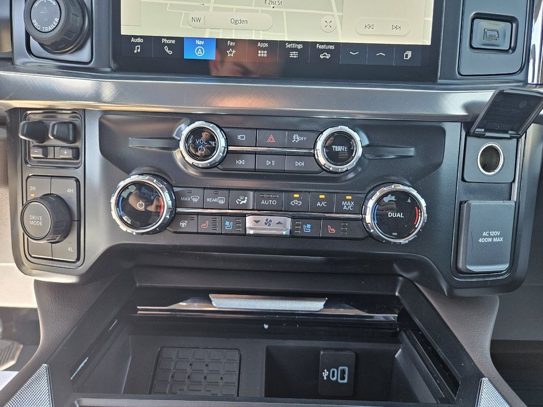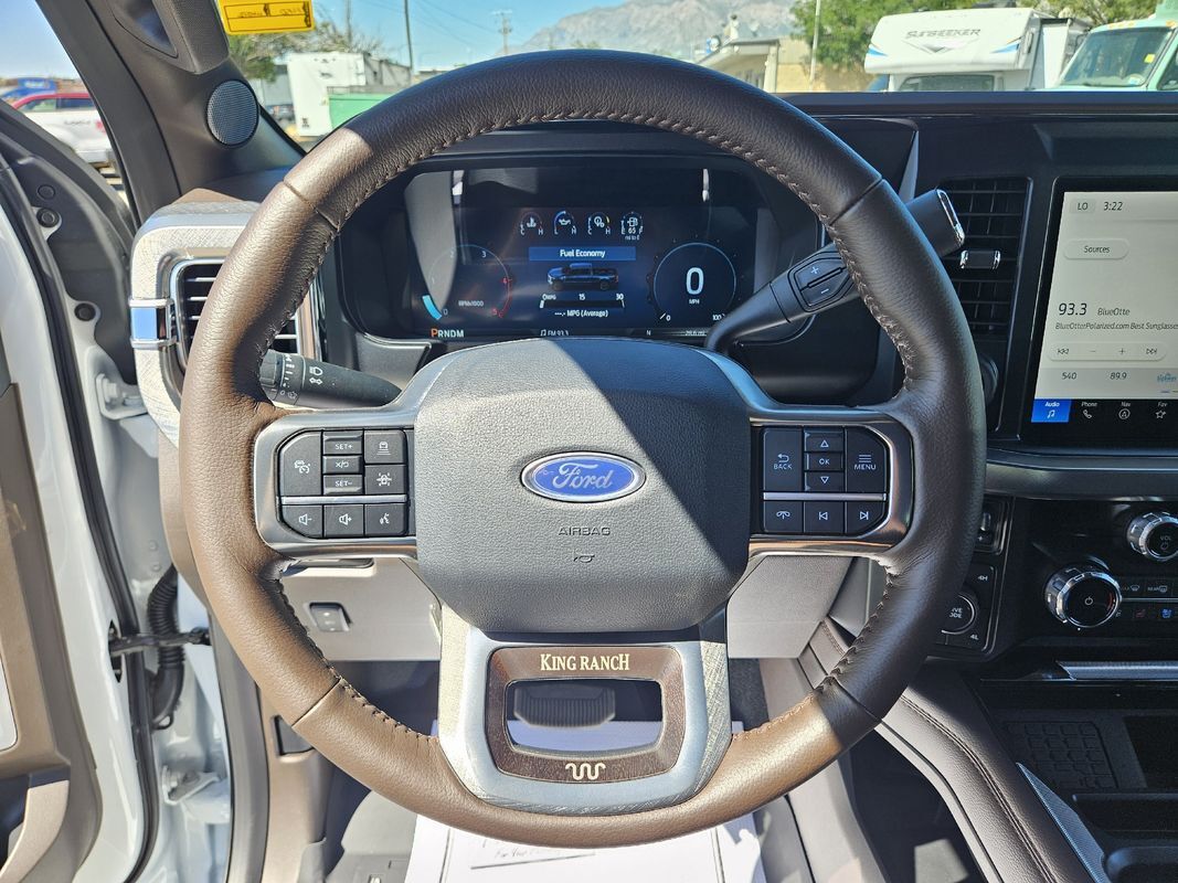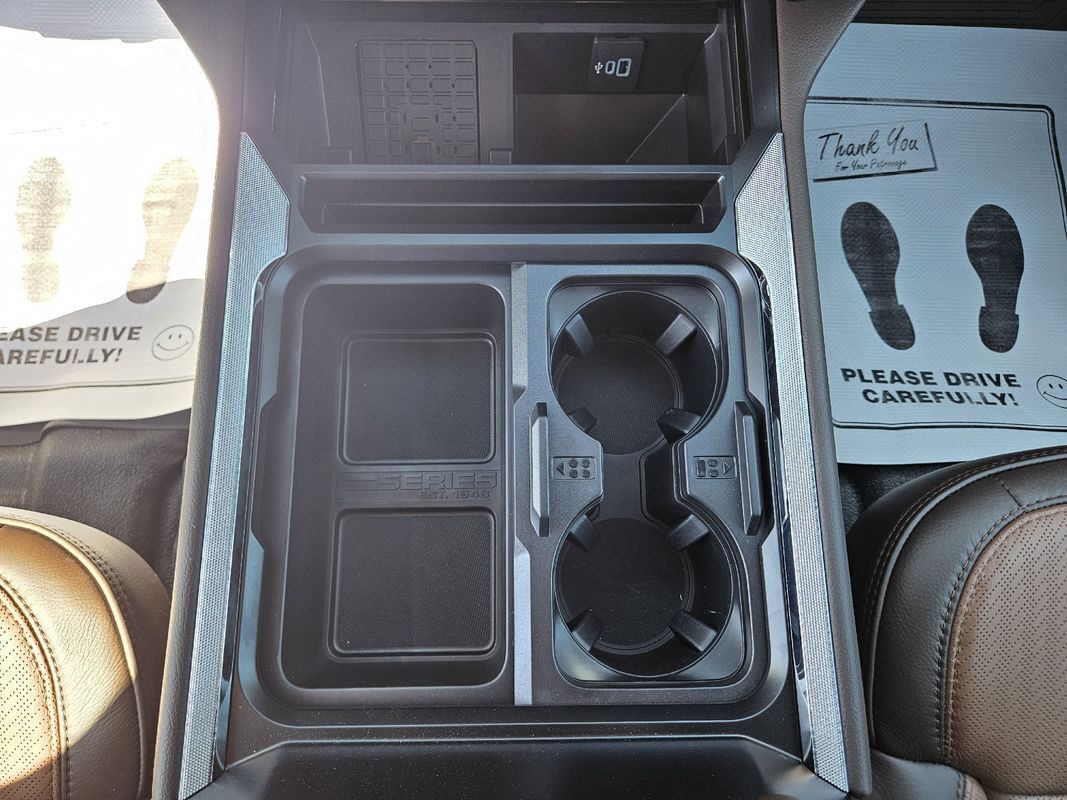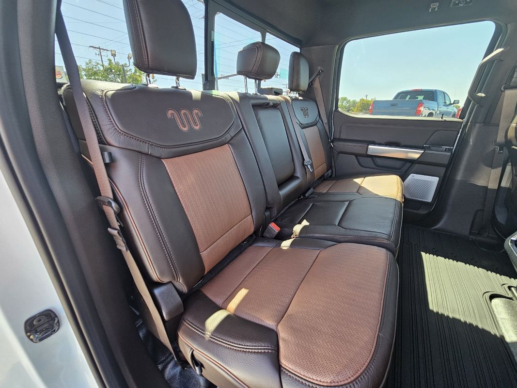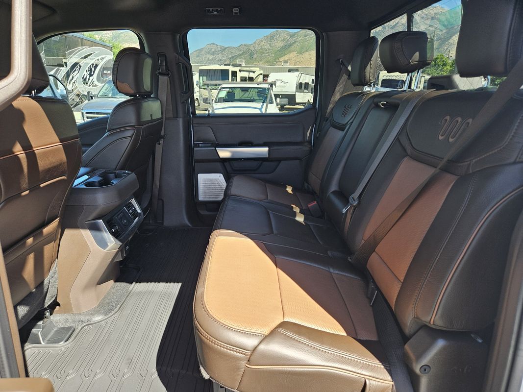 Remote Start,Navigation System,Leather Seats,Heated Seats,Bluetooth,Driver seat: heated massaging, ventilated,Driver seat power adjustments: height lumbar, reclining, 8,Front headrests: adjustable 2,Front seat type: bucket,Passenger seat: heated massaging, ventilated,Passenger seat power adjustments: height lumbar, reclining, 8,Rear headrests: adjustable 3,Rear seat: heated,Rear seat folding: folds up split,Rear seat type: 60-40 split bench,Upholstery: leather,ABS: 4-wheel,Braking assist: ,Electronic brakeforce distribution: ,Electronic parking brake: auto off,Emergency braking preparation: ,Front brake diameter: 15.4,Front brake type: ventilated disc,Front brake width: 1.53,Power brakes: ,Rear brake diameter: 15.8,Rear brake type: ventilated disc,Rear brake width: 1.53,Alternator: 160 amp and 250 amp (dual),Battery: AGM maintenance-free,Battery rating: 750 CCA,Battery saver: ,Clearance lights: ,Daytime running lights: LED,Exterior entry lights: approach lamps puddle lamps,Front fog lights: LED,Headlights: LED auto delay off, auto high beam dimmer, auto on/off, wiper activated,Roof-mounted lights: ,Automatic emergency braking: front front pedestrian, intersection/junction turn, rear,Automatic hazard warning lights: ,Blind spot safety: sensor/alert trailer coverage,Camera system: cargo area surround view, trailer rearview,Child safety door locks: ,Child seat anchors: LATCH system,Cross traffic alert: rear,Crumple zones: front,Driver attention alert system: ,Impact sensor: alert system door unlock, post-collision safety system,Lane deviation sensors: ,Lane keeping assist: ,Parking sensors: front rear,Pre-collision warning system: audible warning intersection/junction turn, pedestrian detection, visual warning,Programmable safety key: ,Rearview monitor: in dash,Traffic sign recognition: ,Airbag deactivation: passenger switch,Front airbags: dual,Side airbags: front,Side curtain airbags: front rear,Side mirror adjustments: power power folding, power telescoping,Side mirrors: heated integrated turn signals,Towing mirrors: ,Front wipers: rain sensing variable intermittent,Laminated glass: acoustic windshield,Pickup sliding rear window: power horizontal,Power windows: safety reverse,Rear privacy glass: ,Solar-tinted glass: front,Window defogger: rear,Anti-theft system: alarm vehicle immobilizer,Power door locks: anti-lockout auto-locking,Emergency locking retractors: front rear,Front seatbelts: 3-point,Rear seatbelts: 3-point,Seatbelt pretensioners: front,Seatbelt warning sensor: front,4WD selector: electronic hi-lo,4WD type: part time,Axle ratio: 4.30,Limited slip differential: rear,Front shock type: gas,Front spring type: coil,Front stabilizer bar: diameter 35 mm,Front suspension classification: solid live axle,Front suspension type: multi-link,Rear shock type: gas,Rear spring type: leaf,Rear stabilizer bar: diameter 31 mm,Rear suspension classification: solid live axle,Rear suspension type: multi-leaf,Electronic messaging assistance: voice operated with read function,Hands-free phone call integration: voice operated,Navigation data: real time traffic,Navigation system: touch screen display voice operated,Smart device app compatibility: FordPass Connect,Smart device app function: engine start horn/light operation, lock operation, maintenance status, vehicle location,Wi-Fi: hotspot,Wireless data link: Bluetooth,Antenna type: diversity mast,Auxiliary audio input: Bluetooth USB, iPod/iPhone,Digital sound processing: ,Premium brand: Bang & Olufsen,Radio: AM/FM HD radio, touch screen display, voice operated,Radio data system: ,Satellite radio: SiriusXM,Speed sensitive volume control: ,Subwoofer: 1,Total speakers: 13,Watts: 1080,Dual rear wheels: ,Spare tire mount location: underbody,Spare tire size: full-size,Spare wheel type: steel,Tire type: all season,Wheels: polished aluminum alloy,Clock: ,Compass: ,Customizable instrument cluster: ,Digital odometer: ,External temperature display: ,Fuel economy display: MPG range,Gauge: oil pressure tachometer, transmission temperature,Head-up display: ,Instrument cluster screen size: 12 in.,Multi-function display: ,Powertrain hour meter: ,Trip odometer: ,Warnings and reminders: low fuel level maintenance due,Air filtration: ,Front air conditioning: automatic climate control,Front air conditioning zones: dual,Rear vents: second row,Armrests: rear center with cupholders,Center console trim: leather,Dash trim: wood,Door sill trim: scuff plate,Door trim: leather wood,Floor mat material: rubber/vinyl,Floor material: carpet,Floor mats: front rear,Heated steering wheel: ,Interior accents: woodgrain,Steering wheel trim: leather,Door handle color: body-color,Front bumper color: accent,Grille color: chrome,Mirror color: black,Mudguards: front,Paint: two-tone,Pickup bed light: LED,Rear bumper color: accent,Running board color: black,Running boards: power retractable,Tailgate: lift assist power locking, power open, removable, step,Window trim: black,Automated trailer backup steering: straight line and turning,Pickup bed cargo management: tie-down anchors,Tow hooks: front,Trailer brake controller: ,Trailer hitch: ,Trailer hitch tongue weight monitor: ,Trailer wiring: 4-pin 7-pin,Upfitter switches: ,Adaptive cruise control: ,Adaptive stop and go cruise control: semi-automatic,Adjustable pedals: power,Ambient lighting: color,Assist handle: front rear,Autonomous lane guidance: lane centering,Center console: front console with armrest and storage,Cupholders: front rear,Easy entry: power driver seat power steering wheel,Memorized settings: 3 driver adjustable pedals, driver seat, side mirrors, steering wheel,Multi-function remote: panic alarm proximity entry system,One-touch windows: 2,Overhead console: front,Power outlet(s): 115V cargo area 115V front, 115V rear, 12V front, USB front, USB-C front,Power steering: ,Power windows: lockout button,Push-button start: ,Reading lights: front rear,Rearview mirror: auto-dimming,Remote engine start: ,Steering wheel: power tilt and telesc