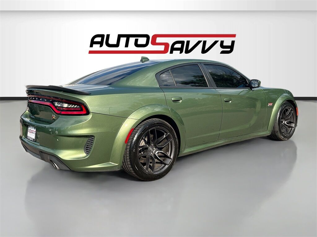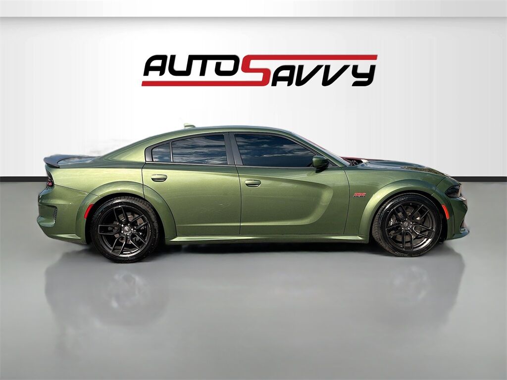 Experience the power and performance of the 2022 Dodge Charger Scat Pack Widebody, available now at AutoSavvy Colorado Springs. With only 23,357 miles, this bold F8 Green sedan is equipped with a formidable HEMI 6.4L V-8 engine, delivering an impressive 485 horsepower. This rear-wheel-drive powerhouse boasts an 8-speed automatic transmission and features a striking widebody design for enhanced handling and aggressive styling. Inside, enjoy the comfort of cloth performance seats with heating, a heated steering wheel, and dual-zone climate control. Stay connected with Apple CarPlay and Android Auto on the 8.4-inch touchscreen, while the Alpine audio system ensures a premium sound experience. The Charger also includes advanced safety features like Brembo brakes and traction control for a secure drive. The current status of the title is unknown. At AutoSavvy, we prioritize transparency and quality assurance, ensuring that each vehicle meets the highest standards. Visit AutoSavvy Colorado Springs today to explore this exceptional Dodge Charger Scat Pack Widebody and experience the perfect blend of muscle, style, and technology. Don’t miss your chance to own a vehicle that offers unparalleled performance and cutting-edge features.