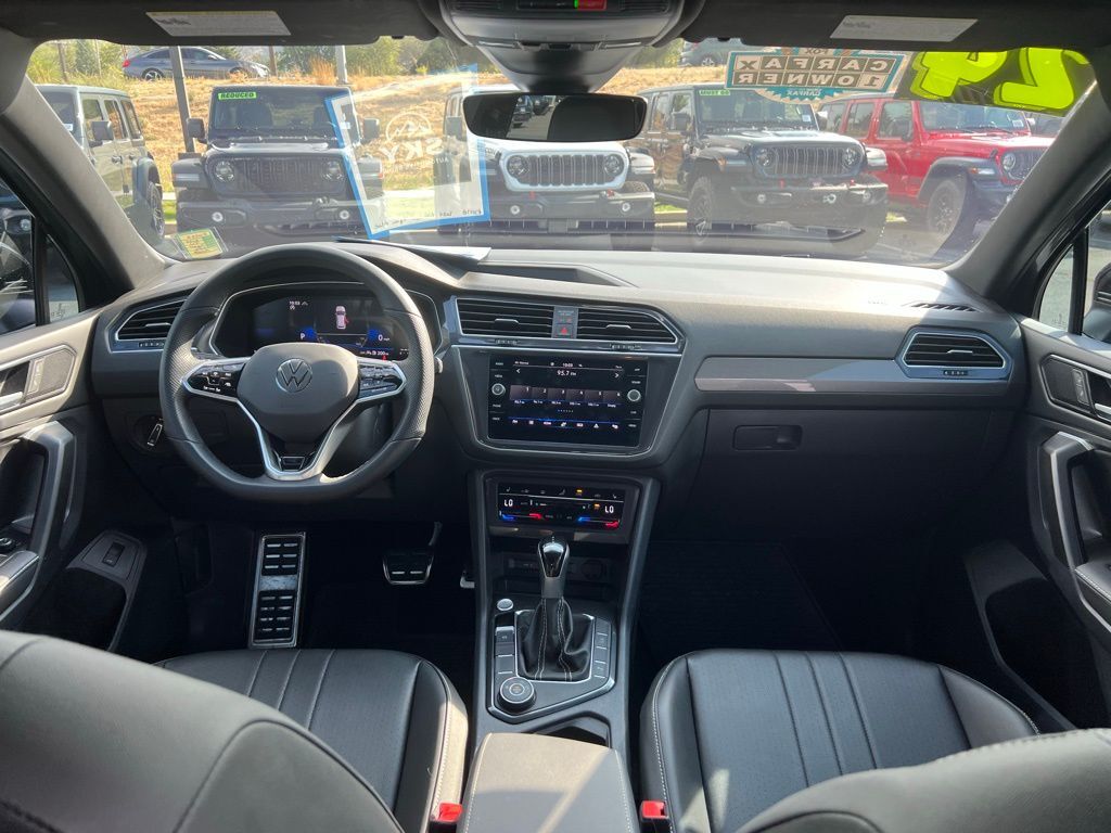 Check out our award winning dealership! 5-star google review, drive a little save a lot. Tiguan Adventure Package (TXK) (Bumperdillo Rear Bumper Protection Plate in Black, Luggage Net for Cargo Area, and Roof Rack Base Carrier Bars (Set of 2)), AWD, 3.33 Axle Ratio, 4-Wheel Disc Brakes, 4-Wheel Independent Suspension, 6 Speakers, ABS brakes, Air Conditioning, Alloy wheels, AM/FM radio: SiriusXM with 360L, Auto-dimming Rear-View mirror, Automatic temperature control, Brake assist, Bumpers: body-color, Compass, Delay-off headlights, Driver door bin, Driver vanity mirror, Dual front impact airbags, Dual front side impact airbags, Electronic Stability Control, Emergency communication system: VW Car-Net Safe & Secure 5-year, Exterior Parking Camera Rear, Four wheel independent suspension, Front anti-roll bar, Front Bucket Seats, Front Center Armrest, Front dual zone A/C, Front reading lights, Fully automatic headlights, Heated door mirrors, Heated Front Seats, Heated front seats, Illuminated entry, Leather Shift Knob, Leather steering wheel, Low tire pressure warning, Occupant sensing airbag, Outside temperature display, Overhead airbag, Overhead console, Panic alarm, Passenger door bin, Passenger vanity mirror, Perforated V-Tex Leatherette Seating Surfaces, Power door mirrors, Power driver seat, Power Liftgate, Power moonroof, Power steering, Power windows, Radio data system, Radio: MIB3 Composition Media AM/FM/HD, Rain sensing wipers, Rear anti-roll bar, Rear reading lights, Rear seat center armrest, Rear window defroster, Rear window wiper, Remote keyless entry, Security system, Speed control, Speed-sensing steering, Split folding rear seat, Spoiler, Sport steering wheel, Steering wheel mounted audio controls, Tachometer, Telescoping steering wheel, Tilt steering wheel, Traction control, Trip computer, Turn signal indicator mirrors, Variably intermittent wipers, and Wheels: 19'' Black Painted Twin 5-Spoke Alloy Sale Price Includes $1,000 Finance Savings. Contact Dealer For Details.