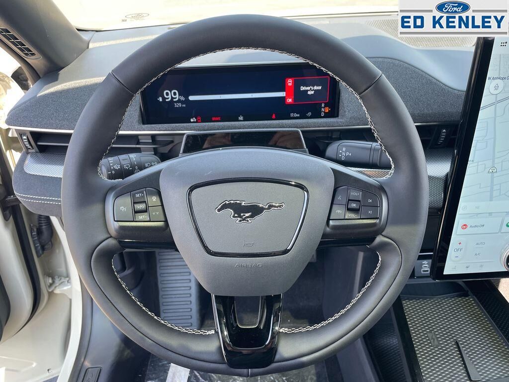The vehicle offers Android Auto for seamless smartphone integration. This unit features a hands-free Bluetooth phone system. You'll never again be lost in a crowded city or a country region with the navigation system on the vehicle. This Ford Mustang Mach-E has auto-adjust speed for safe following. The leather seats in this unit are a must for buyers looking for comfort, durability, and style. See what's behind you with the back up camera on this 2025 Ford Mustang Mach-E . Keep your hands warm all winter with a heated steering wheel in this vehicle . Apple CarPlay: Seamless smartphone integration for this unit - stay connected and entertained on the go! This 2025 Ford Mustang Mach-E has a Electric Motor high output engine. Maintaining a stable interior temperature in this Ford Mustang Mach-E is easy with the climate control system. This 2025 Ford Mustang Mach-E features elegant lines colored with a long lasting sand colored finish.