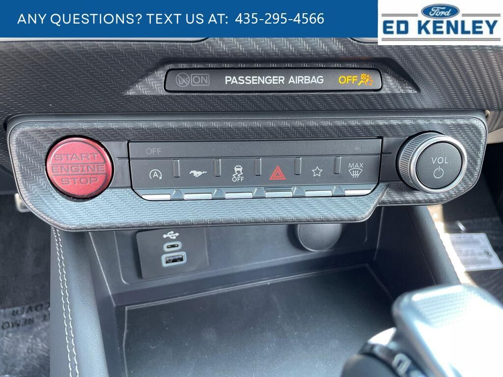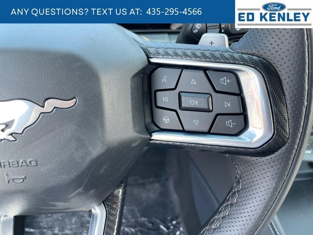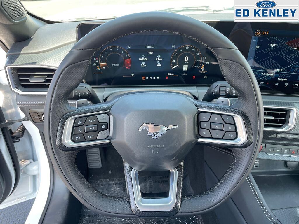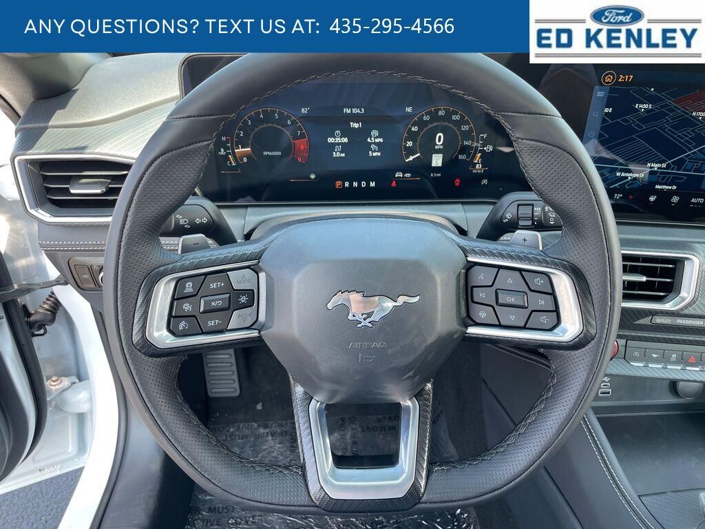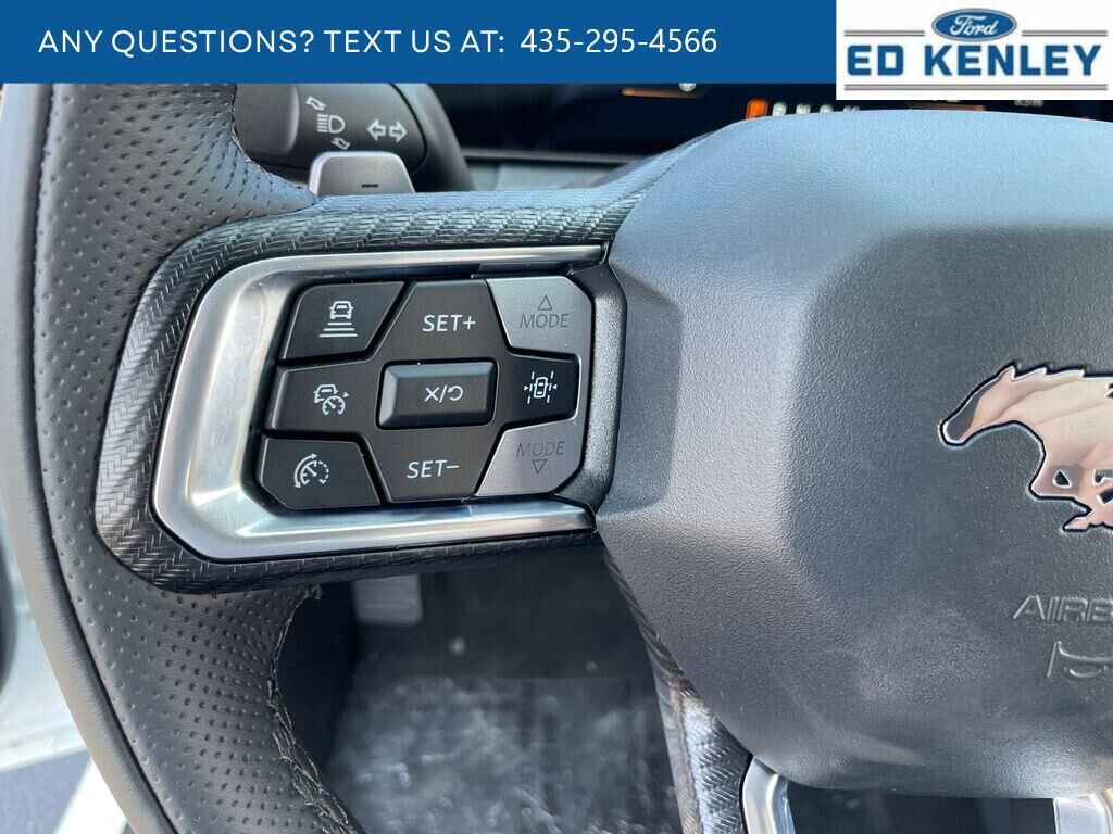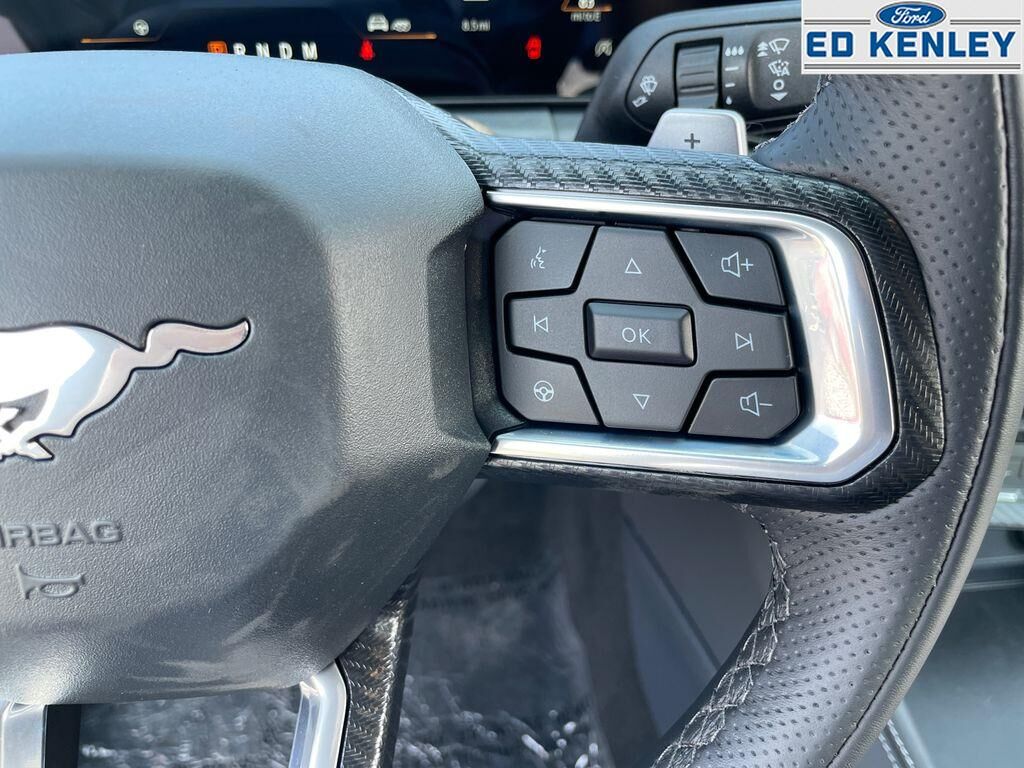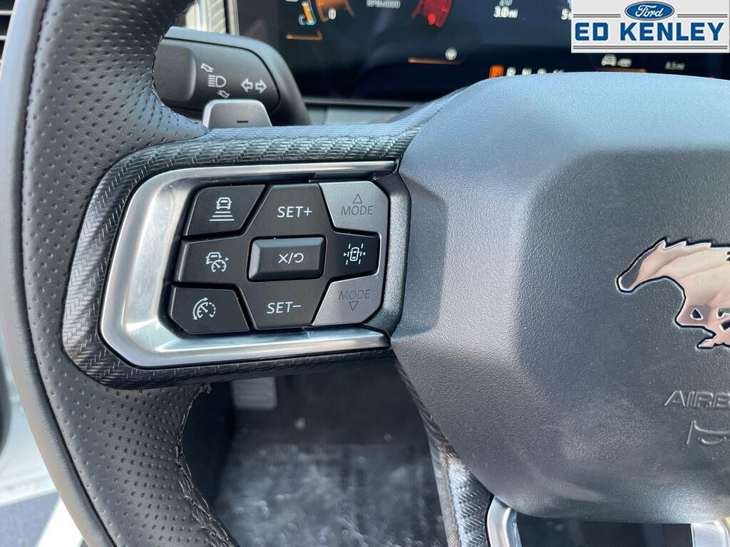 The leather seats in this vehicle are a must for buyers looking for comfort, durability, and style. It comes equipped with Android Auto for seamless smartphone integration on the road. This small car warns of approaching vehicles with Cross-Traffic Alert. The rear parking assist technology on it will put you at ease when reversing. The system alerts you as you get closer to an obstruction. Protect it from unwanted accidents with a cutting edge backup camera system. This small car features a hands-free Bluetooth phone system. Apple CarPlay: Seamless smartphone integration for this small car - stay connected and entertained on the go! Keep your hands warm all winter with a heated steering wheel in this 2025 Ford Mustang . The installed navigation system will keep you on the right path. This unit offers Automatic Climate Control for personalized comfort. This unit has automated speed control that adjusts to maintain a safe following distance, enhancing highway driving convenience.