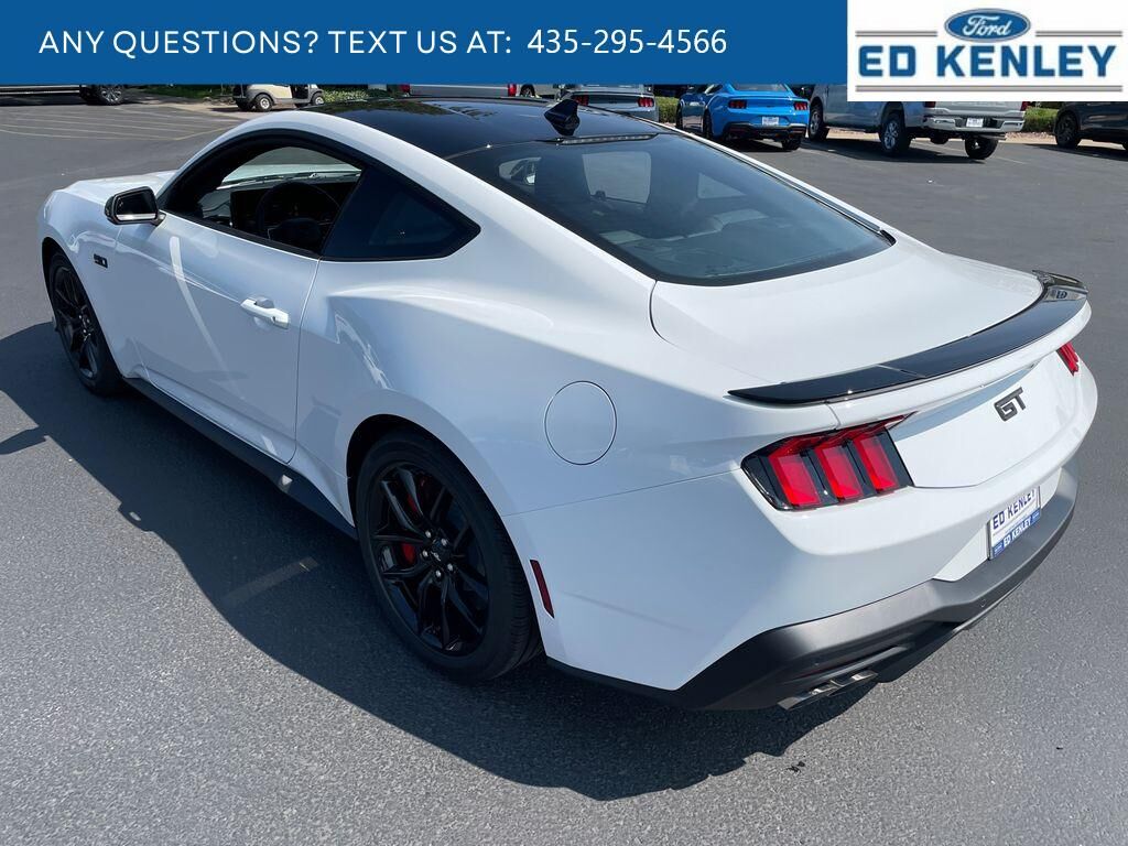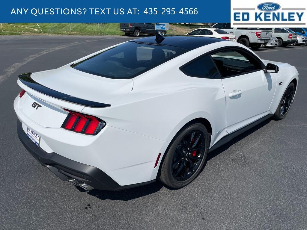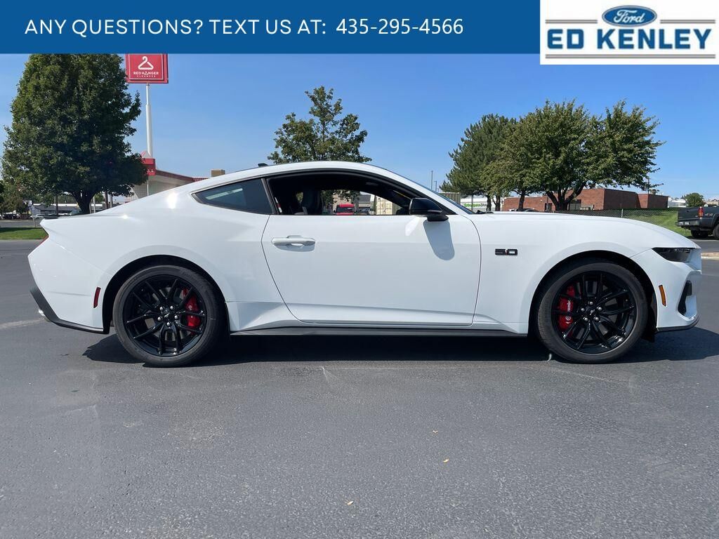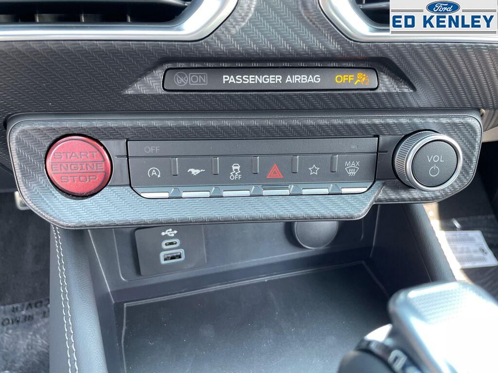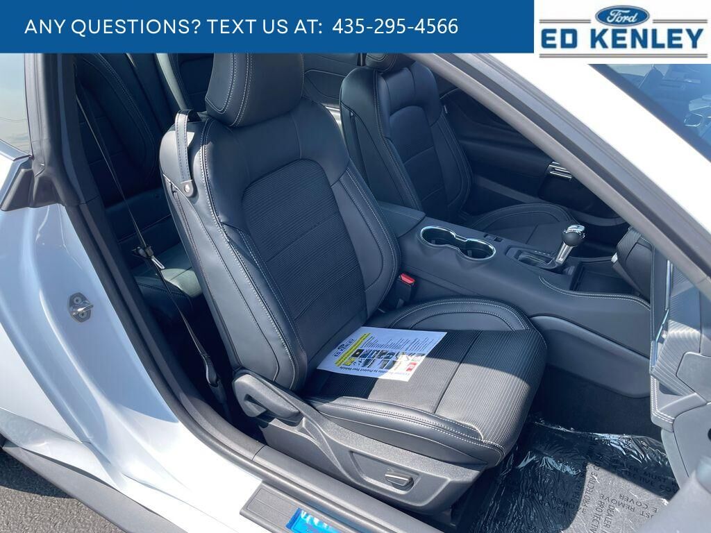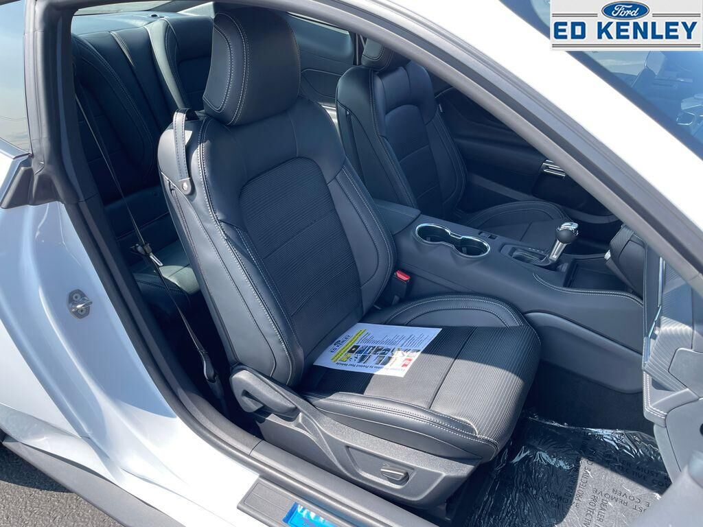Equipment Group 401A High Package: Illuminated Door-Sill Scuff Plates; Leather-Trimmed Bucket Seats with Color Accents; 5.0L Ti-VCT V8 Engine; 19" X 8.5" Shadow Silver-Painted Aluminum; 19" Tires; AM/FM Stereo; Driver Seat and Mirrors Memory,Ford Co-Pilot360 Assist : Adaptive Cruise Control with Stop and Go; Connected Navigation; Pre-Collision Assist with Automatic Emergency Braking; Lane-Keeping System with Lane Keeping Aid,Mustang Nite Pony Package: Black Painted Wedge Decklid Spoiler; Black Mirror Caps; Black GT Pony Badges; Headlamps with Black Bezels,Security Package: Active Anti-Theft System; Locking Center Console; Wheel Locking Kit,Premier Trim with Color Accent Group: Instrument Panel with Accent Stitch,Brembo Brake System with Performance Linings,Active Valve Performance Exhaust,3.55 Limited Slip Rear Axle,B&O Sound System by Bang & Olufsen with 12 Speakers,Red Painted Brake Calipers with White Logo,Premium Floor Liners Front and Rear (with Carpet Mats),Floor Mats, 1st Row, Black with City Silver GT Logo,SYNC 4 AppLink/Apple CarPlay/Android Auto smart device wireless mirroring,Lane Centering hands-on cruise control,Automatic Emergency Braking (AEB) forward collision mitigation,Pre-Collision Assist with Pedestrian Detection,Intelligent Adaptive Cruise Control Automatic curve slowdown cruise control,FordPass Connect mobile hotspot internet access,Rear mounted camera,Lane-Keeping System,Cross-Traffic Alert collision mitigation,Adaptive Cruise Control with Stop-and-Go,Predictive brake assist system,Cruise control with steering wheel mounted controls,Ventilated driver and front passenger seats,Connected Navigation integrated navigation system with voice activation,Keyfob remote start,Heated steering wheel,Heated driver and front passenger seats,Leather front seat upholstery,Primary monitor touchscreen,Driver seat power lumbar support, cushion tilt, fore/aft control and height adjustable control,5L V-8 port/direct injection, DOHC, Ti-VCT variable valve control, premium unleaded, engine with cylinder deactivation and 480HP,SYNC 4 with Enhanced Voice Recognition (Alexa-Built-In) built-in virtual assistant,Driver Alert,Intelligent Speed Assist traffic sign recognition with automatic speed limit assist,Evasive Steering Assist evasion assist system,Smart key with hands-free access and push button start,Keyfob window control,Smart device remote start,Bluetooth wireless audio streaming,Gauge cluster display size: 12.40,BLIS (Blind Spot Information System),External exit warning system,Dual-zone front climate control,SYNC 4 with Enhanced Voice Recognition (Alexa-Built-In) voice-activated climate control,Full gauge cluster screen,Auto High Beam auto high-beam headlights,SecuriLock immobilizer,FordPass Connect vehicle tracker,Bang & Olufsen speakers,Real-time traffic,Bluetooth handsfree wireless device connectivity,SYNC 4 external memory control,Digital/analog instrumentation display,Configurable instrumentation gauges,AdvanceTrac electronic stability control system,Hill Start Assist,Automatic climate control,Rear parking sensors,LED daytime running lights,LED brake lights