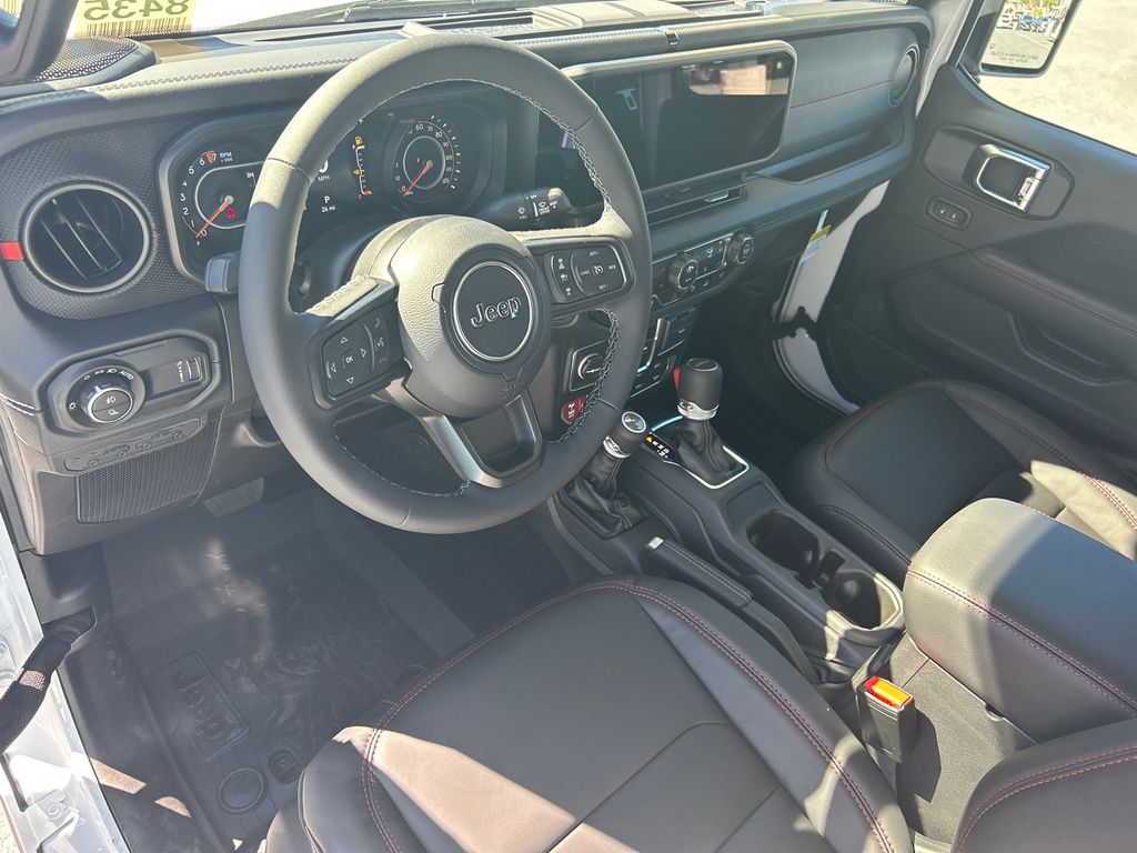 12.3'' Touchscreen Display, 4-Wheel Disc Brakes, 4.10 Rear Axle Ratio, 4G LTE Wi-Fi Hot Spot, 8 Speakers, 97 MPH Vehicle Max Speed Calibration, ABS brakes, Air Conditioning, Alexa Built-In, Alloy wheels, Alpine Premium Audio System, AM/FM radio: SiriusXM, Apple CarPlay, Apple CarPlay/Android Auto, Auto High Beam Headlamp Control, Auto-Dimming Rear-View Mirror, Automatic temperature control, Blind Spot & Cross Path Detection, Bluetooth Wireless Speaker, Body Color 3-Piece Hard Top, Body Color Rubicon Highline Flare, Brake assist, Cloth Low-Back Bucket Seats, Compass, Connected Travel & Traffic Services, Connectivity - US/Canada, Convenience Group, Delay-off headlights, Driver door bin, Driver vanity mirror, Dual front impact airbags, Dual front side impact airbags, Electronic Stability Control, Emergency communication system: Jeep Connect, Freedom Panel Storage Bag, Front anti-roll bar, Front Bucket Seats, Front Center Armrest w/Storage, Front dual zone A/C, Front fog lights, Front License Plate Bracket, Front reading lights, Fully automatic headlights, Google Android Auto, GPS Antenna Input, GPS Navigation, HD Radio, Heated door mirrors, Heated Front Seats, Heated Steering Wheel, Illuminated entry, Integrated Off-Road Camera, Integrated roll-over protection, Integrated Voice Command w/Bluetooth, Low tire pressure warning, MOPAR All-Weather Slush Mats, MOPAR Performance Satin Black Grille, MOPAR Spray In Bedliner, Occupant sensing airbag, Outside temperature display, Overhead airbag, Panic alarm, ParkSense Rear Park Assist System, Passenger door bin, Passenger vanity mirror, Performance Suspension, Power door mirrors, Power steering, Power windows, Quick Order Package 24R Rubicon, Radio data system, Radio: Uconnect 5 Nav w/12.3'' Display, Radio: Uconnect 5 w/12.3'' Display, Rear anti-roll bar, Rear reading lights, Rear Sliding Window, Rear Window Defroster, Remote keyless entry, Remote Start System, Safety Group, Security system, SiriusXM Radio Service, SiriusXM w/360L, Speed control, Split folding rear seat, Steel Bumper Group, Steel Front Bumper, Steering wheel mounted audio controls, Tachometer, Technology Group, Telescoping steering wheel, Tilt steering wheel, Traction control, Trip computer, Universal Garage Door Opener, USB Host Flip, Variably intermittent wipers, Voltmeter, Wheels: 17'' x 7.5'' Machined/Painted Black. Price includes: $5500 - 2025 National Retail Bonus Cash . Exp. 04/30/2026