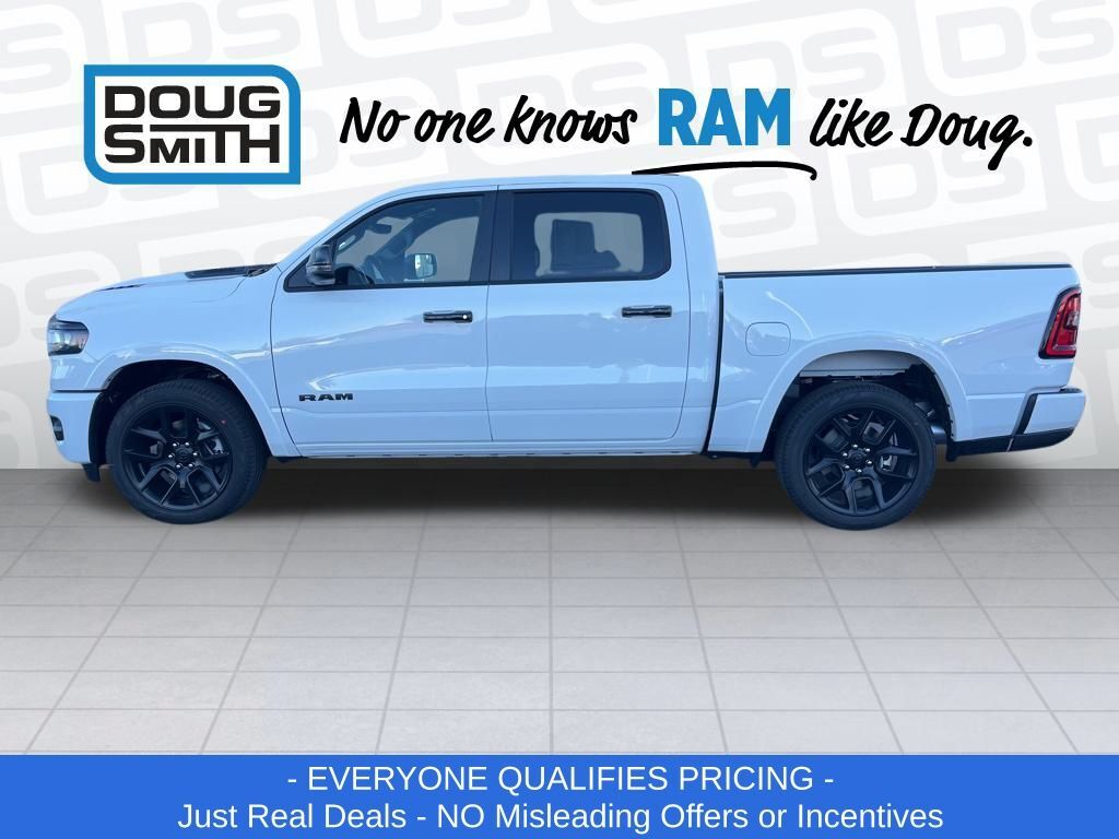 Bright White Clearcoat 2026 Ram 1500 Laramie 4WD 8-Speed Automatic 3.0L I6 Price includes: $1000 - 2026 National Bonus Cash . Exp. 03/02/2026 $1000 - 2026 West BC SFS Bonus Cash . Exp. 03/02/2026 $3500 - 2026 National Retail Consumer Cash . Exp. 03/02/2026 - Advertised Price reflects a $1,500 Financing Discount. To qualify for this discount, customer must secure credit approval and finance with a dealership lender. Cash purchases or outside financing will void the discount, increasing the final price by $1,500. Exp. 02/28/2026 - See Doug Smith CDJR for full details. - Sale Price Includes: $1,500 Trade-In Allowance Incentive Program for customers that trade in a 2015 or newer passenger vehicle with 100,000 miles or less. - Offer Exp. 02/28/2026 - See Doug Smith CDJR for full details.